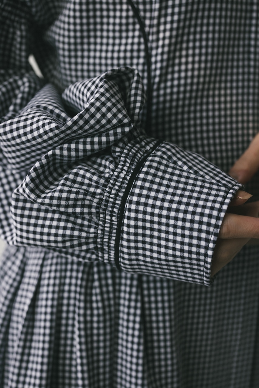 凹凸感のあるギンガムチャック生地を使用したワンピース。