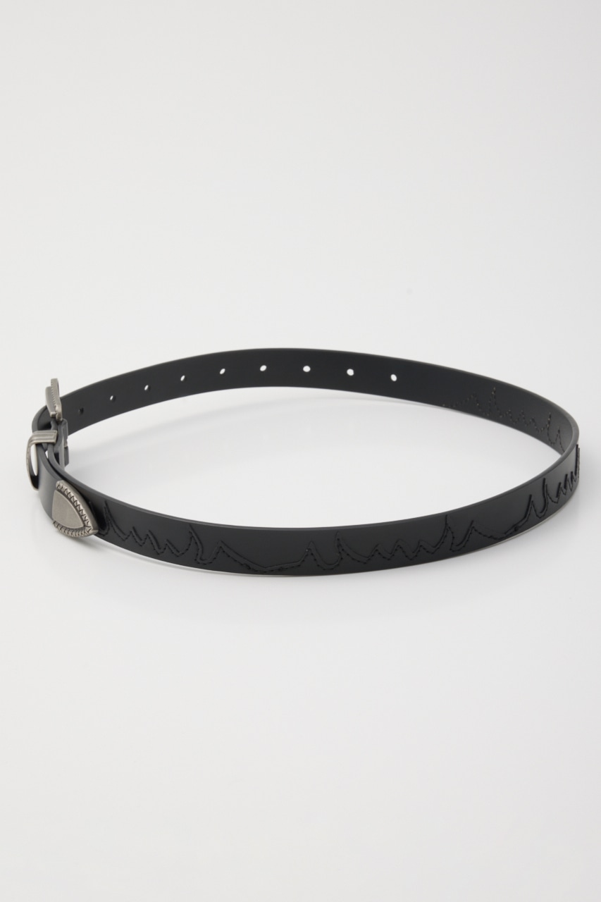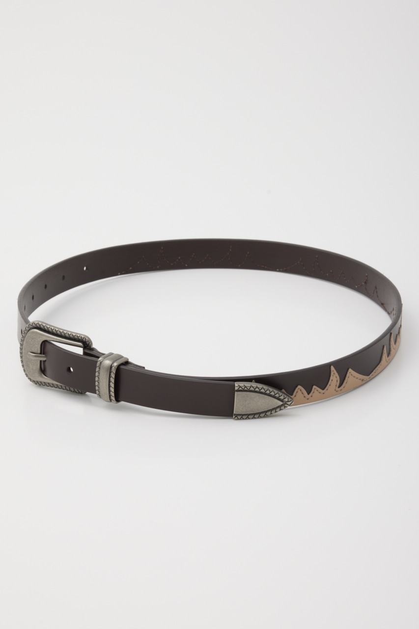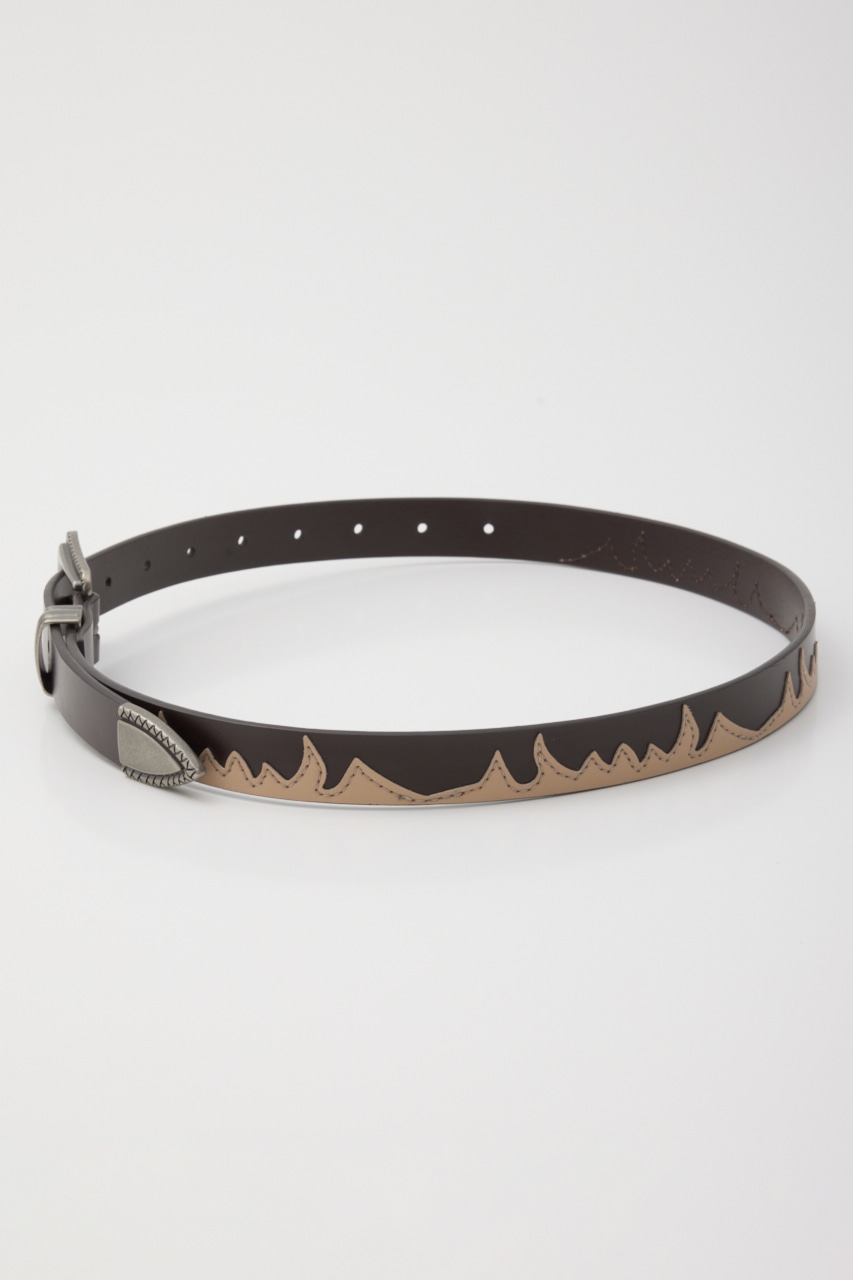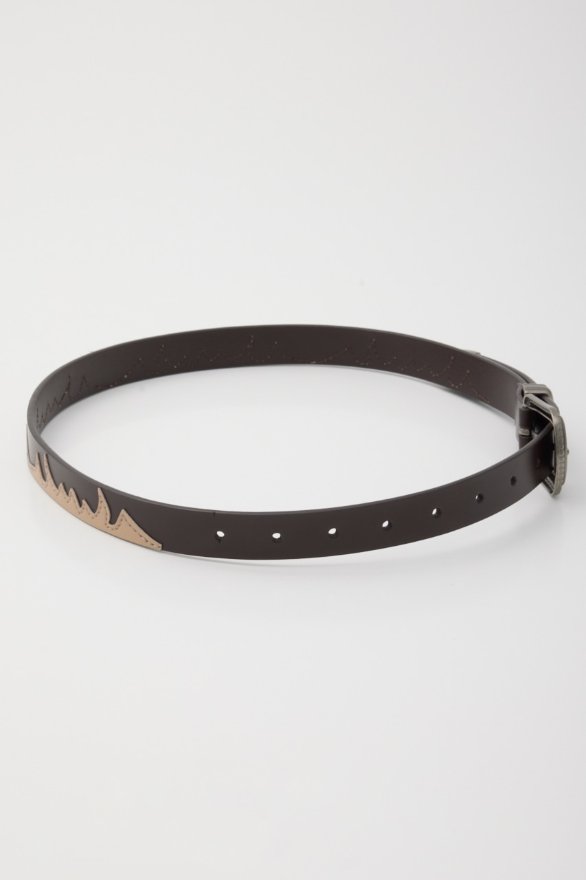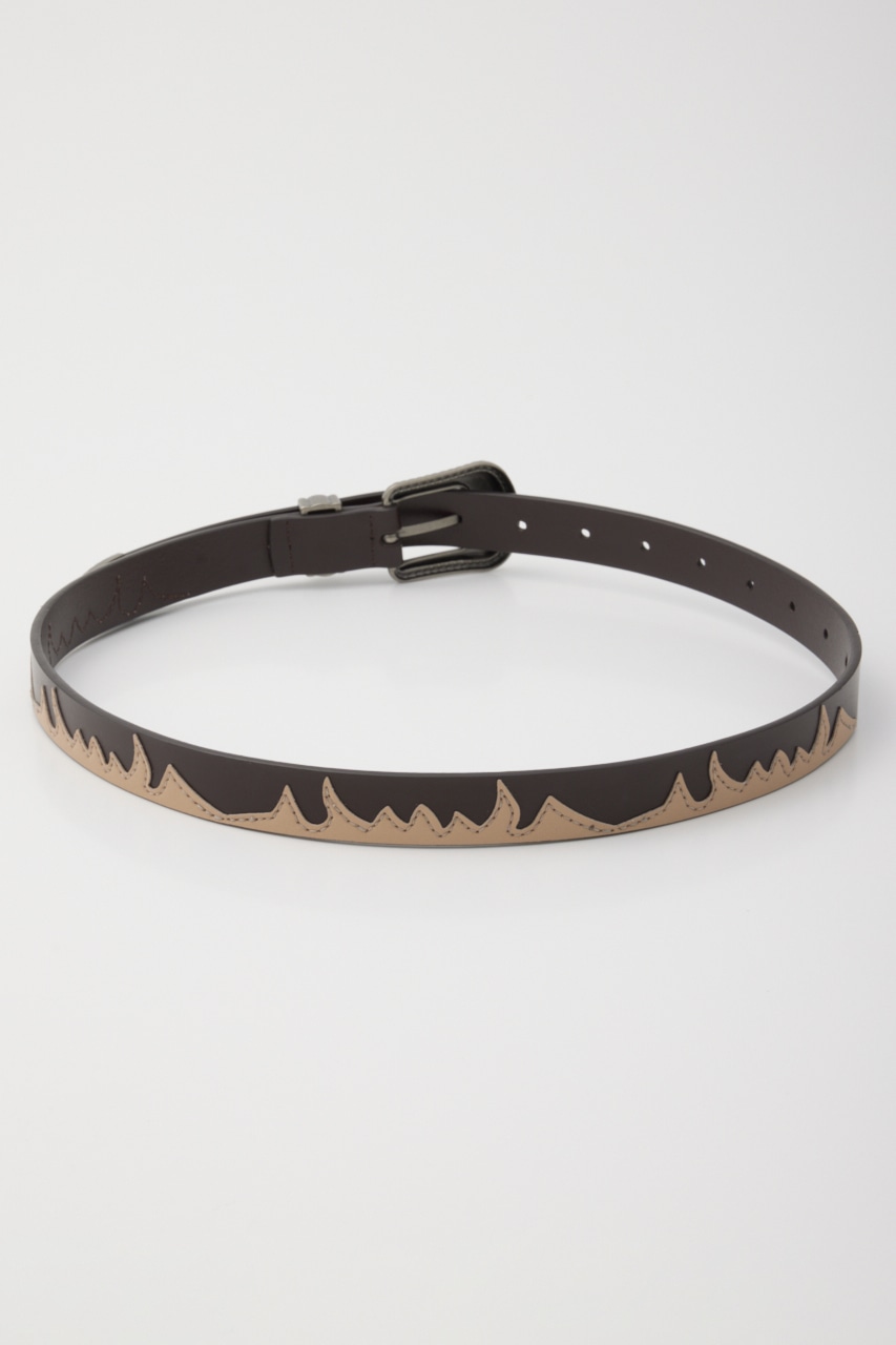 ファイヤーモチーフを生地とステッチで重ねたオリジナルデザインのベルト。