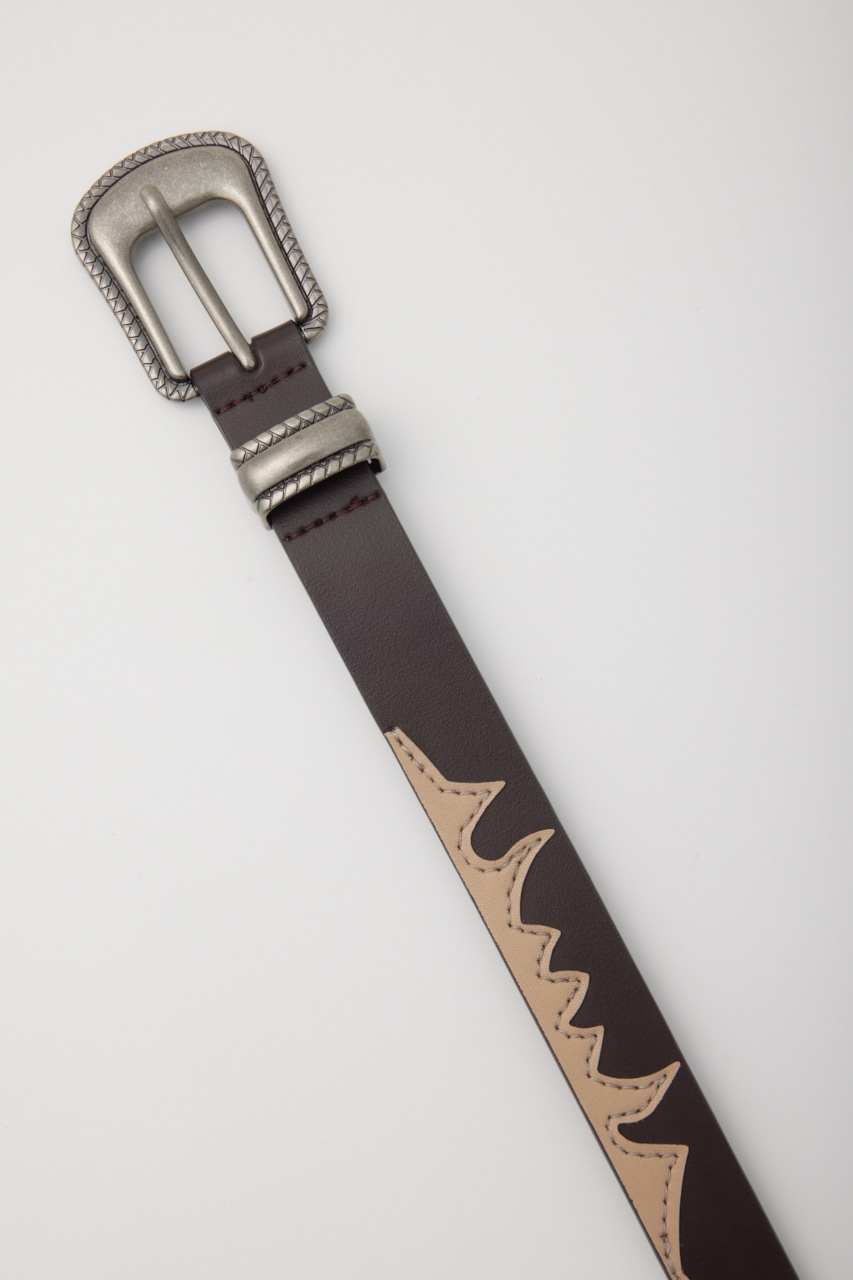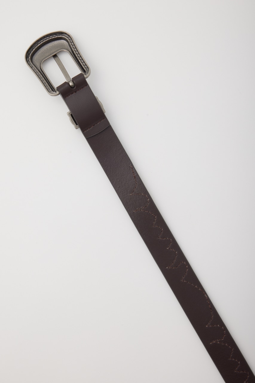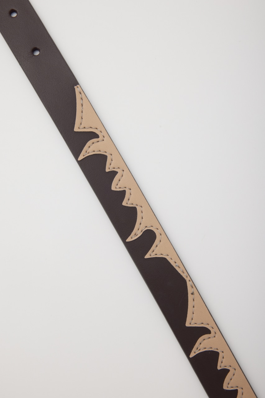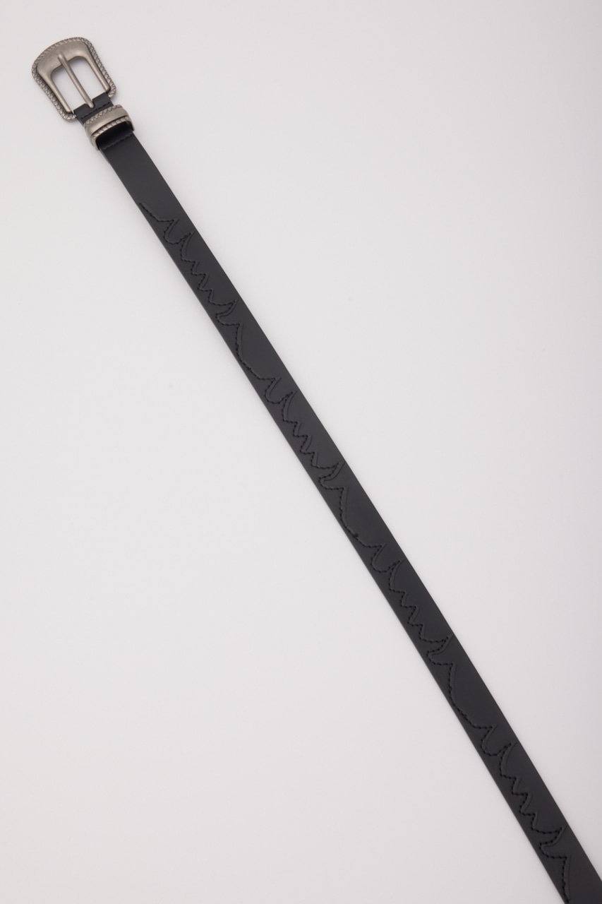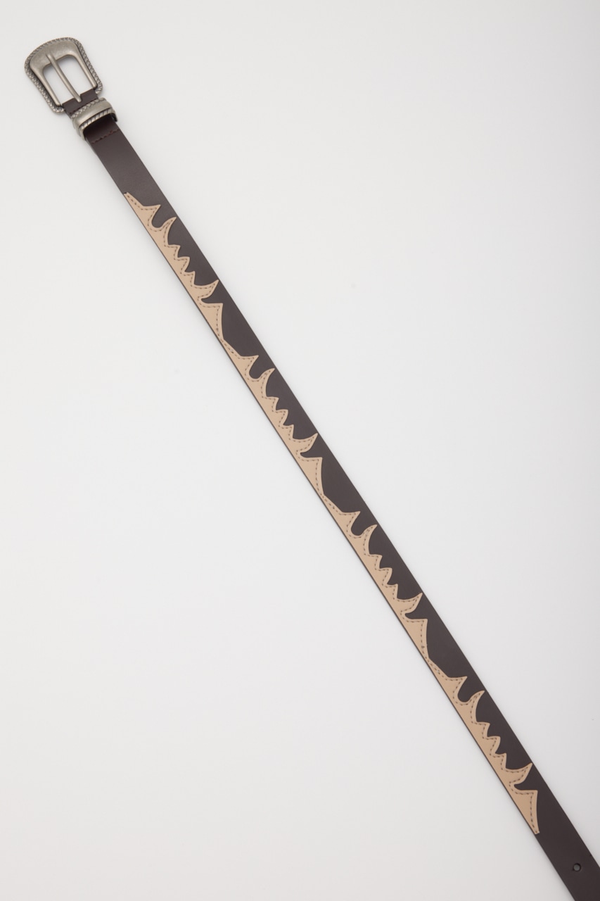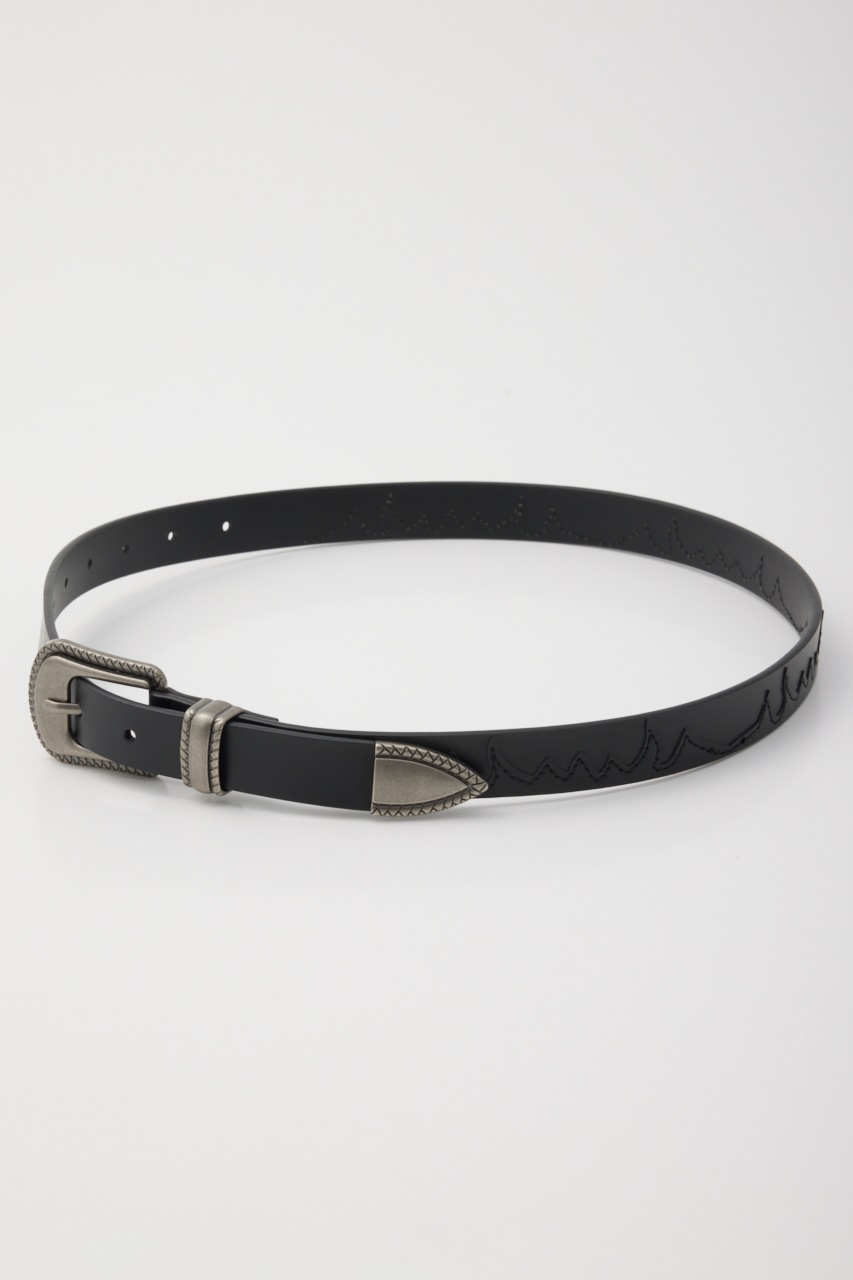 ファイヤーモチーフを生地とステッチで重ねたオリジナルデザインのベルト。