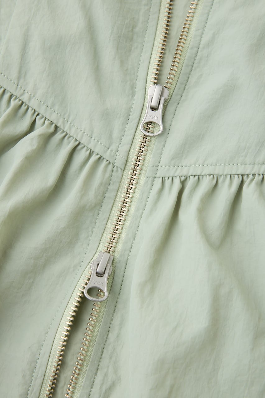 1枚で着るのはもちろん、Tシャツなどとレイヤードして着ても、ファスナーを下から開けて、
