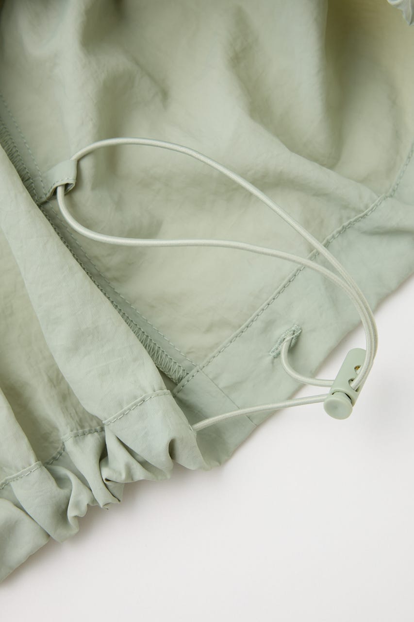 裾は広がりすぎないよう調節可能なドローコード入り。