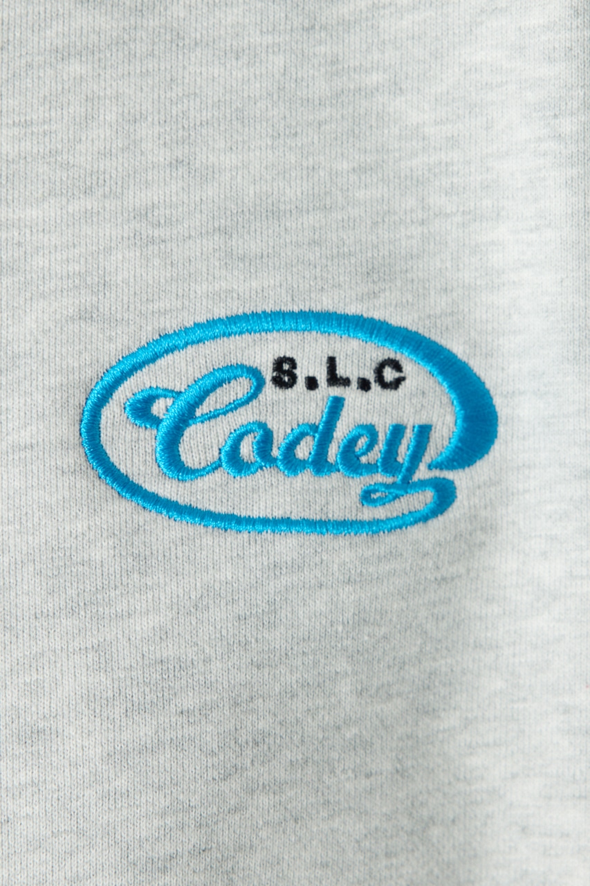 ドローコード付きのスタンドカラー仕様という一風変わったデザインが魅力の裏毛スウェット。