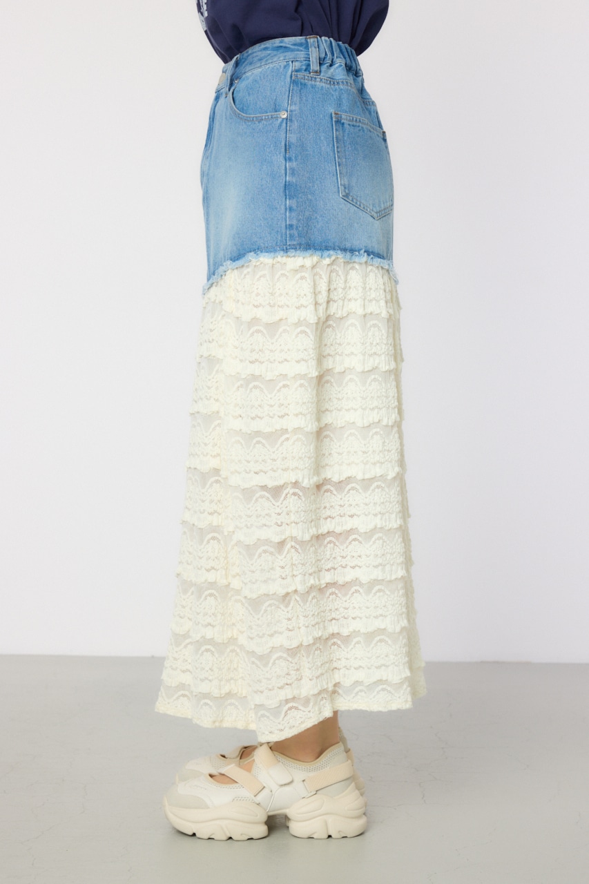 デニムとレースがドッキングされた春にぴったりなアイテム。