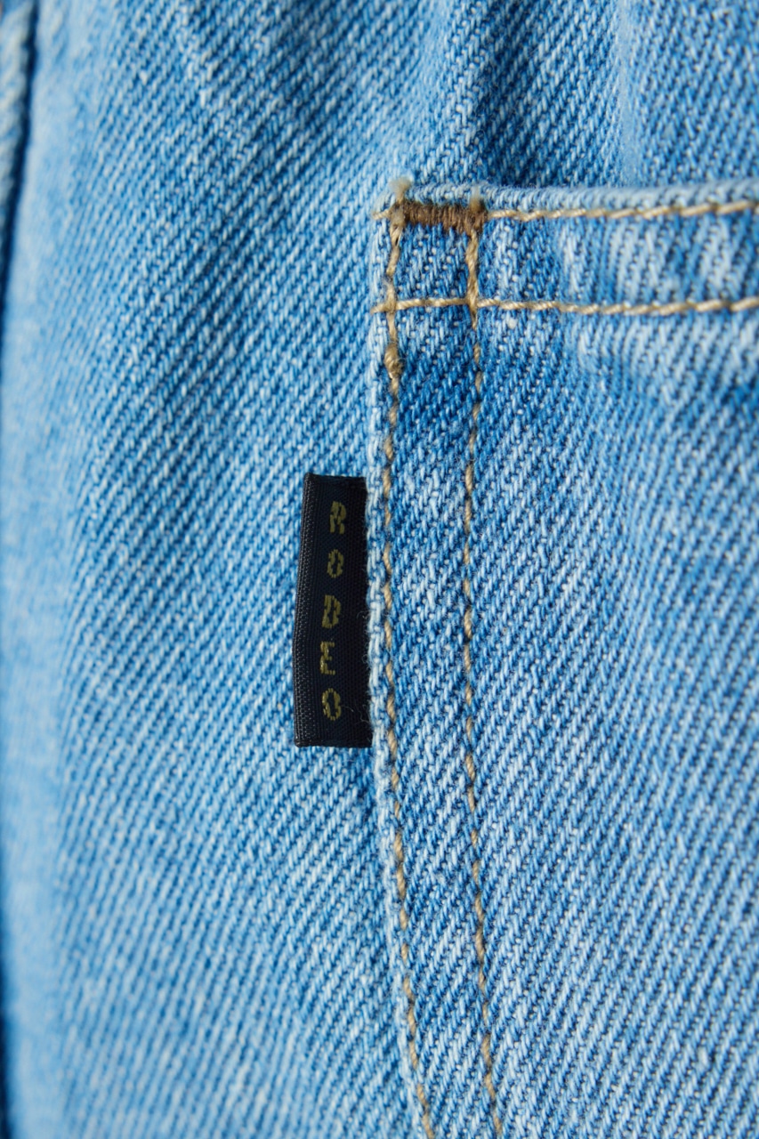 デニム同様、RODEO CROWNSオリジナルタックボタン、リベットを使用し、後ポケットにはブランドのピスネームを付けました。