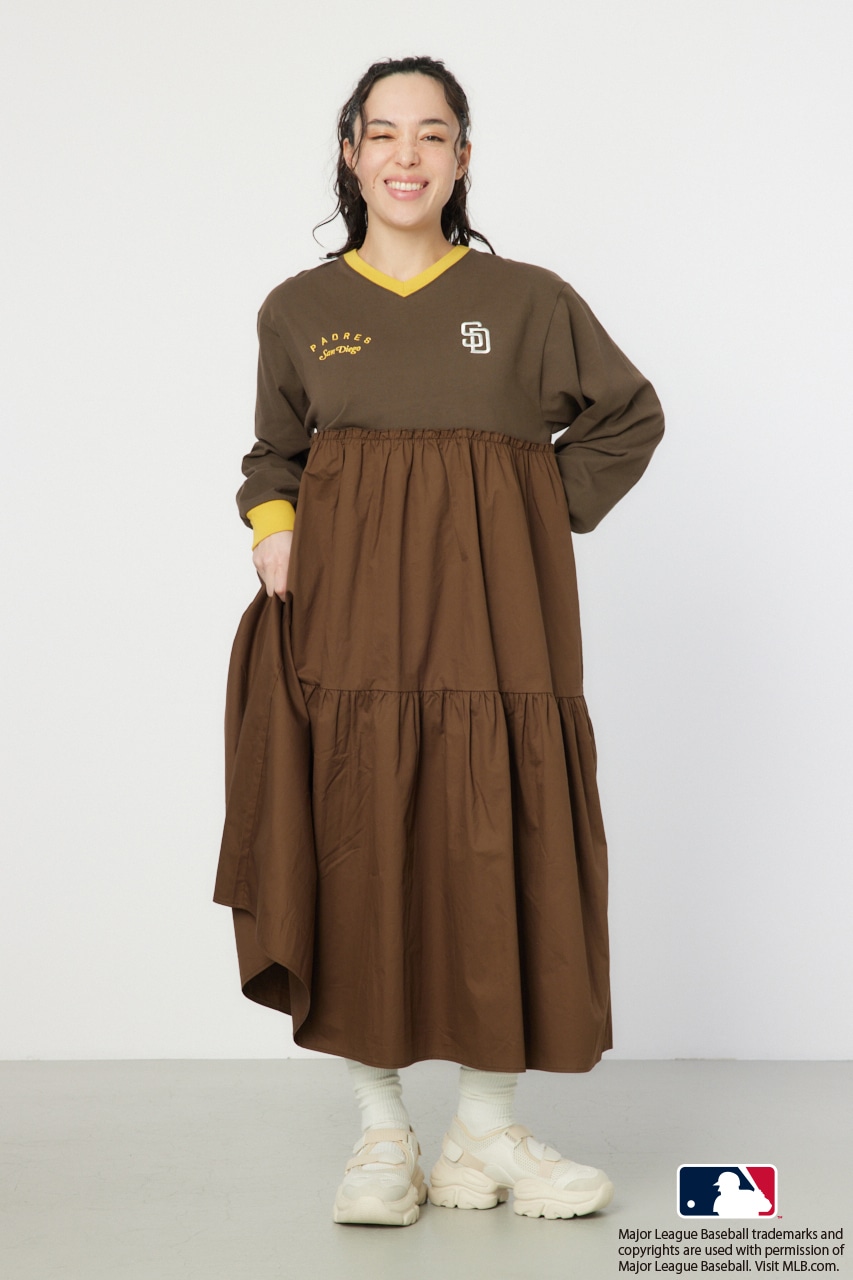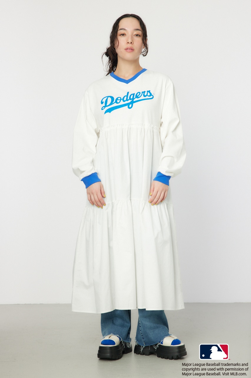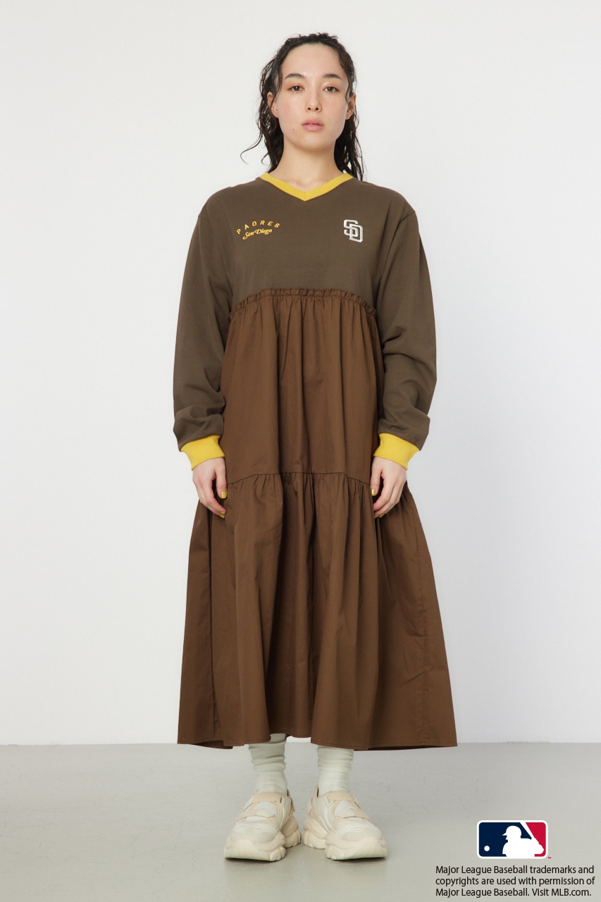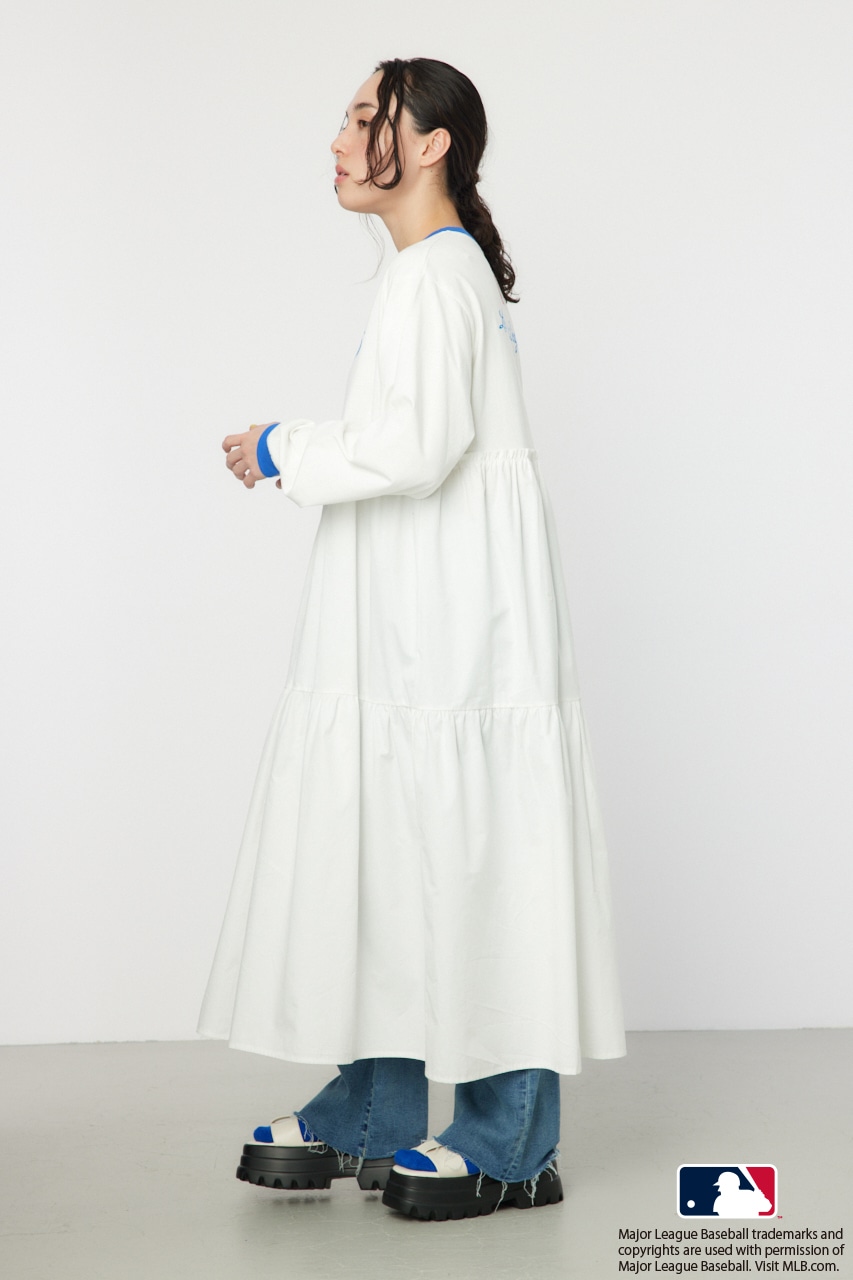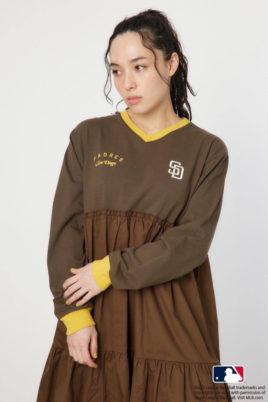 ロングスリーブ部分をカット天竺、スカート部分を布帛でドッキングしたリメイクのような作りでカジュアル感を演出。それぞれの球団カラーでまとめた1カラー1デザインのアイテム。