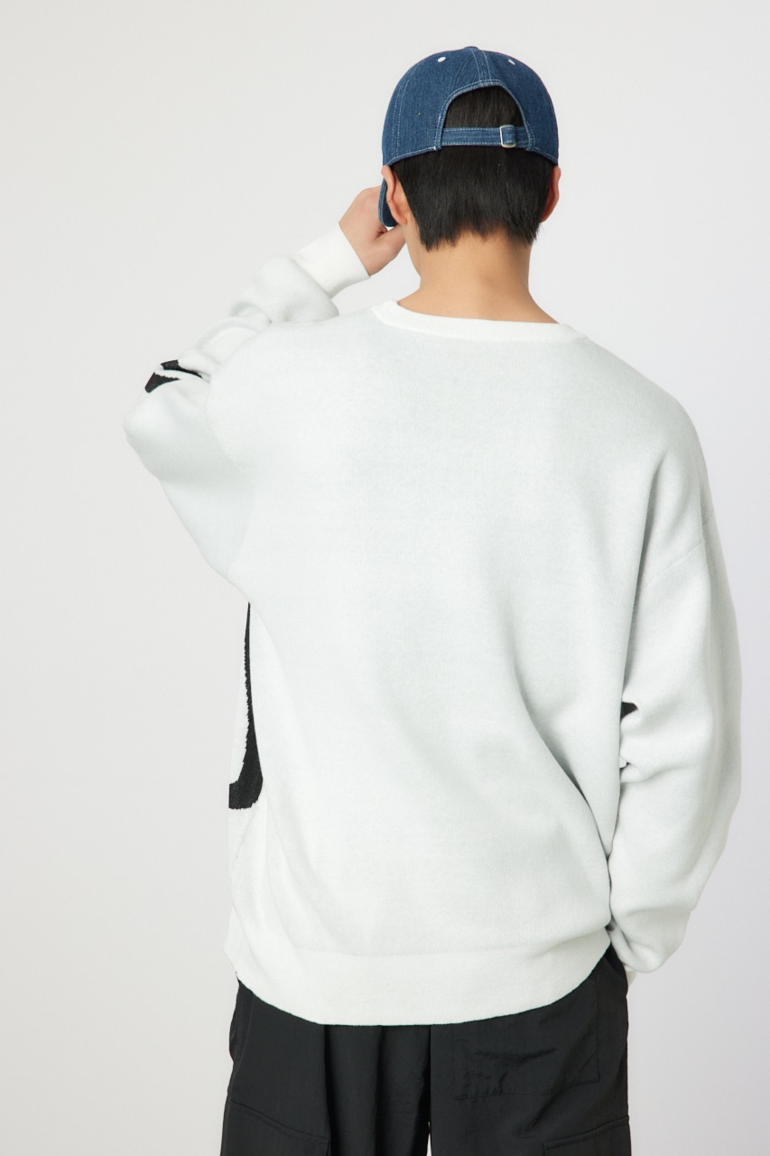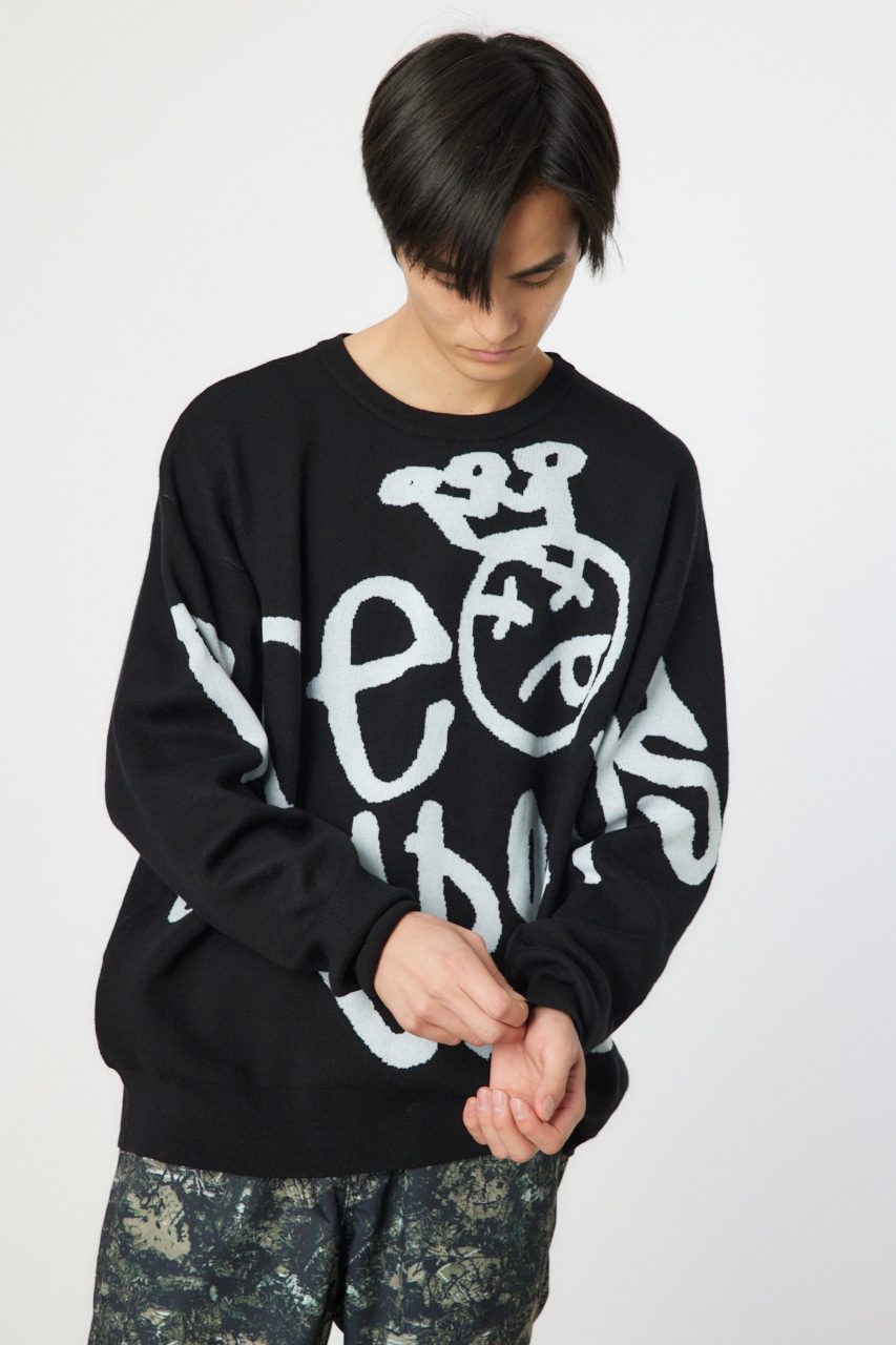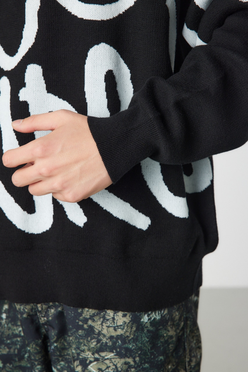 タギングロゴを大胆に配したニットは存在感もあり、一枚で様になるアイテム。