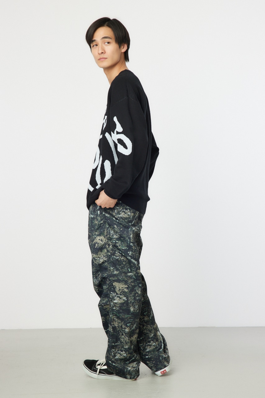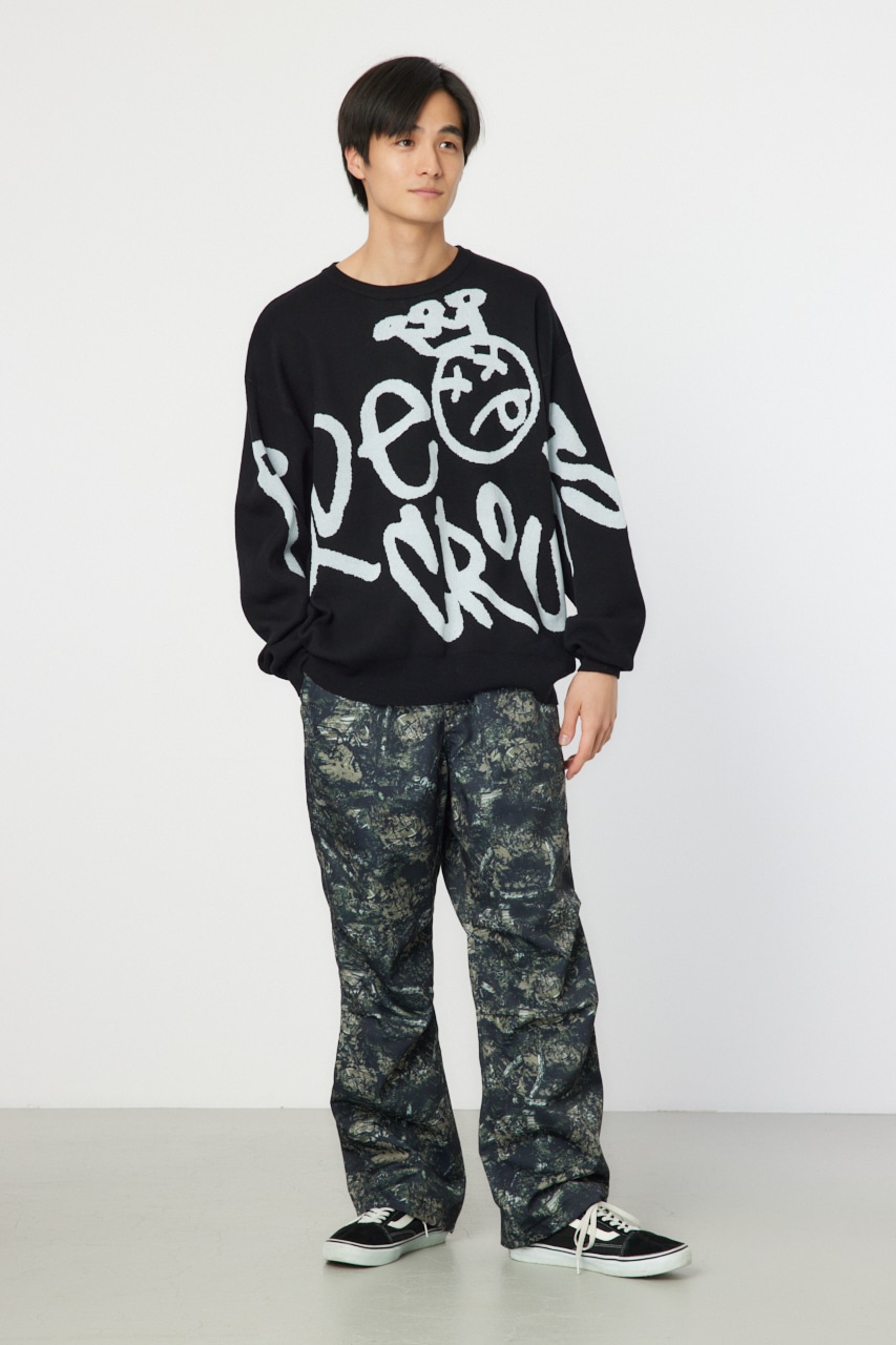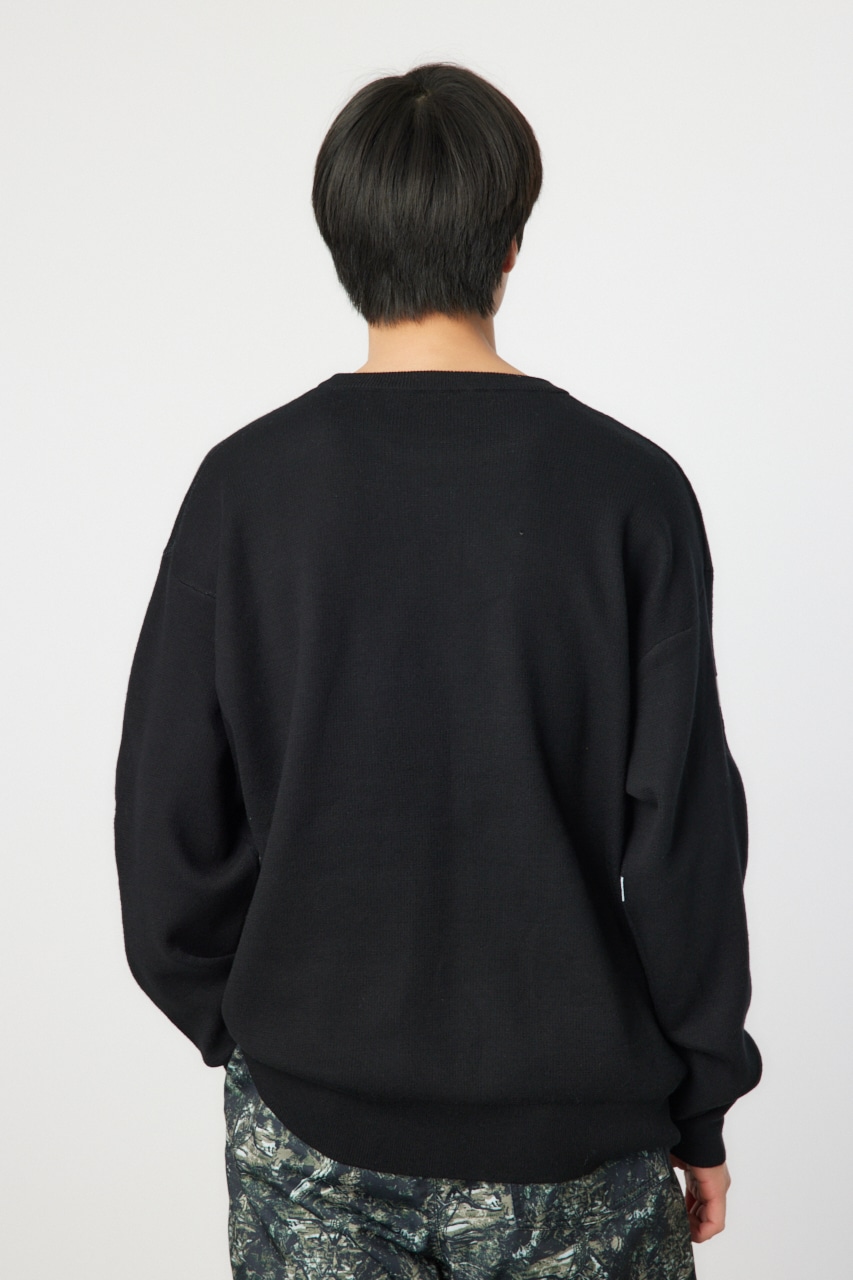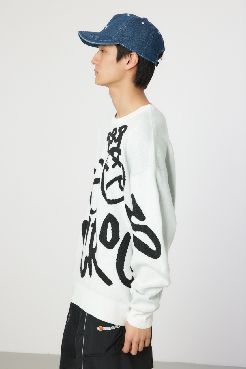 タギングロゴを大胆に配したニットは存在感もあり、一枚で様になるアイテム。