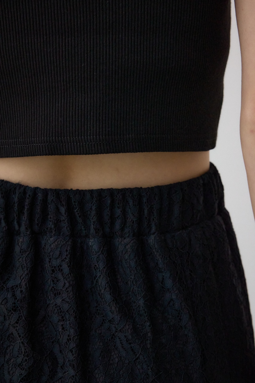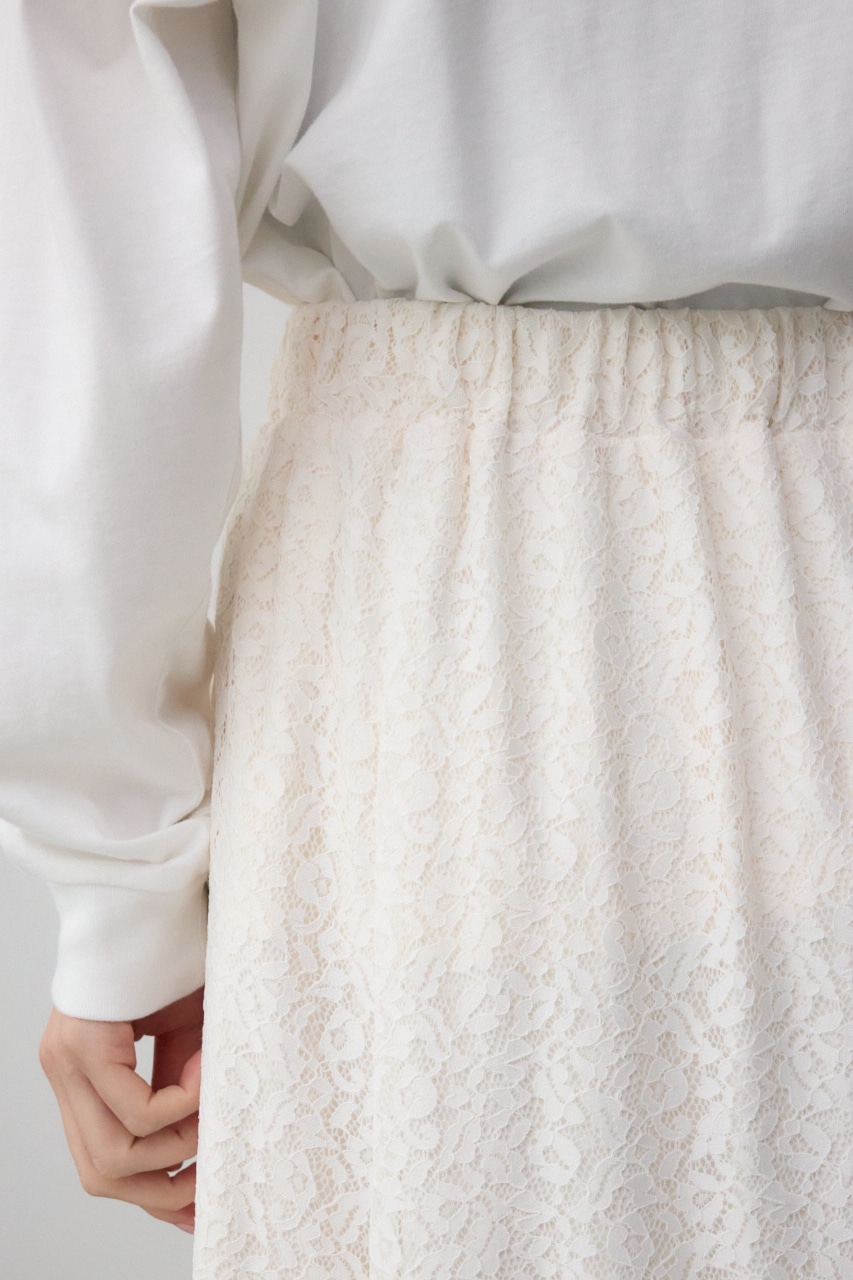 ウエストゴム仕様で総レースの裏地付きスカート。