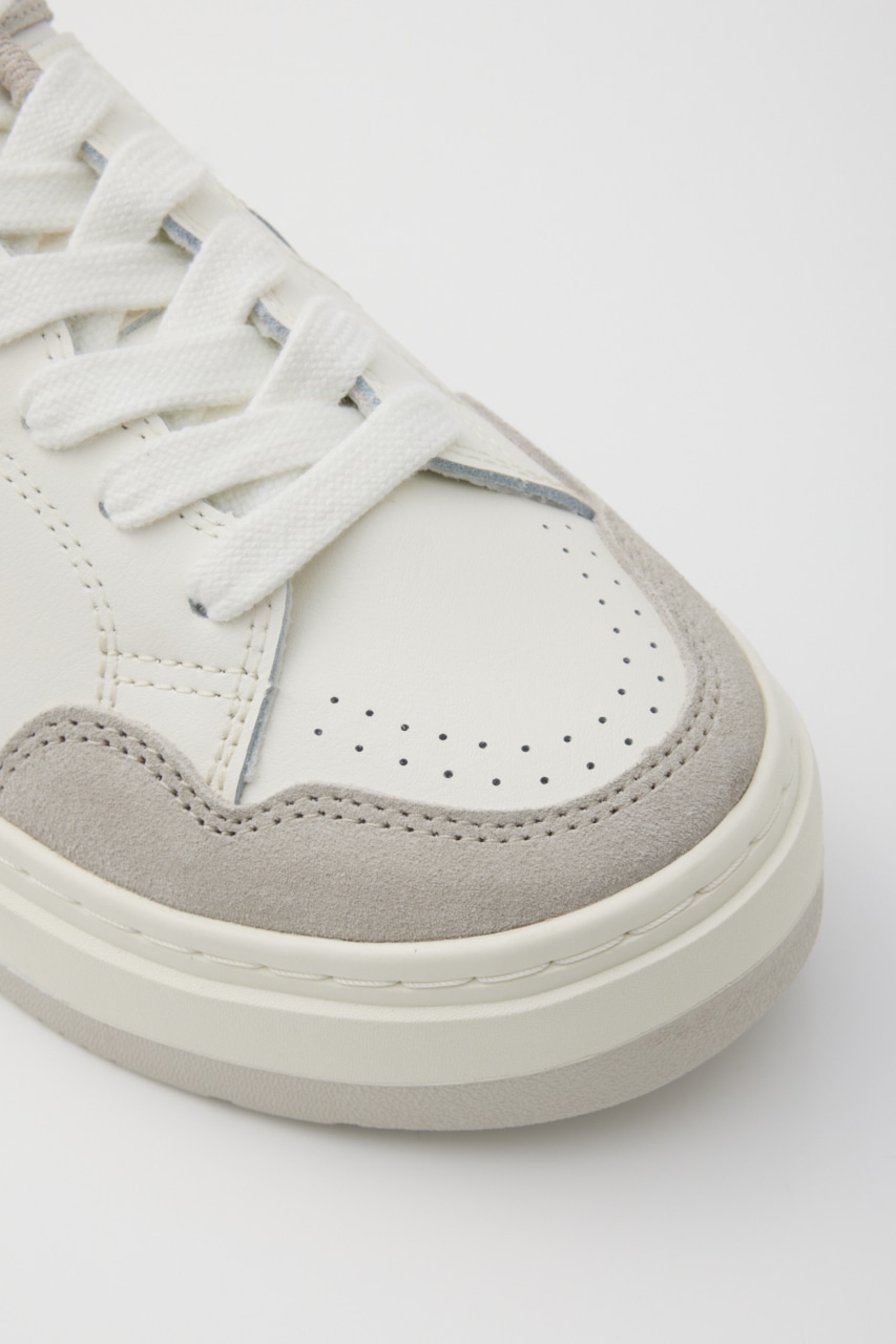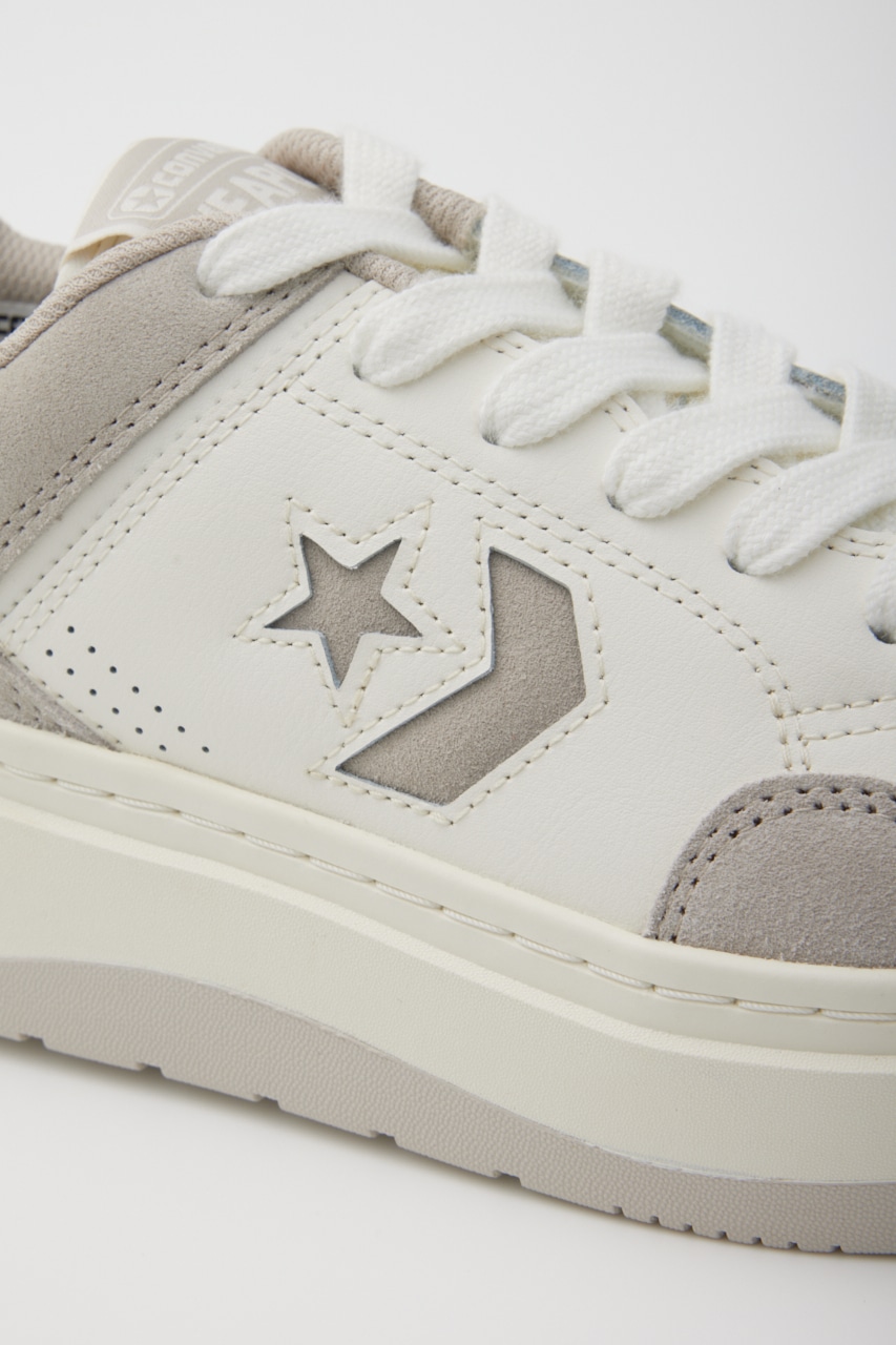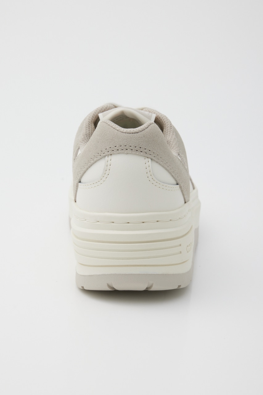 アッパーには足になじみやすいハリのあるレザーと淡いカラーのスエードをコンビ使いすることで、クラシックな印象に。