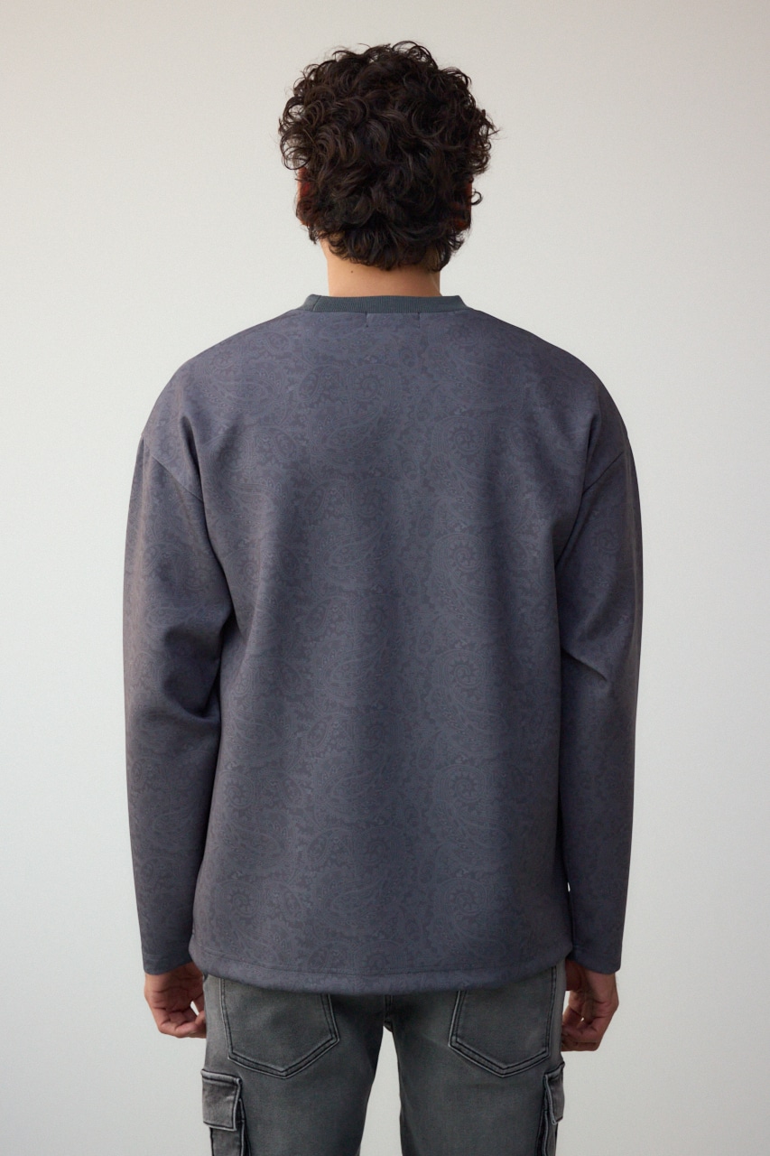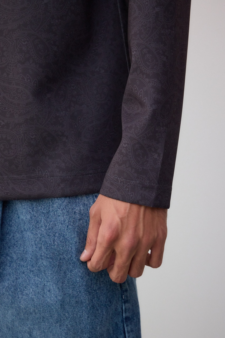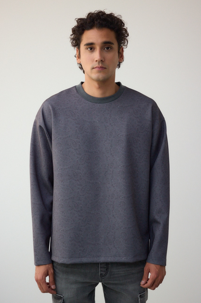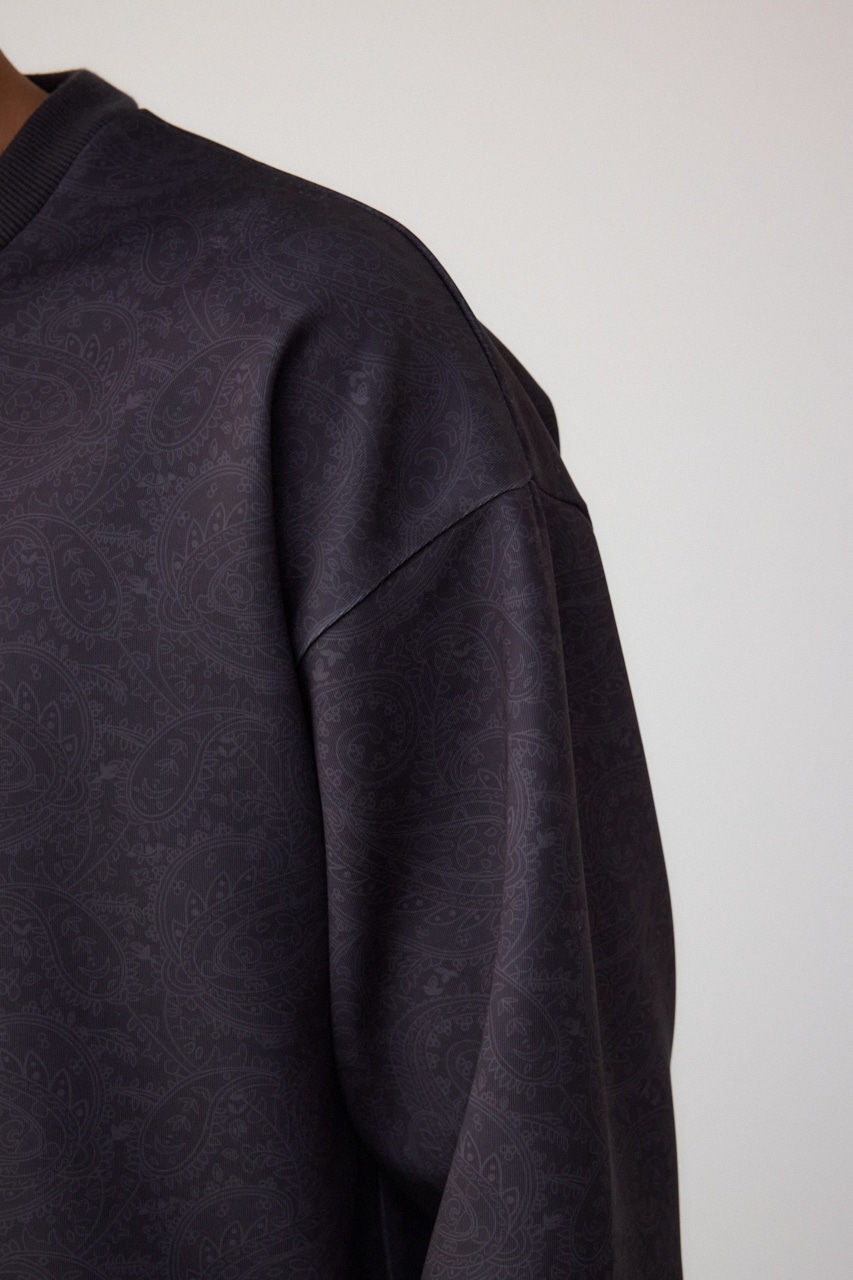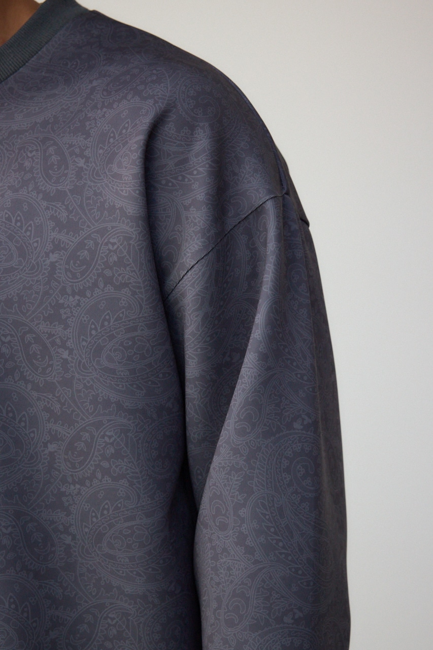 程よく光沢感のある、総柄プリントプルオーバーです。