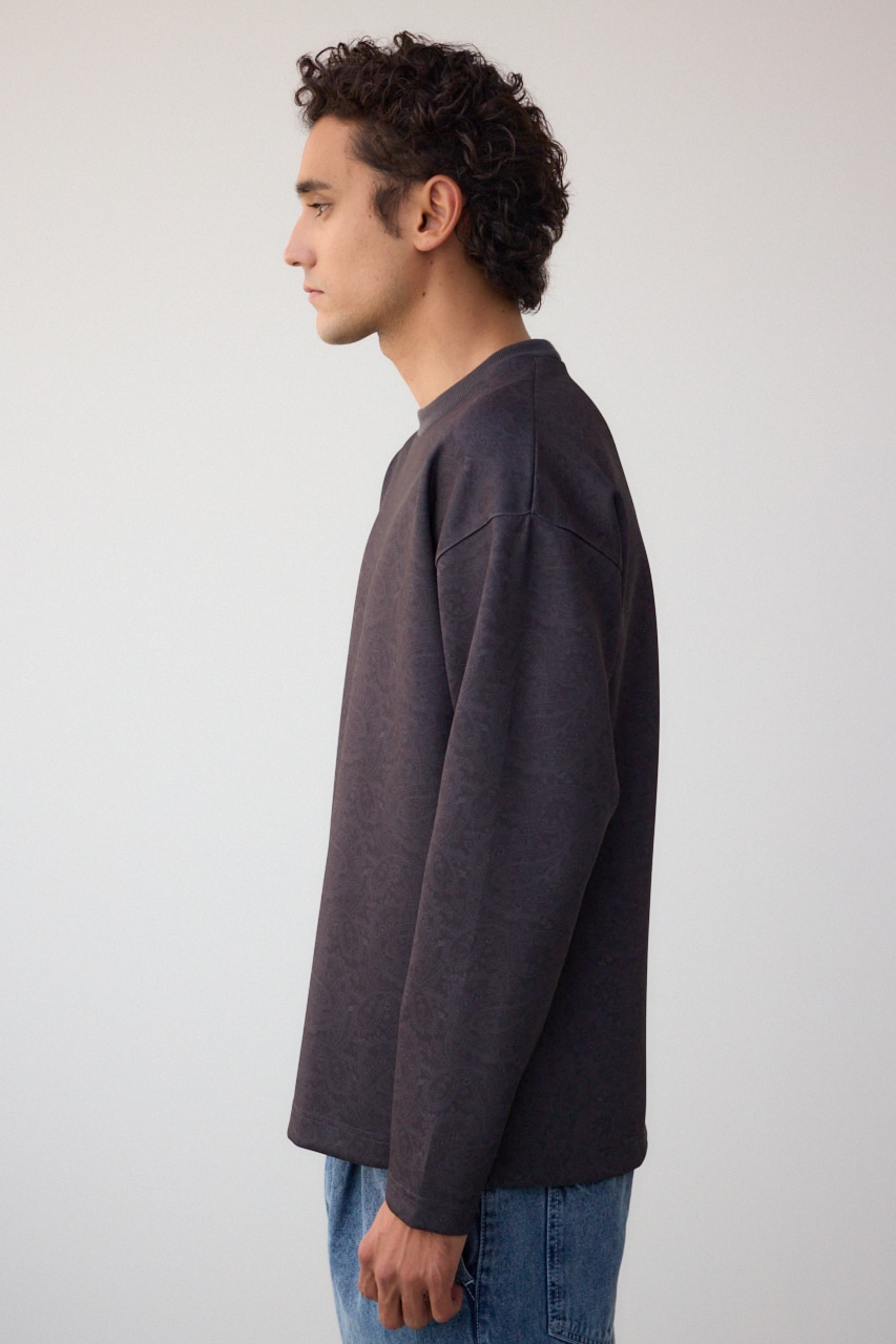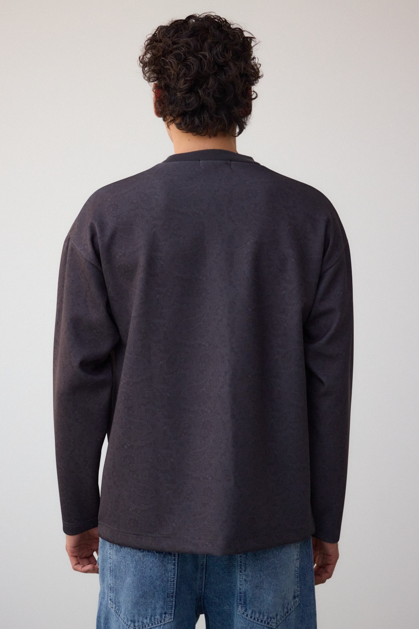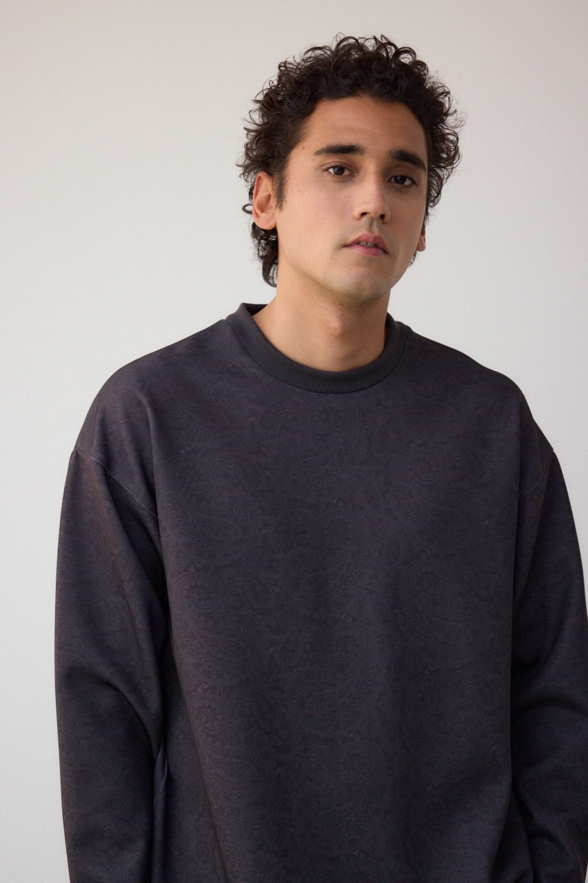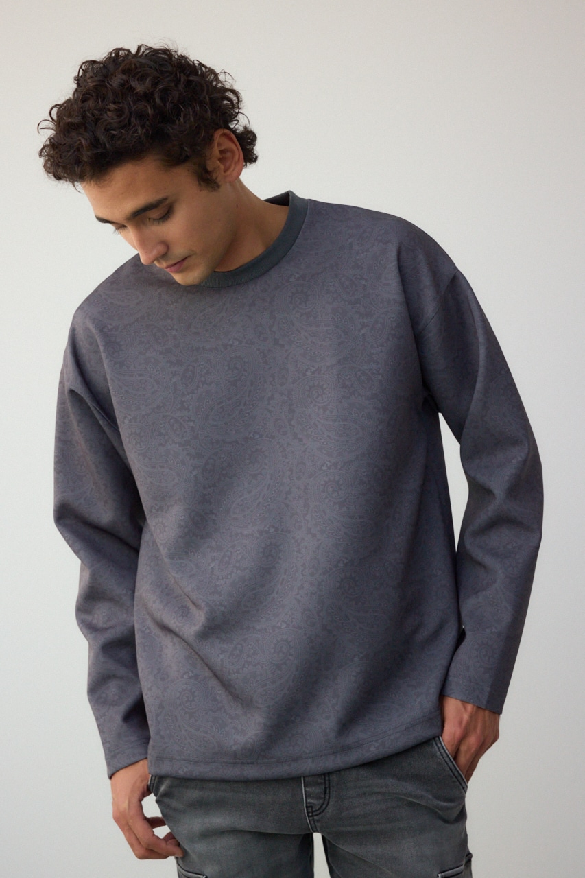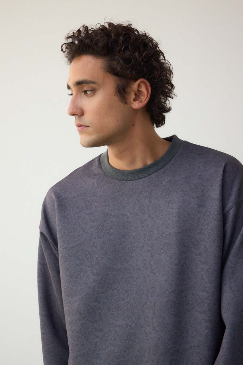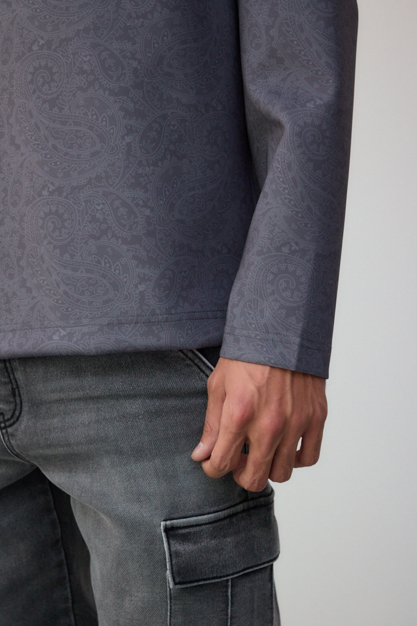 程よく光沢感のある、総柄プリントプルオーバーです。
