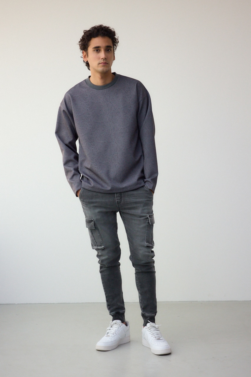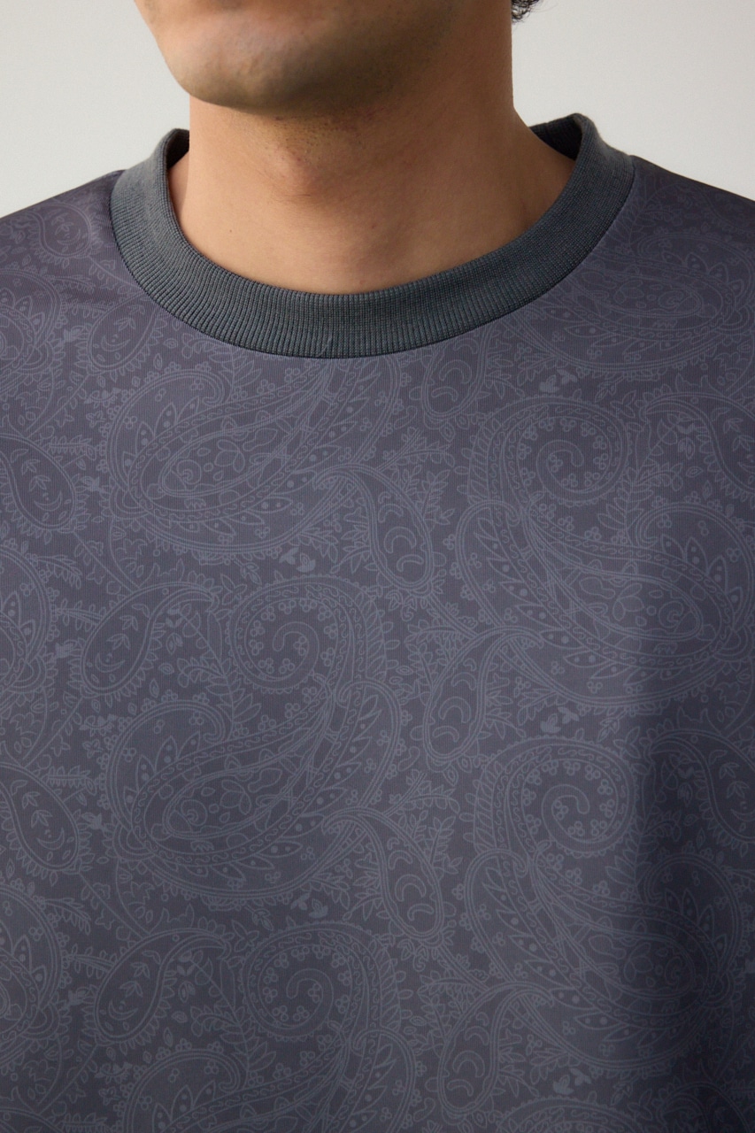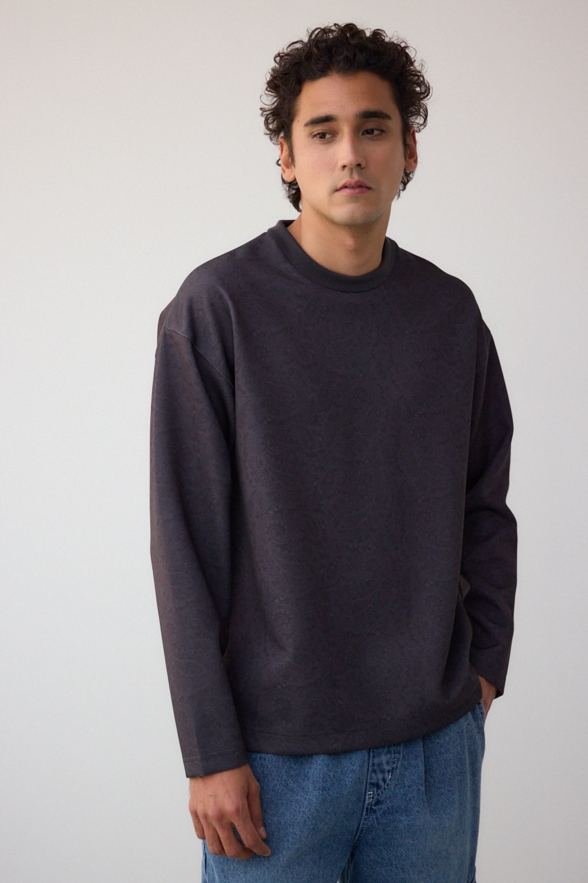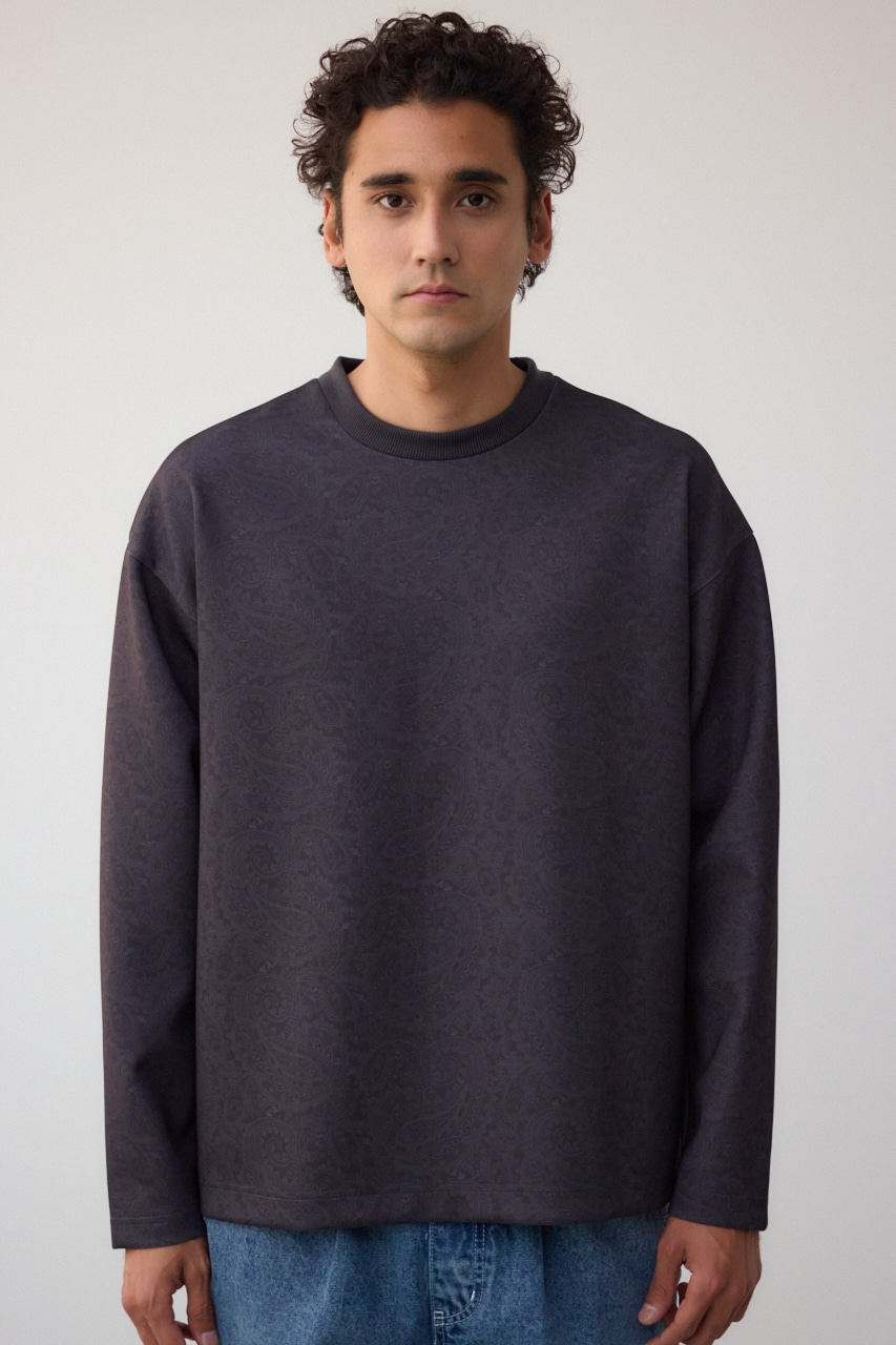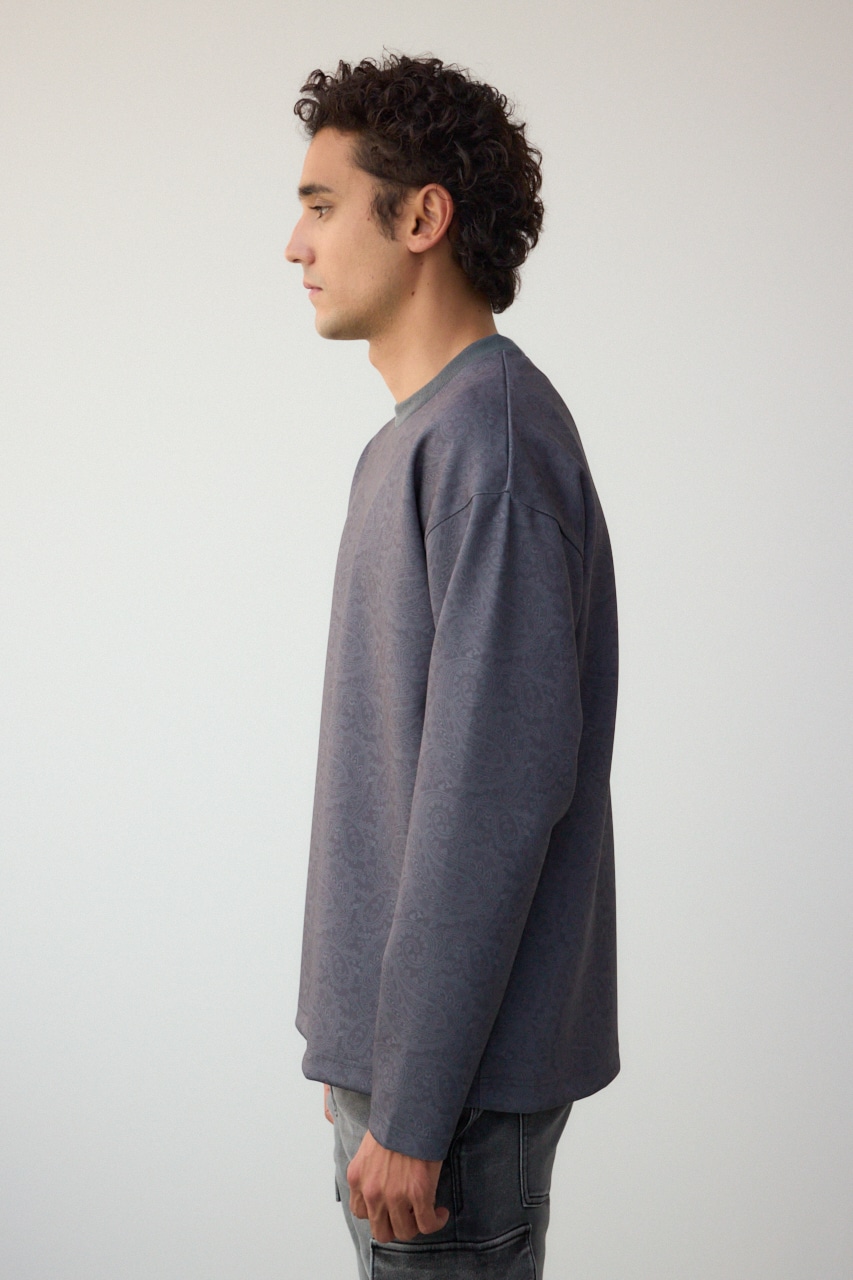 程よく光沢感のある、総柄プリントプルオーバーです。