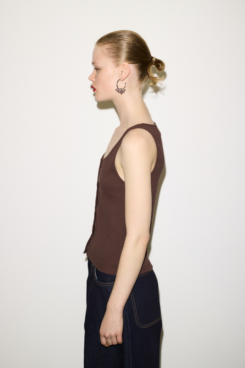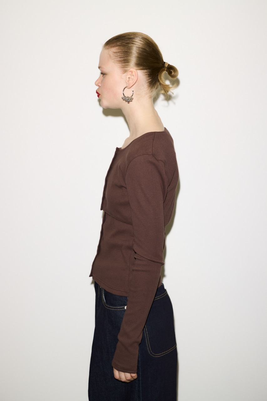 ■POINT:タンクトップとクロップド丈カーディガンが2枚セットになったお得感のあるテレコトップス。