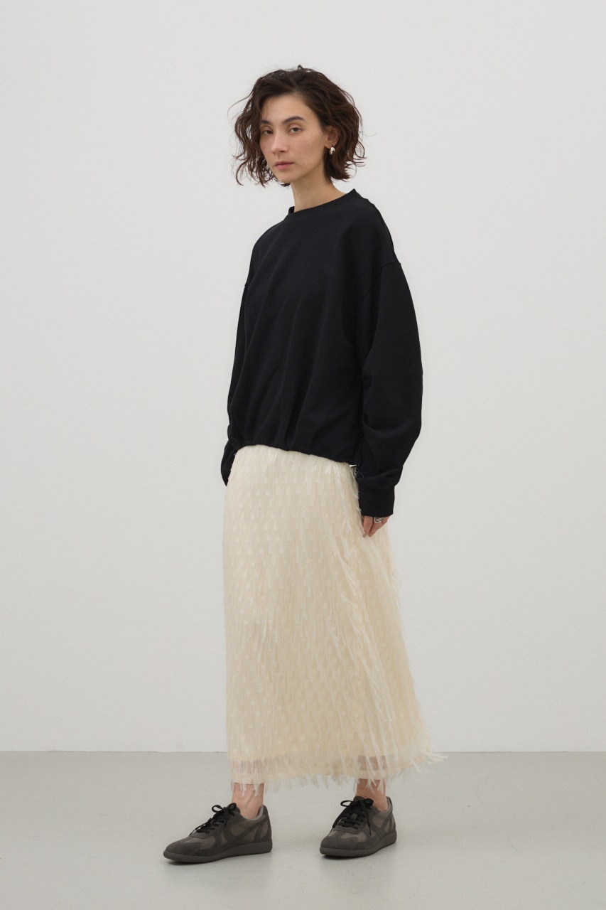 スラックスや、スカートなどキレイ目アイテムの外しに。