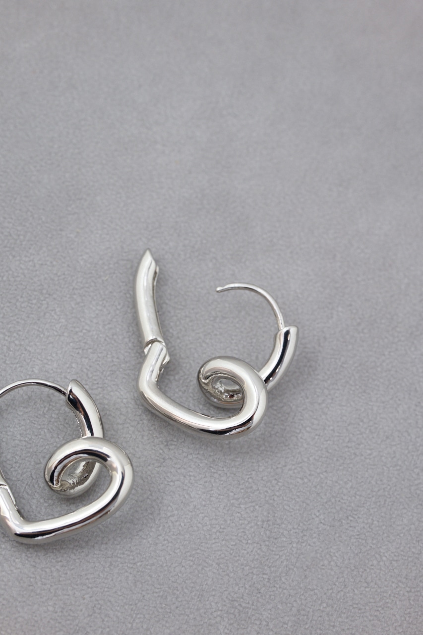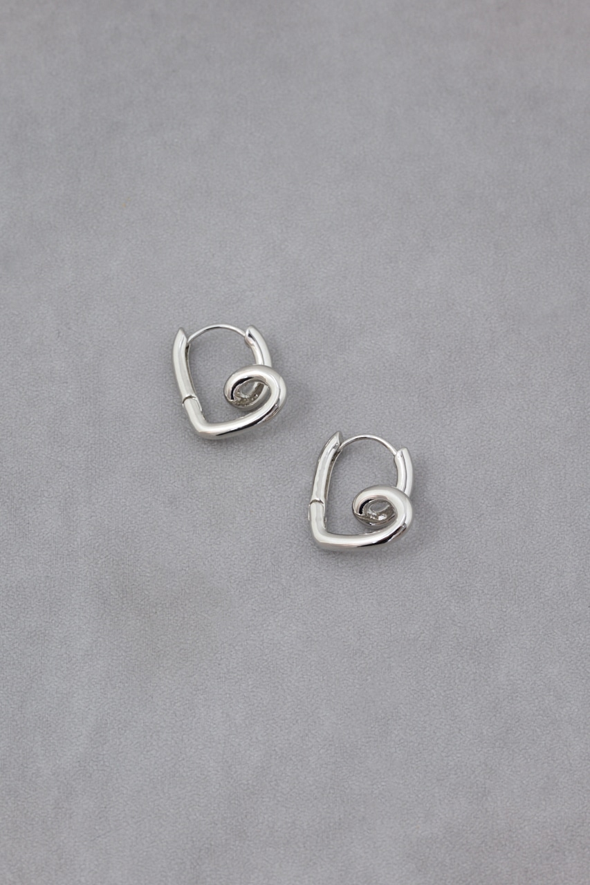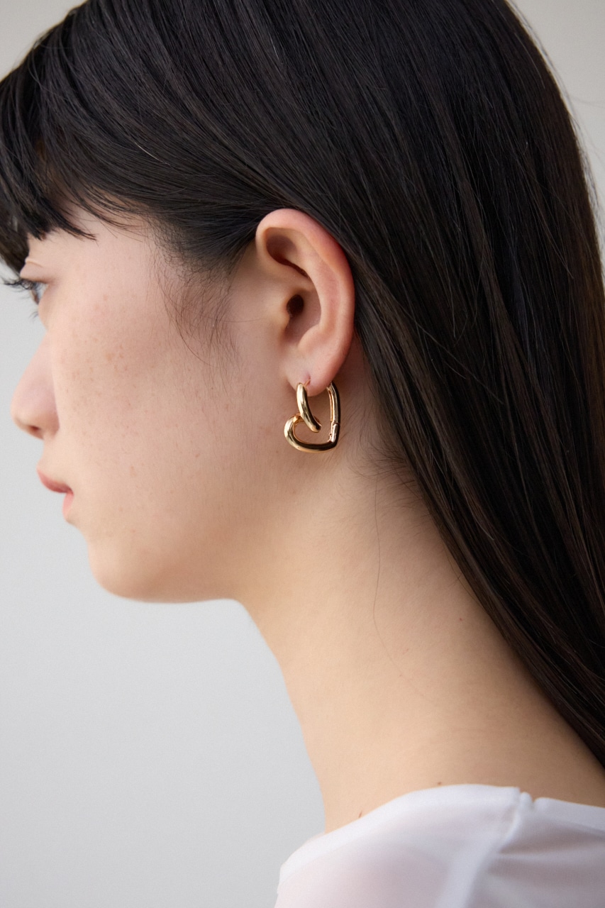 フープ部分がシンプルに仕上げられており、ニュアンスのあるハートモチーフがアクセントとなり、さりげなく耳元を華やかに彩ります。