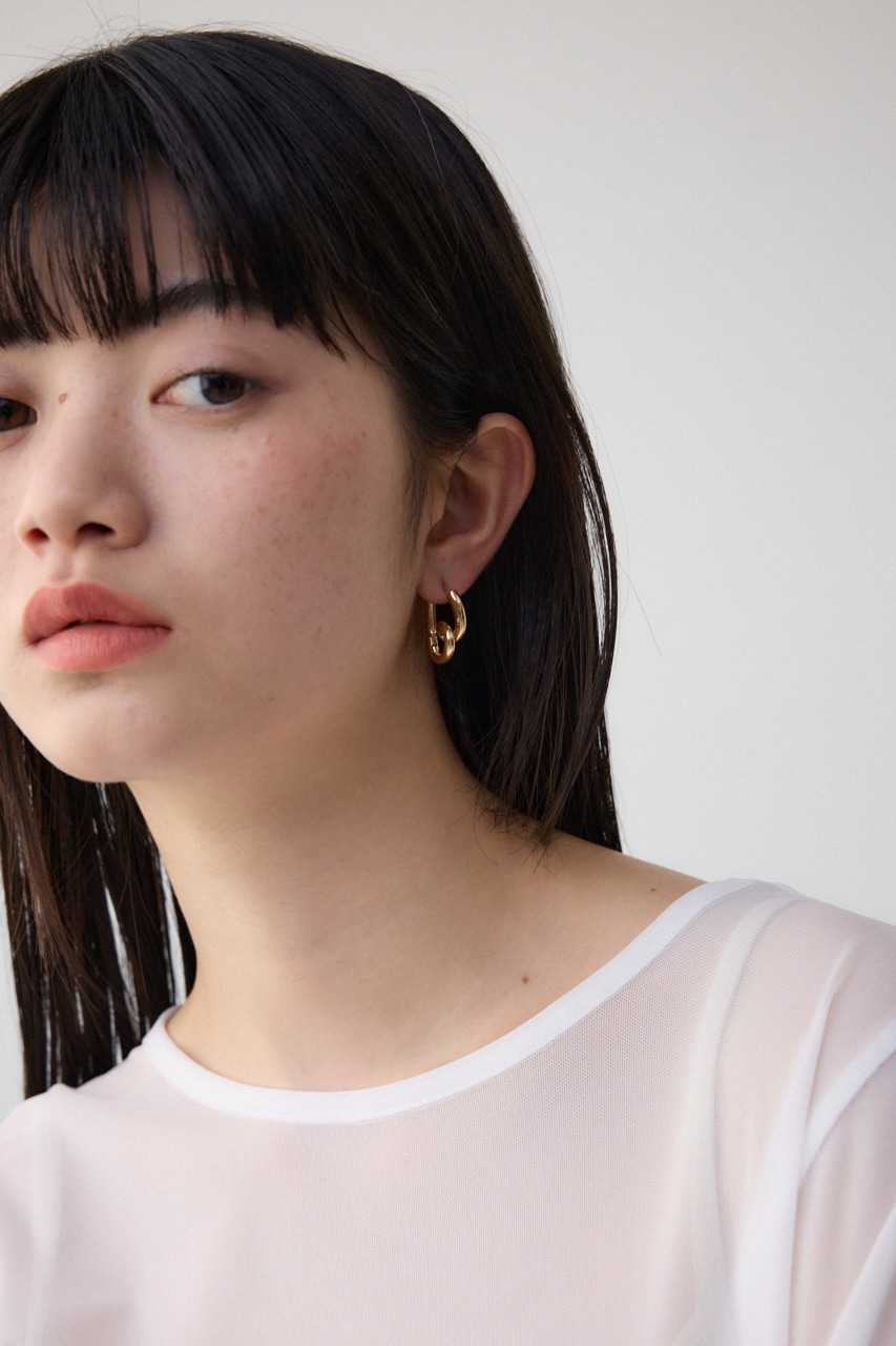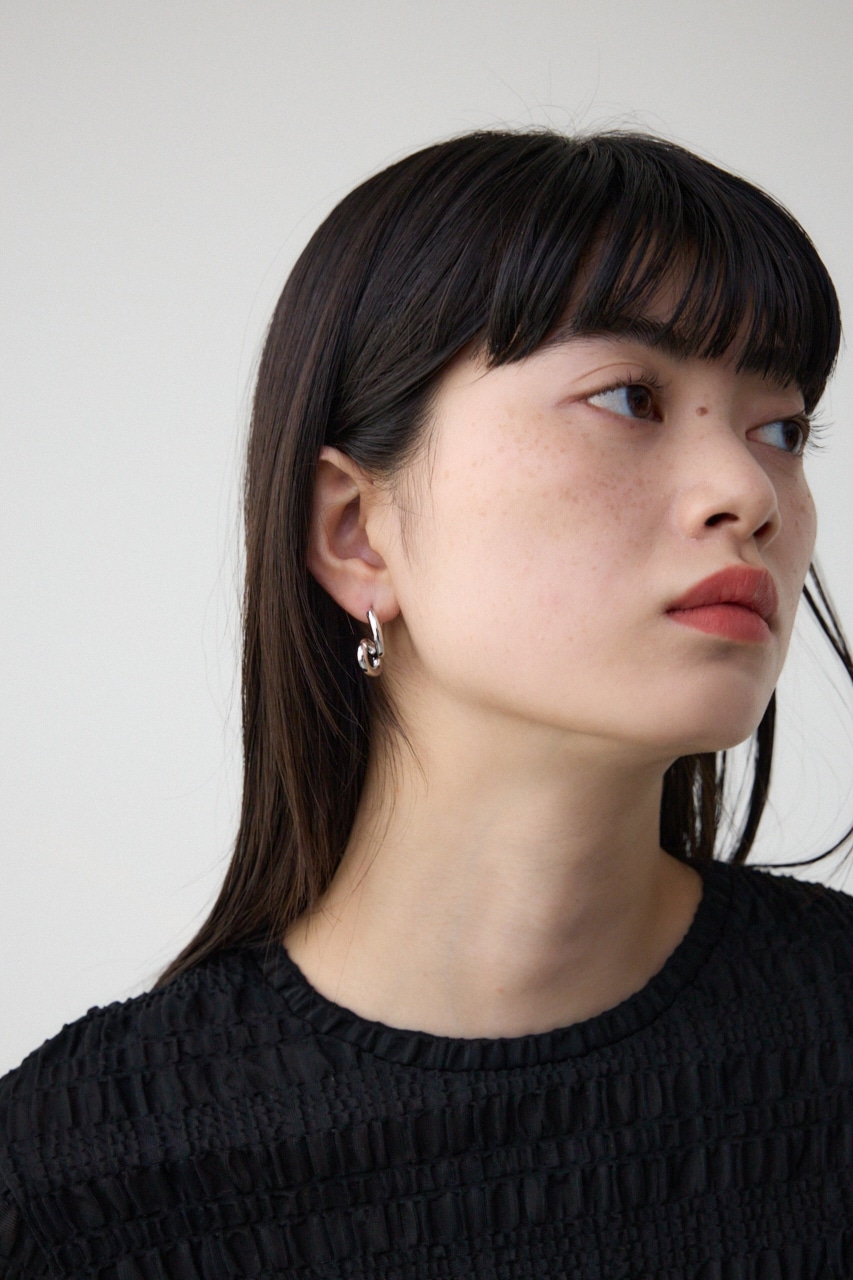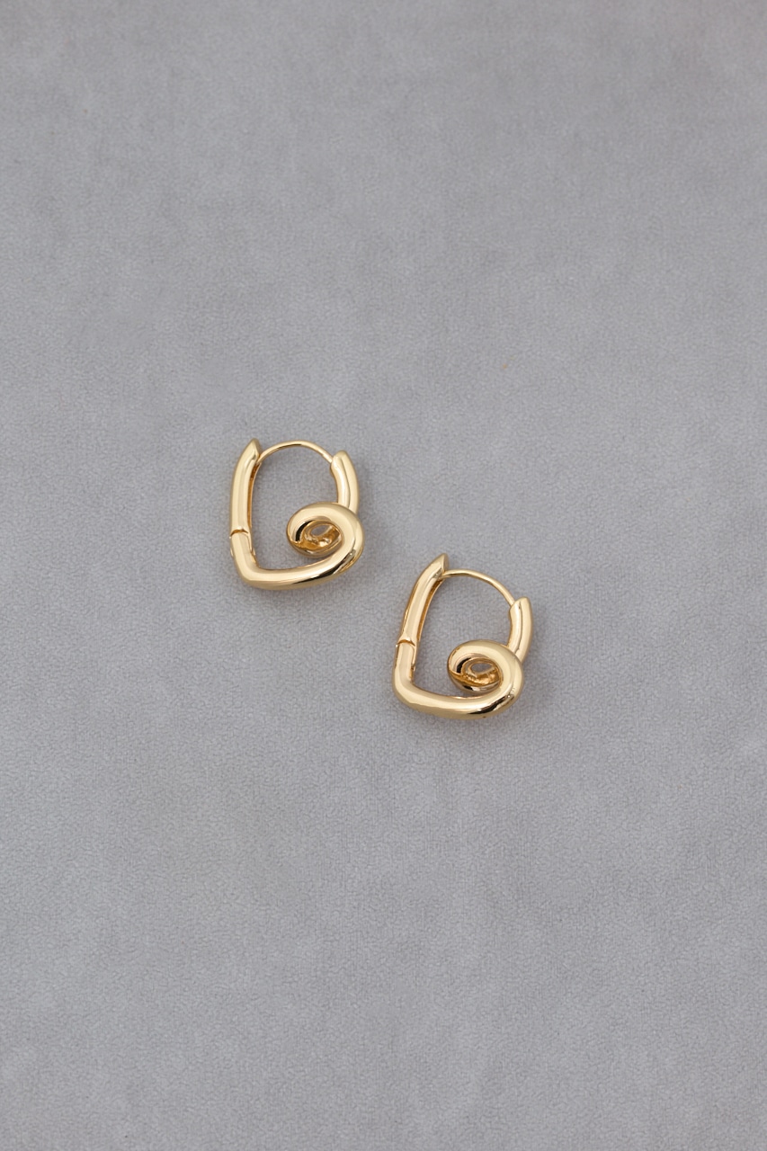 フープ部分がシンプルに仕上げられており、ニュアンスのあるハートモチーフがアクセントとなり、さりげなく耳元を華やかに彩ります。