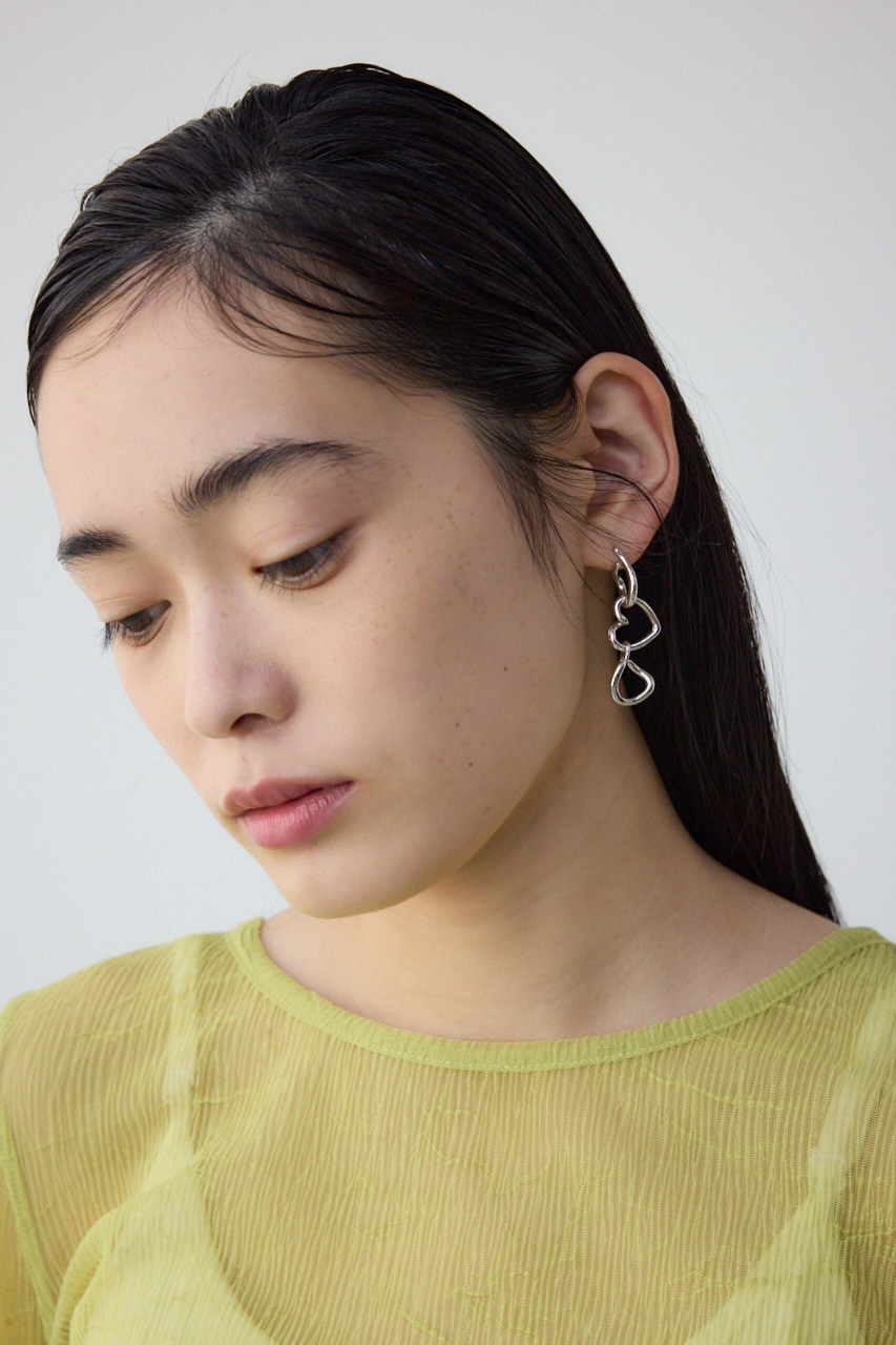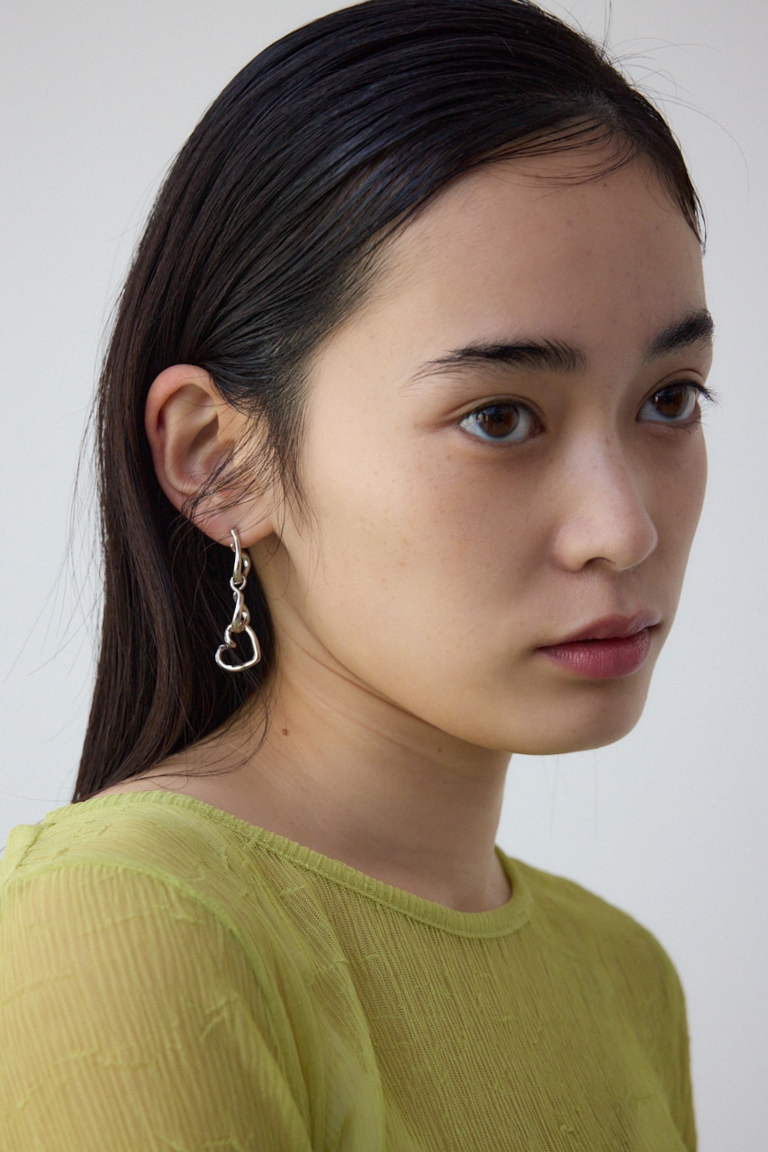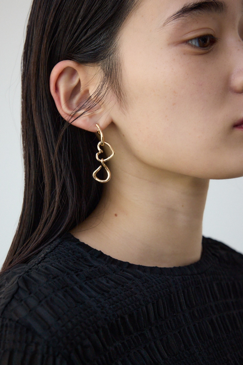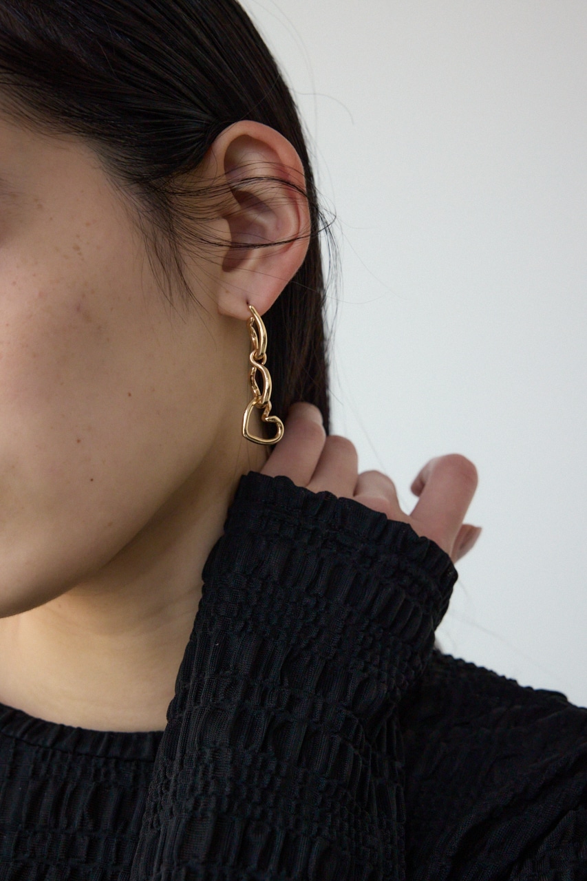 程よい大きさのハートモチーフが耳元で揺れ、シンプルながらも存在感を放ちます。