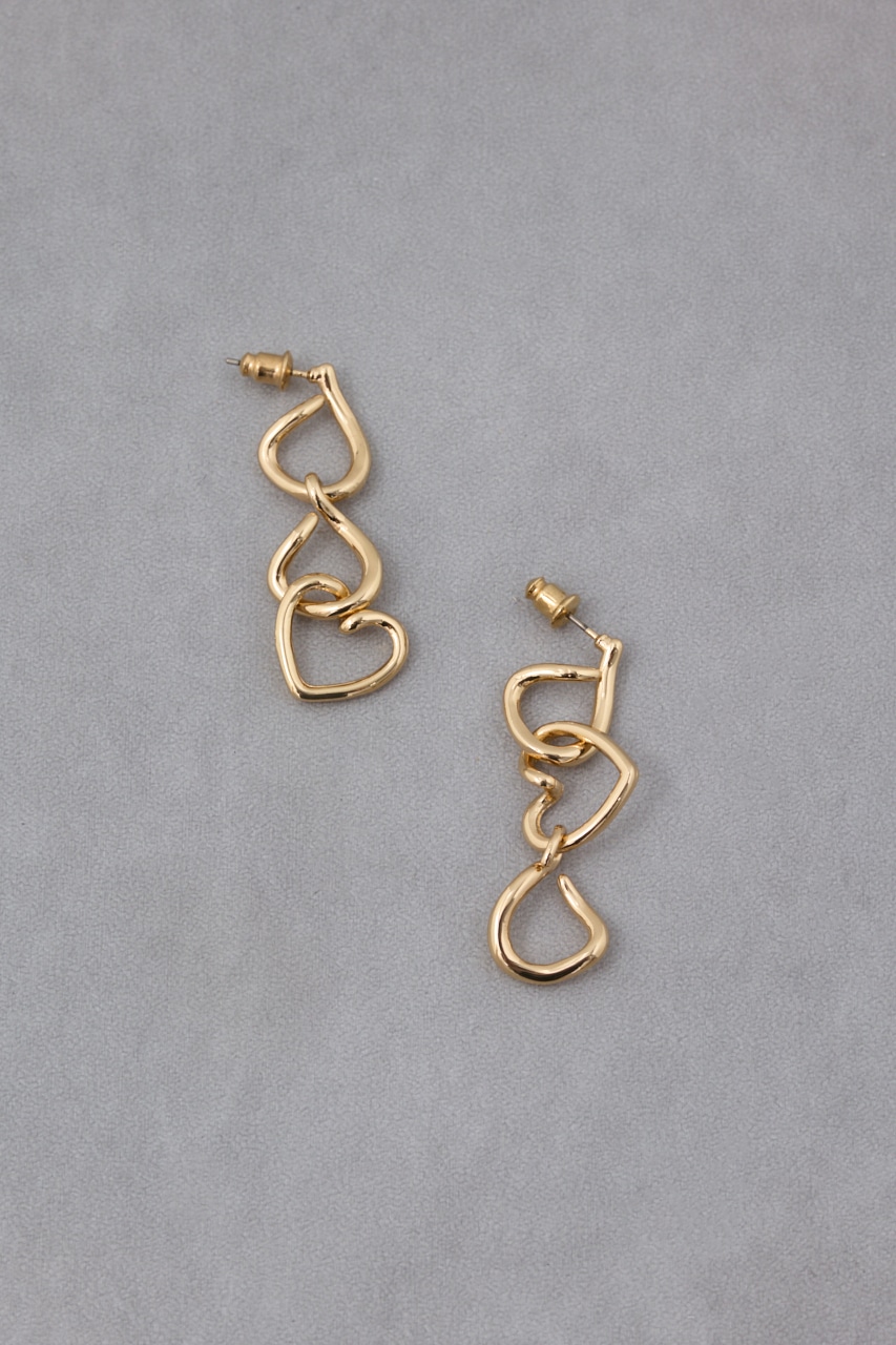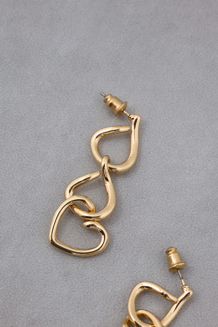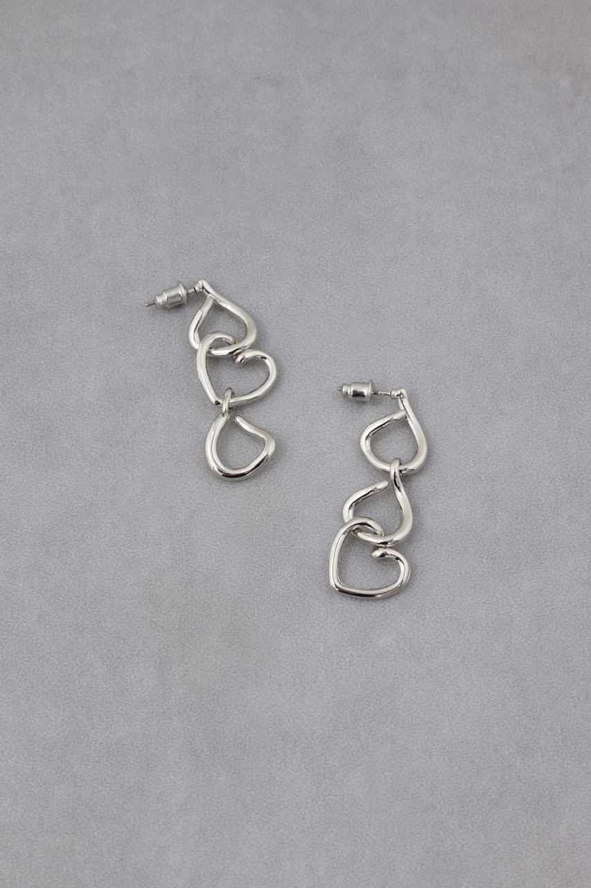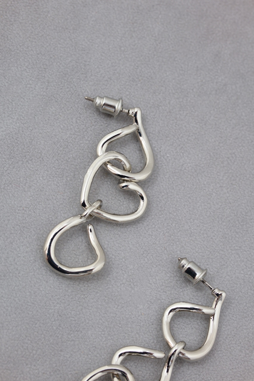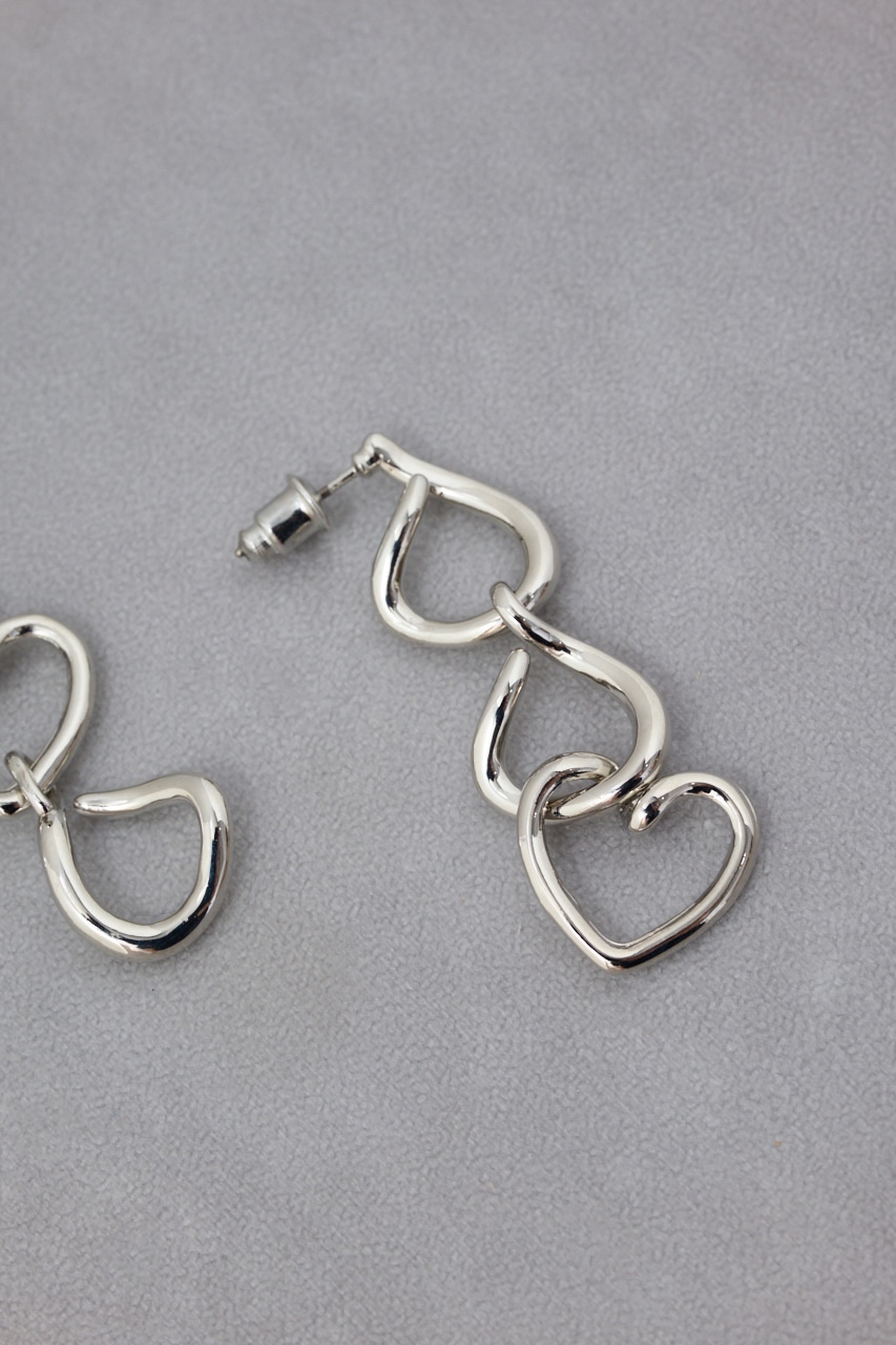 ハート型のチェーンが3個連なったデザインで、フェミニンさと洗練された雰囲気を兼ね備えたアイテムです。