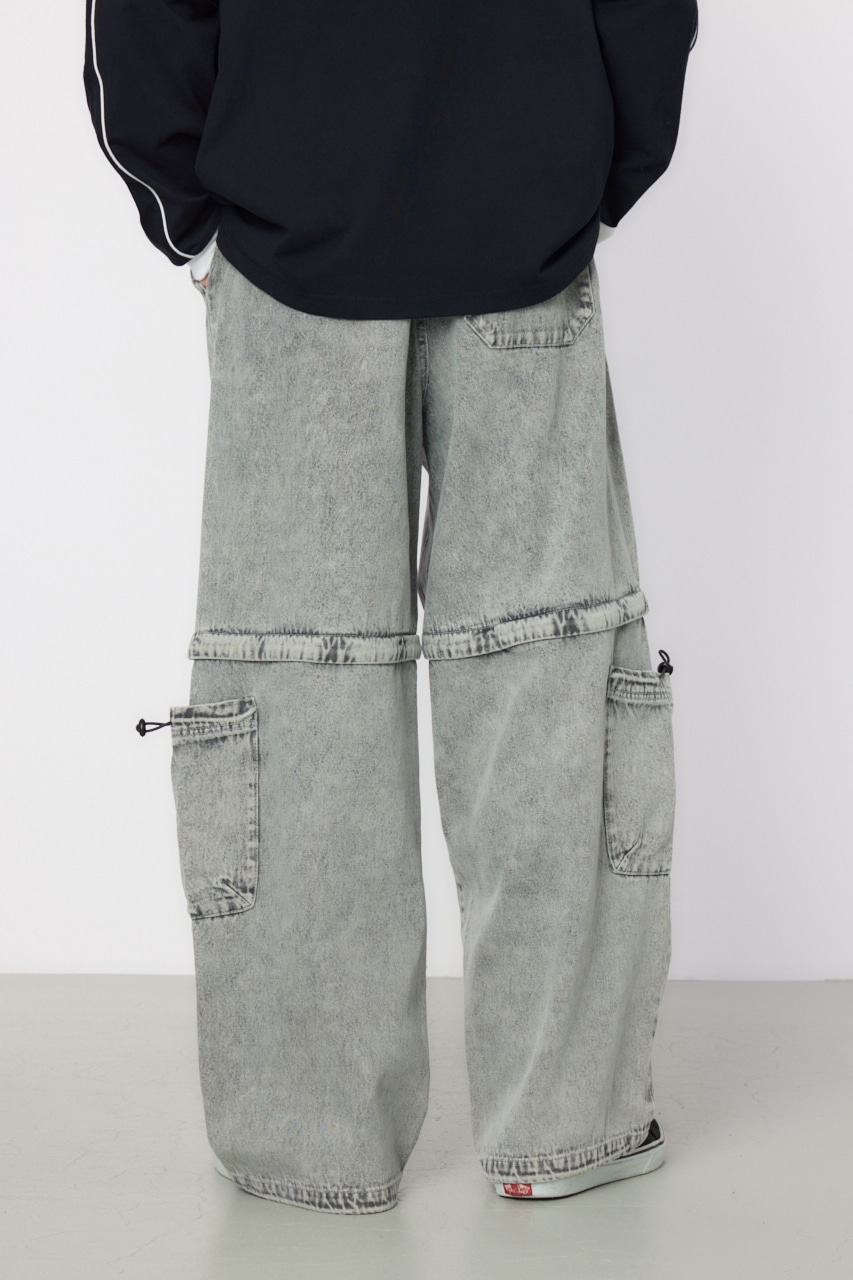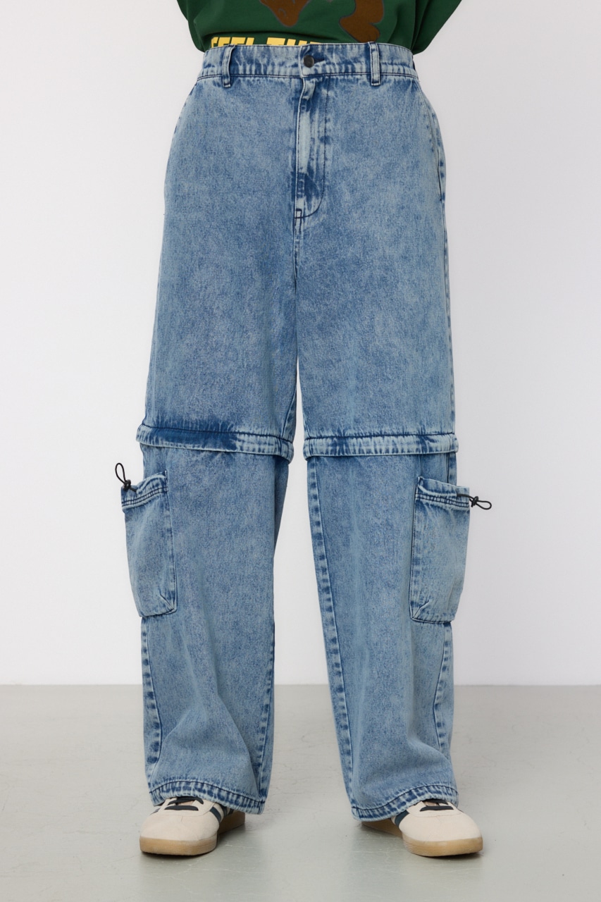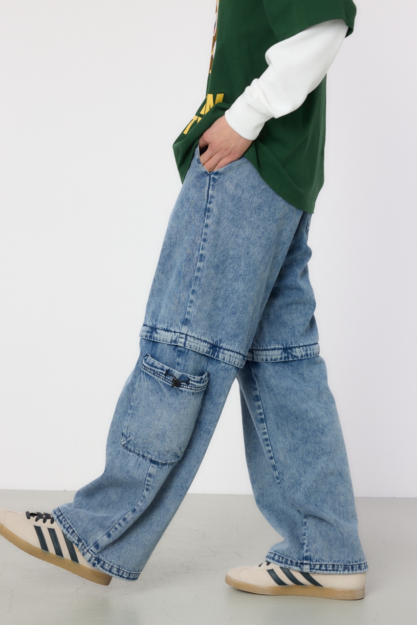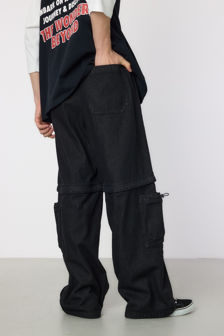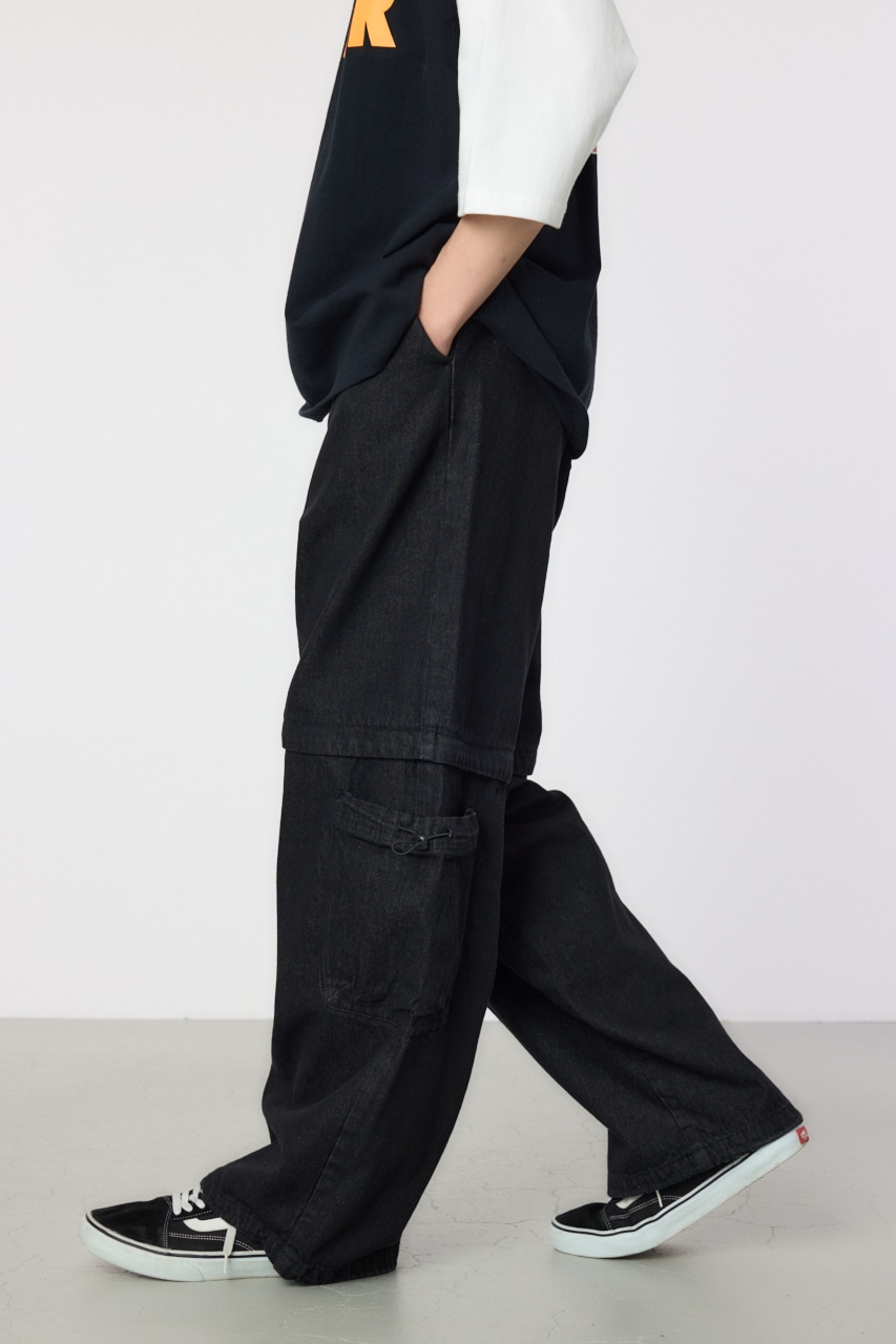 裾がつけ外し可能なコンバーチブルデザインで、ロング丈とハーフ丈どちらもお楽しみいただけるデニムパンツです。