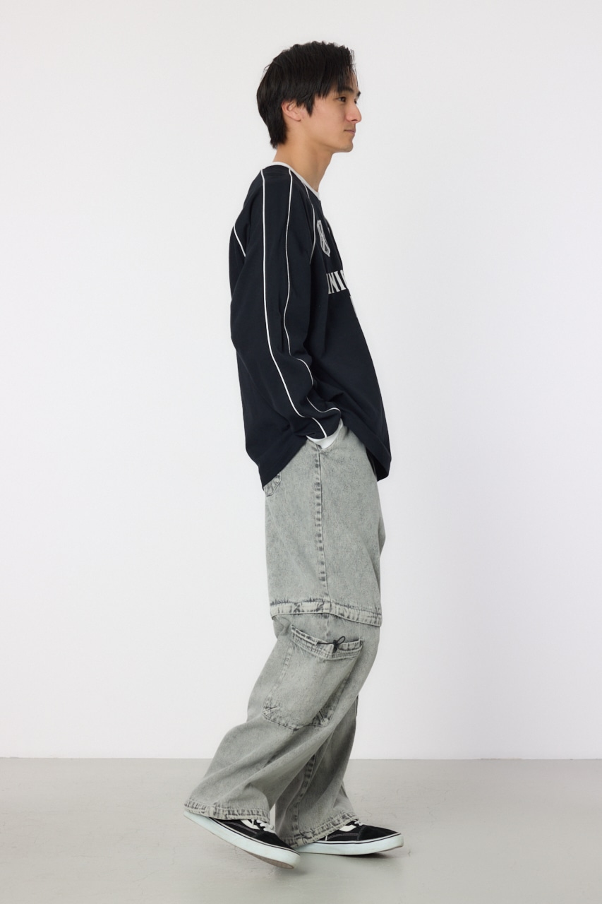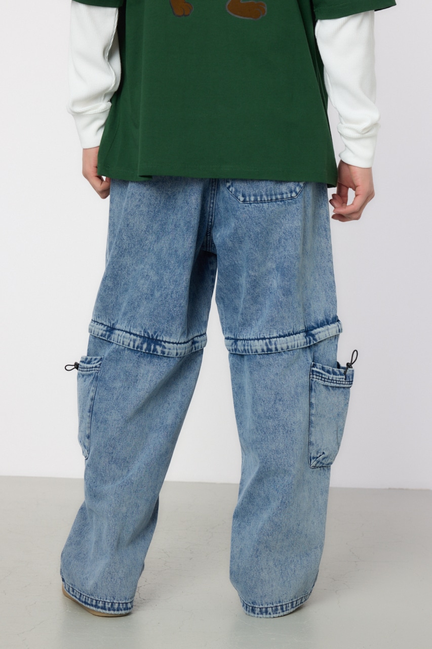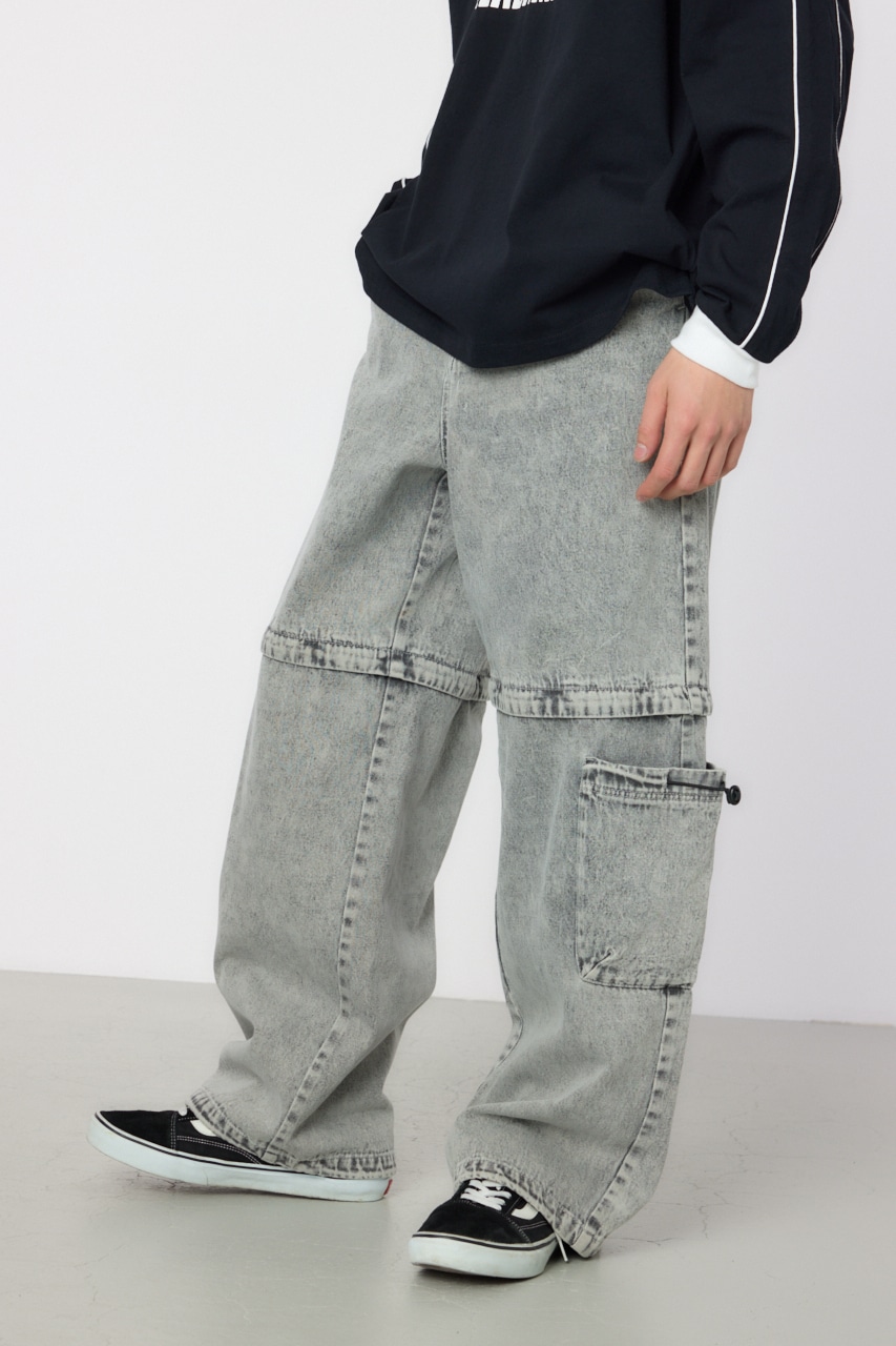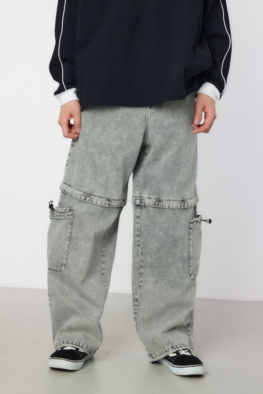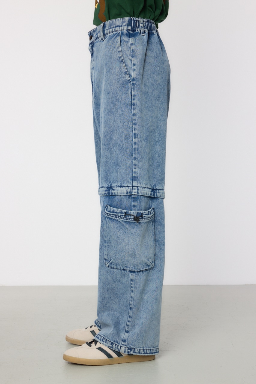 裾がつけ外し可能なコンバーチブルデザインで、ロング丈とハーフ丈どちらもお楽しみいただけるデニムパンツです。
