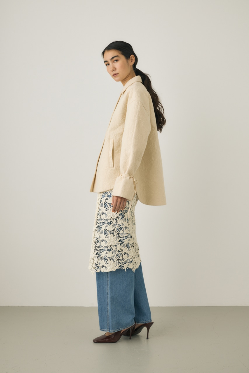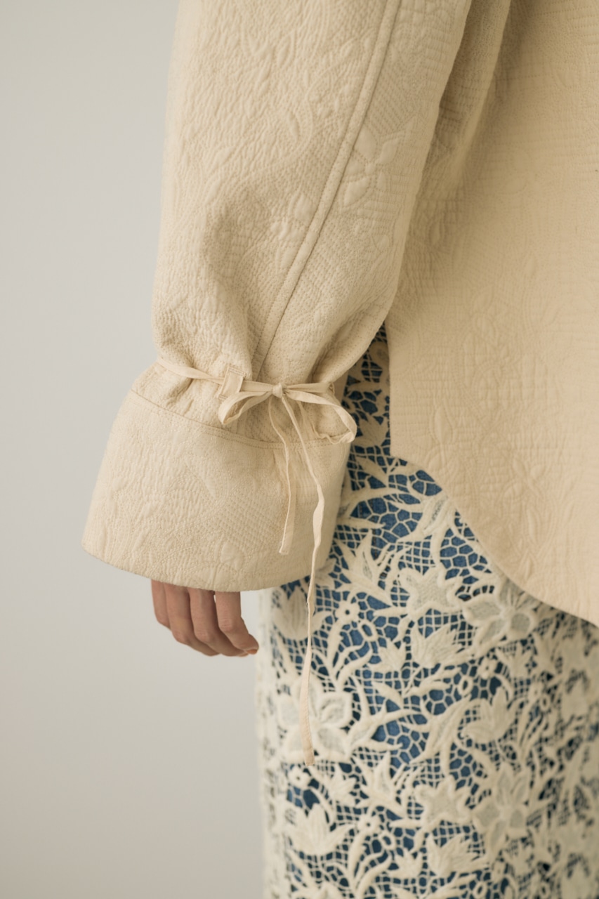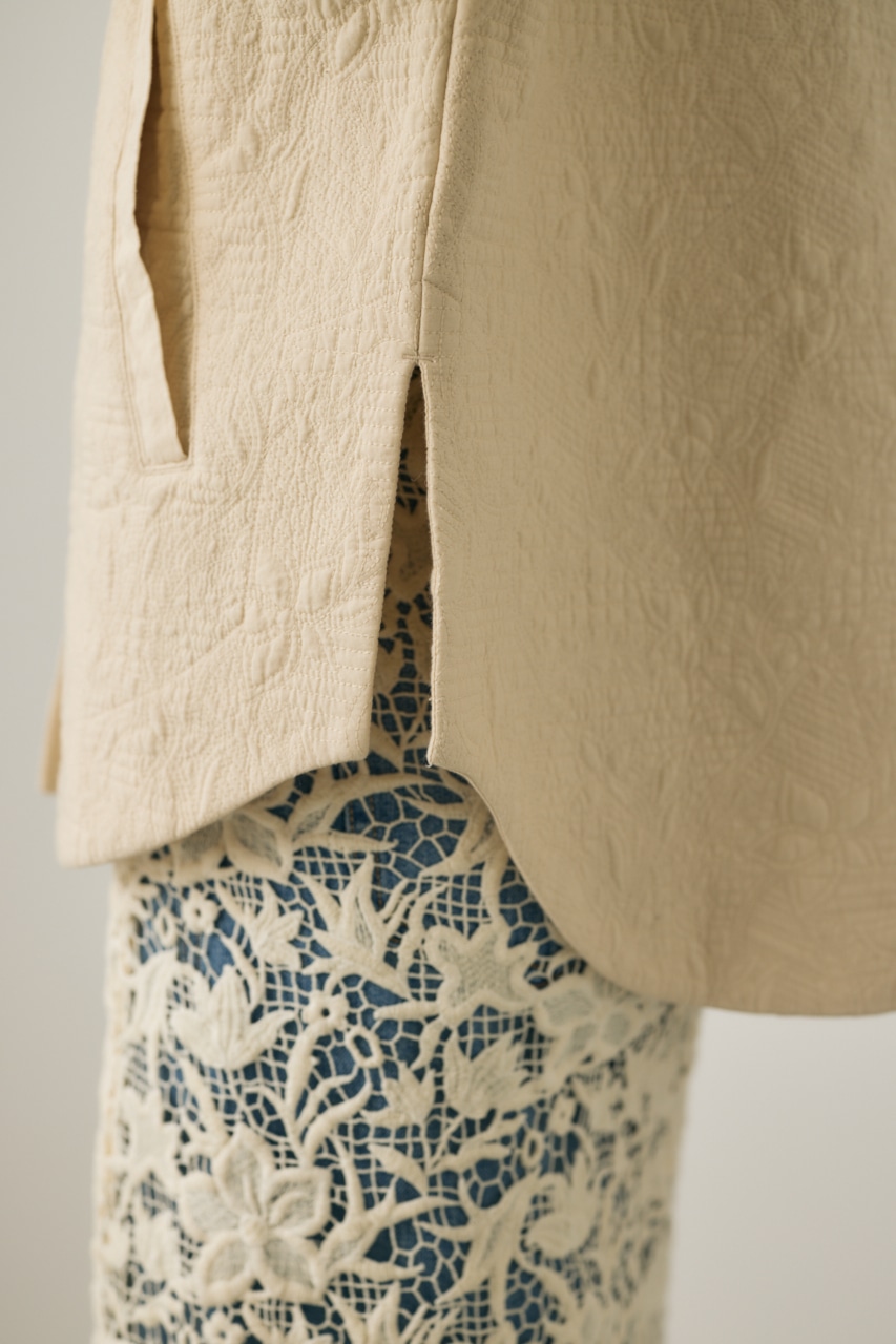 手描きから起こした総柄キルティング刺繍が贅沢なオーバーサイズシャツジャケット。
