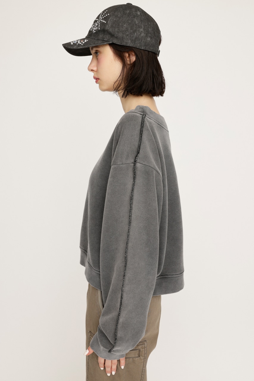 ■POINT:ルーズに着用できるワンショルダースウェットトップス。カジュアルなアイテムですがワンショルダーで着用する事で女性らしい抜け感をプラスしてくれます。