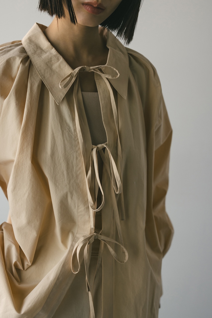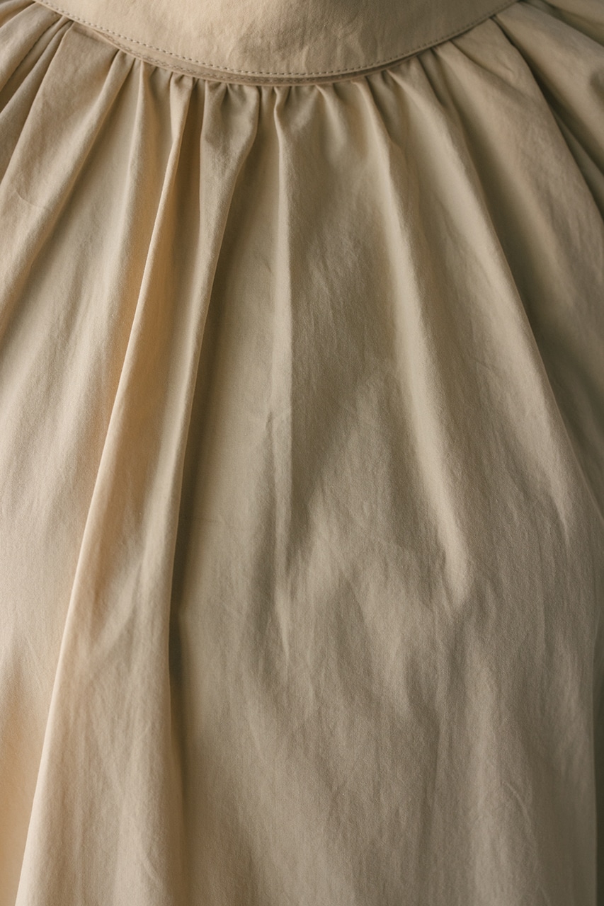 適度なハリ感が身体のラインをカバーしてくれる一枚。