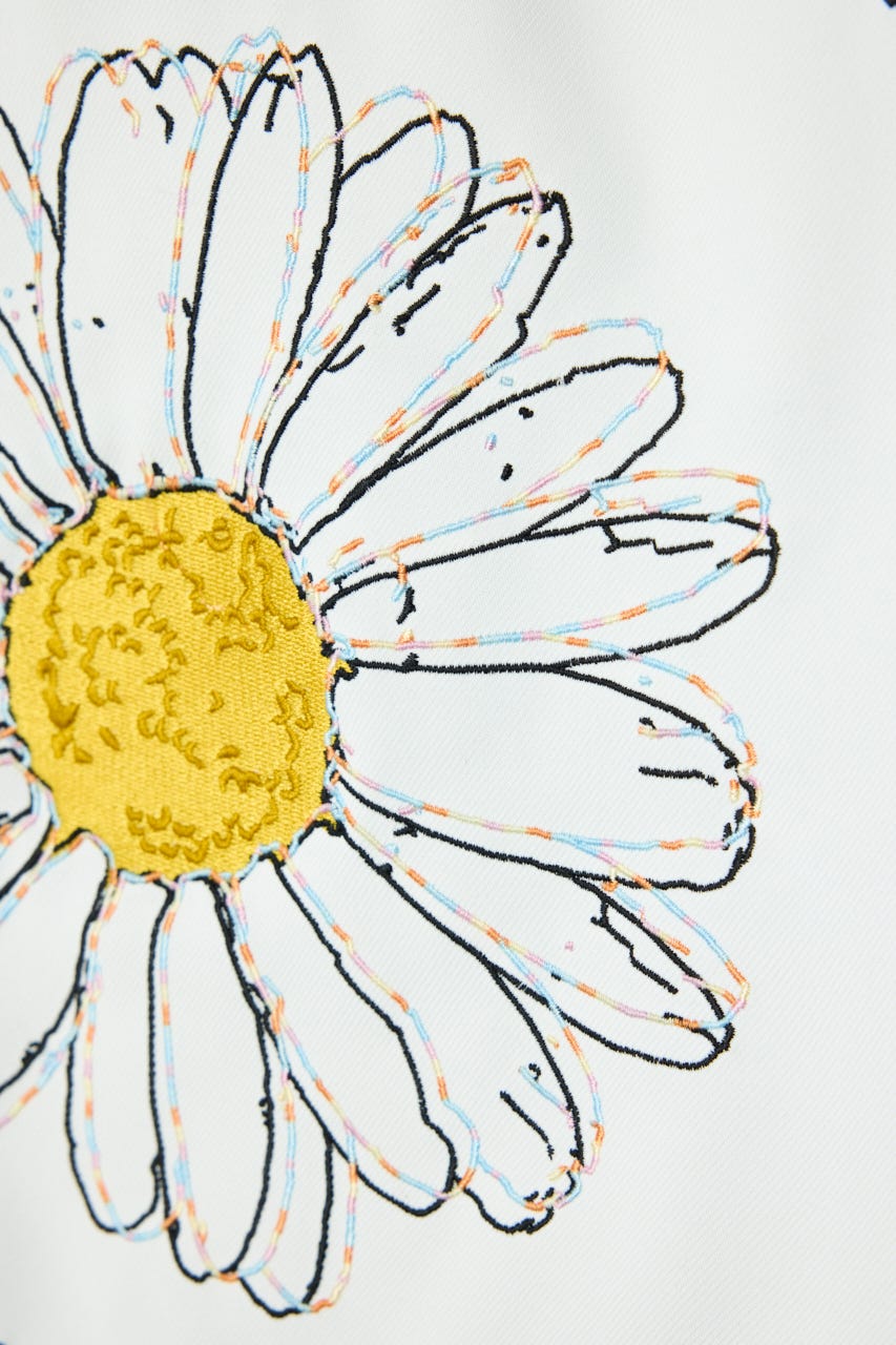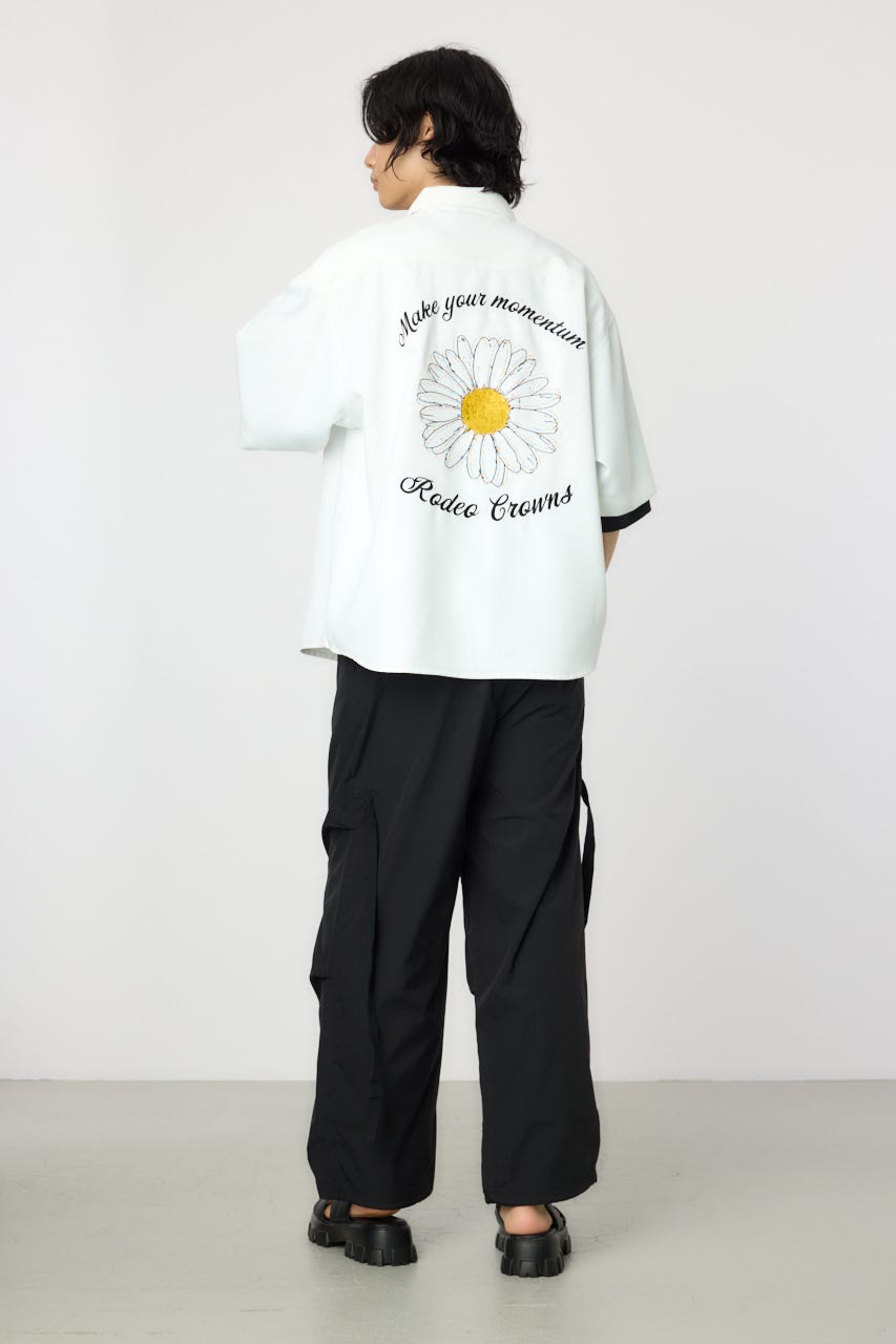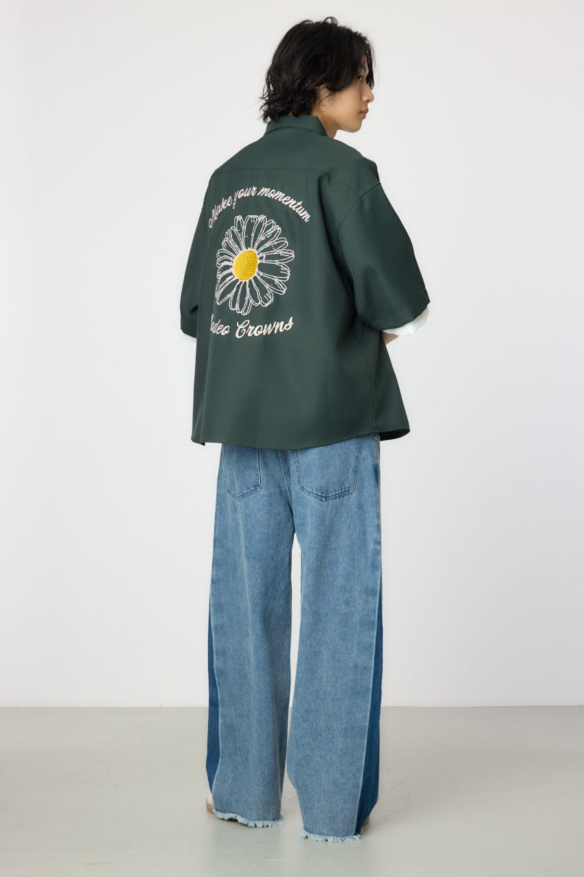 バックに入ったインパクトのあるデイジー柄刺繍と、袖口からちらりとのぞく配色の2枚袖が特徴的な、RODEOならではの遊び心があるアイテムです。