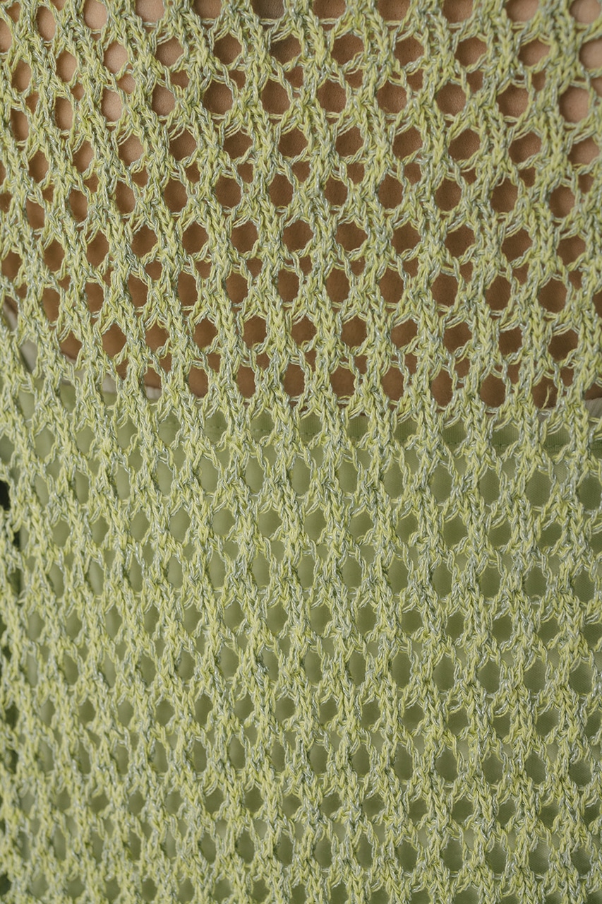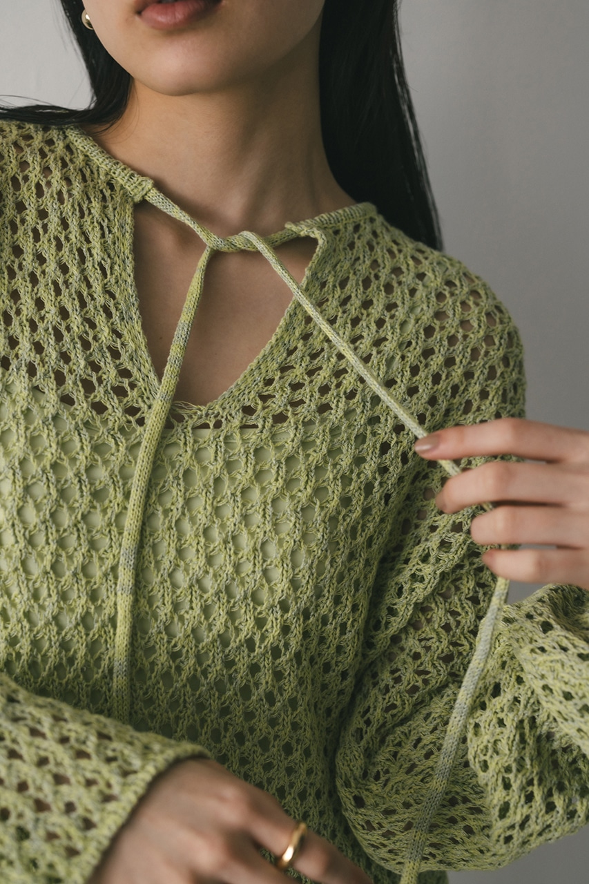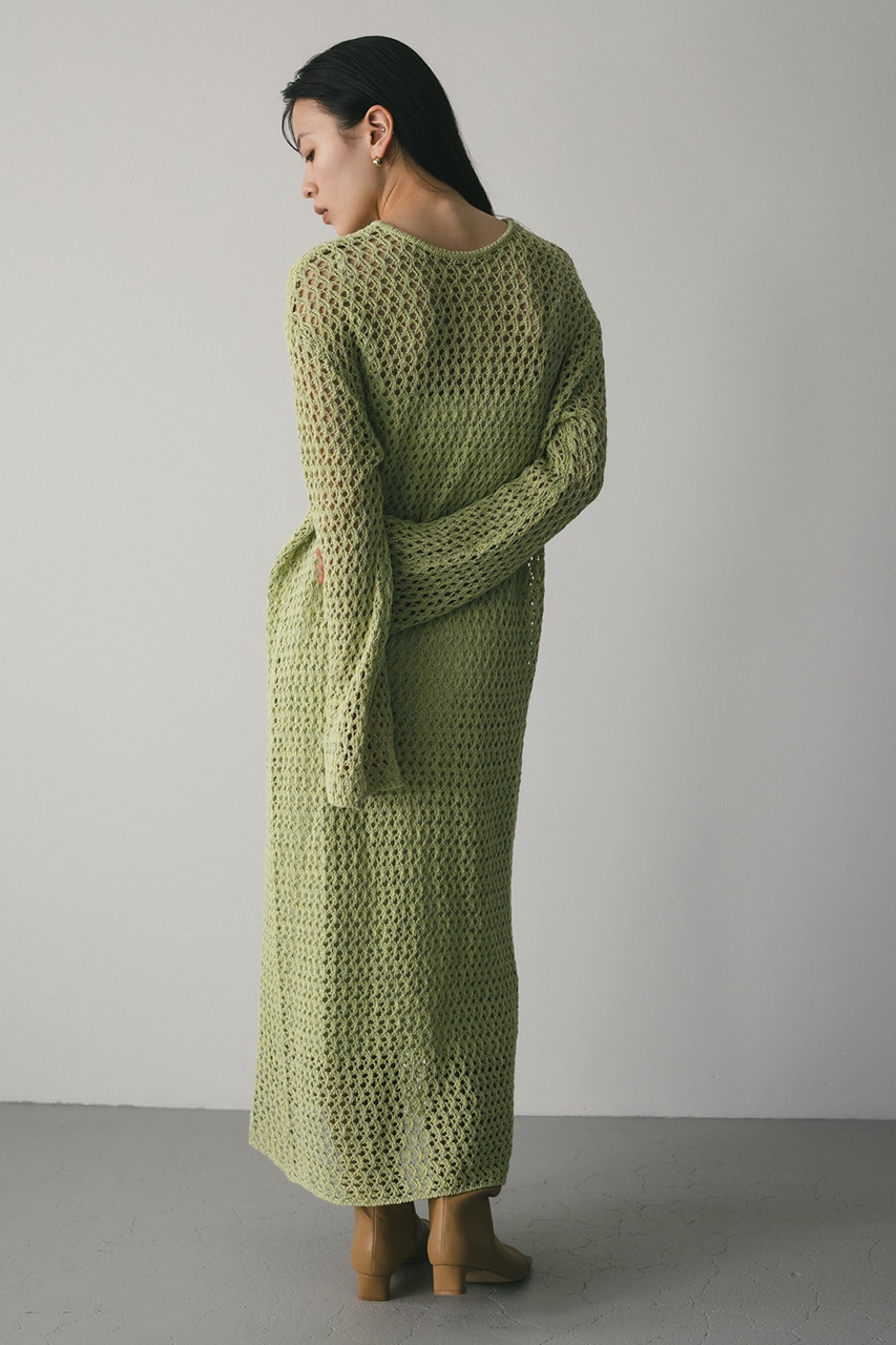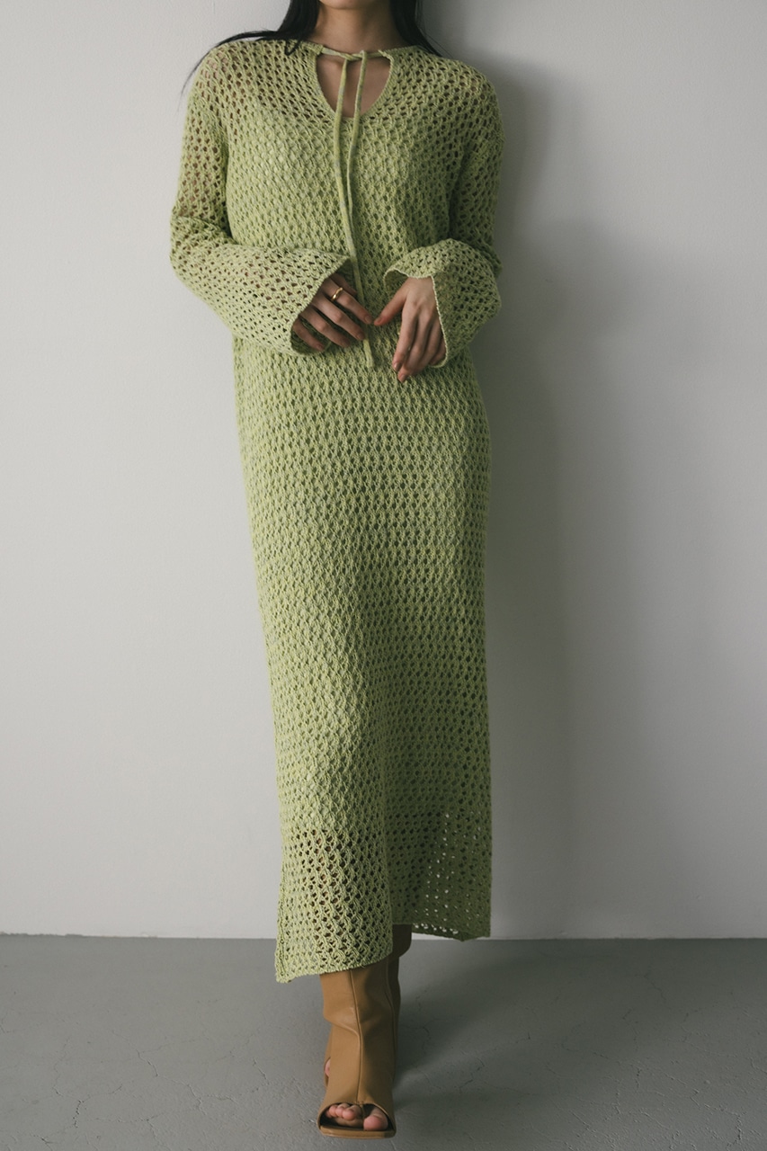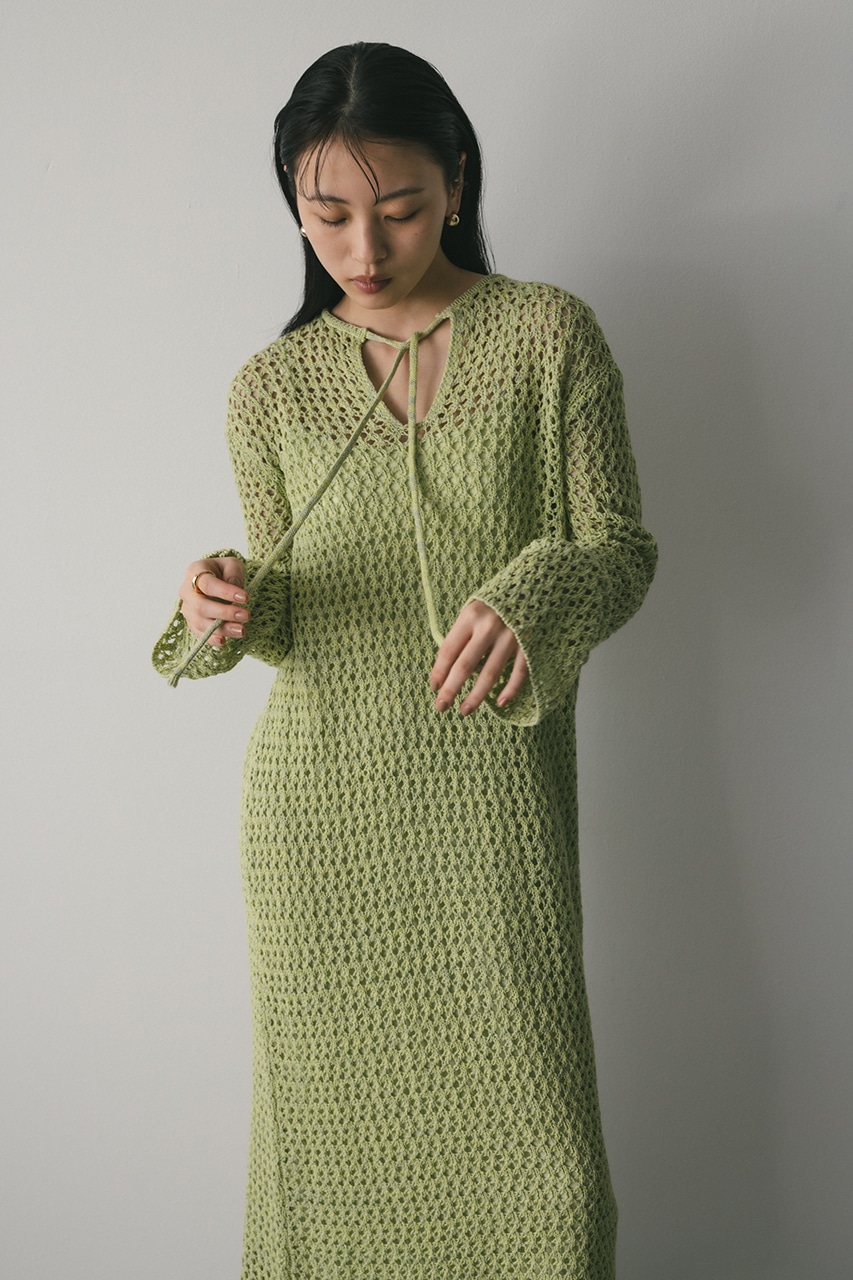 2素材、3色の糸を引きそろえたミックス感が華やかなクロシェニットワンピース。