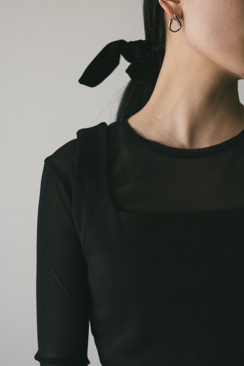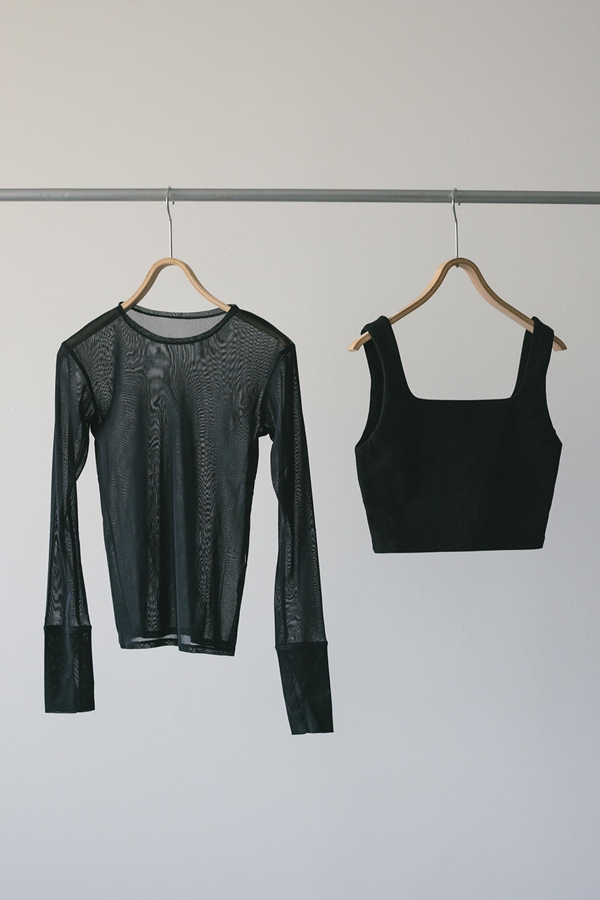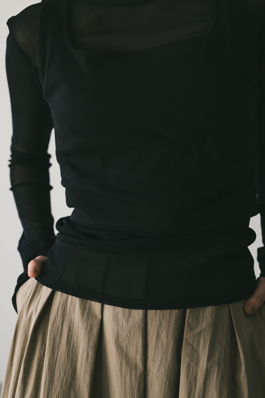 柔らかく繊細なシアーチュールトップと厚みのあるしっかりしたカットソー素材のビスチェがセットになったアイテム。