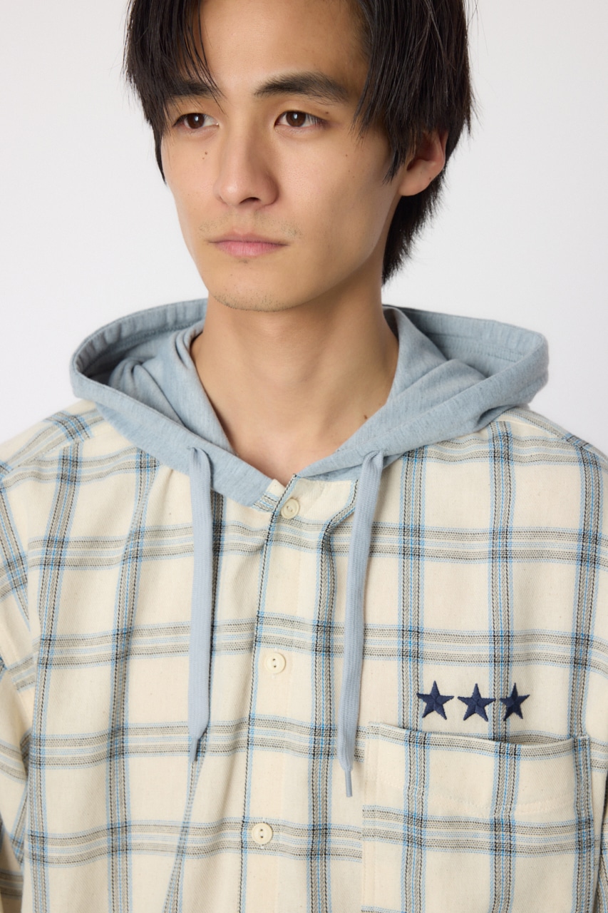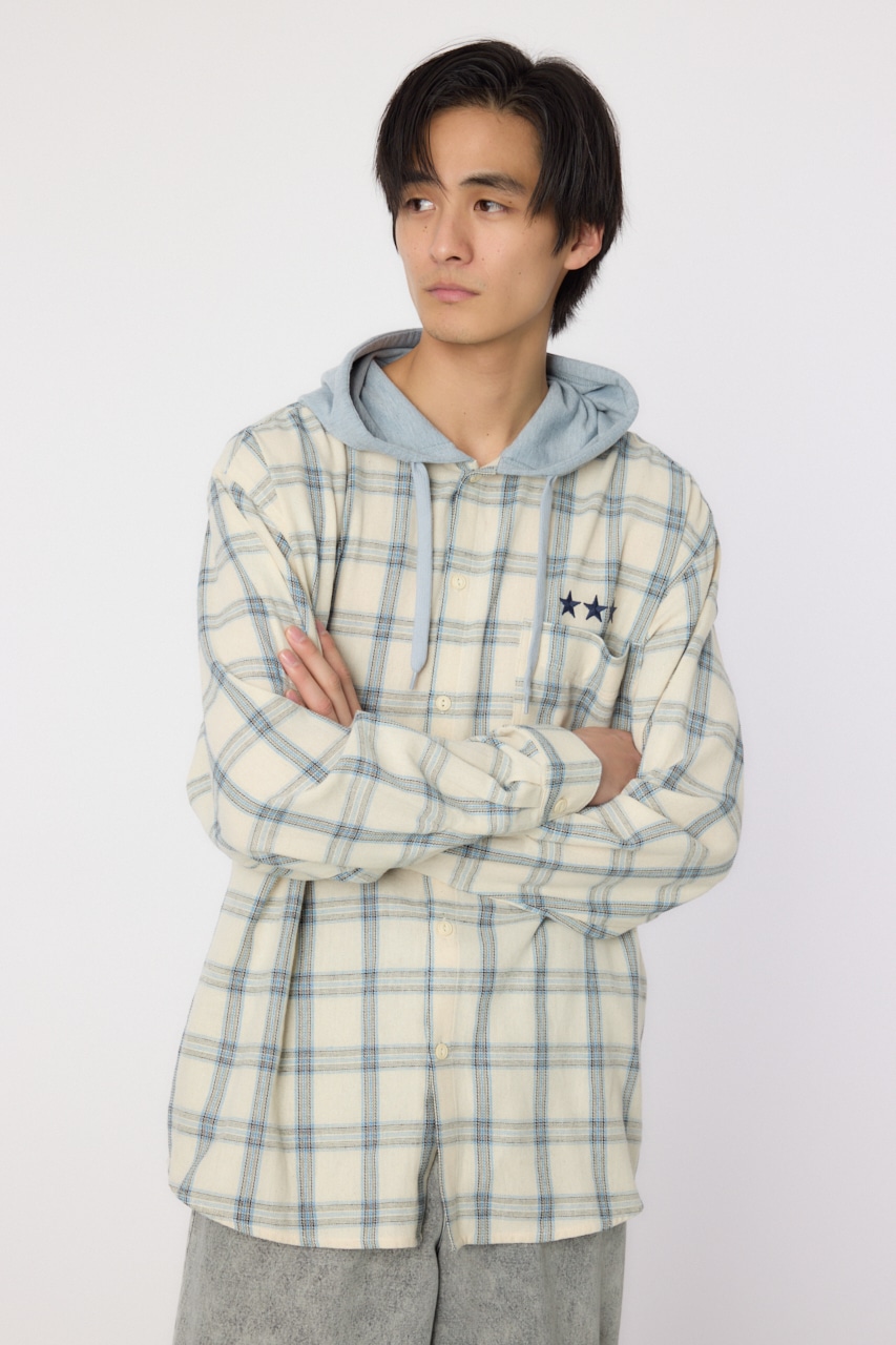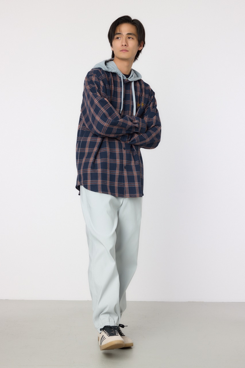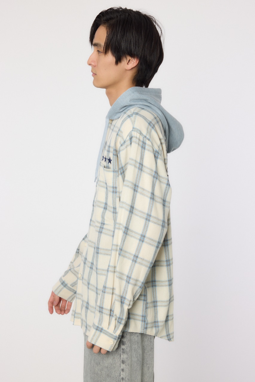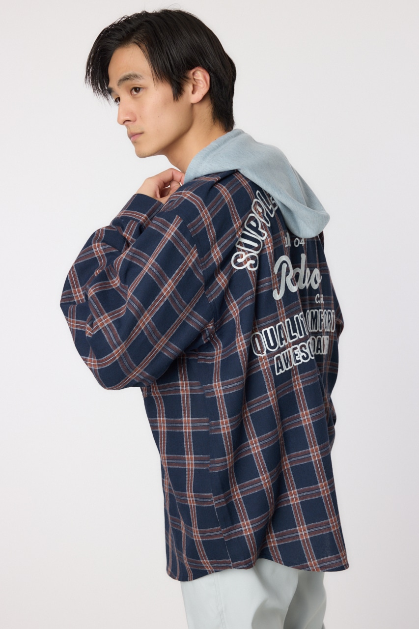 異素材フード付きで、レイヤード風の着こなしが可能です。