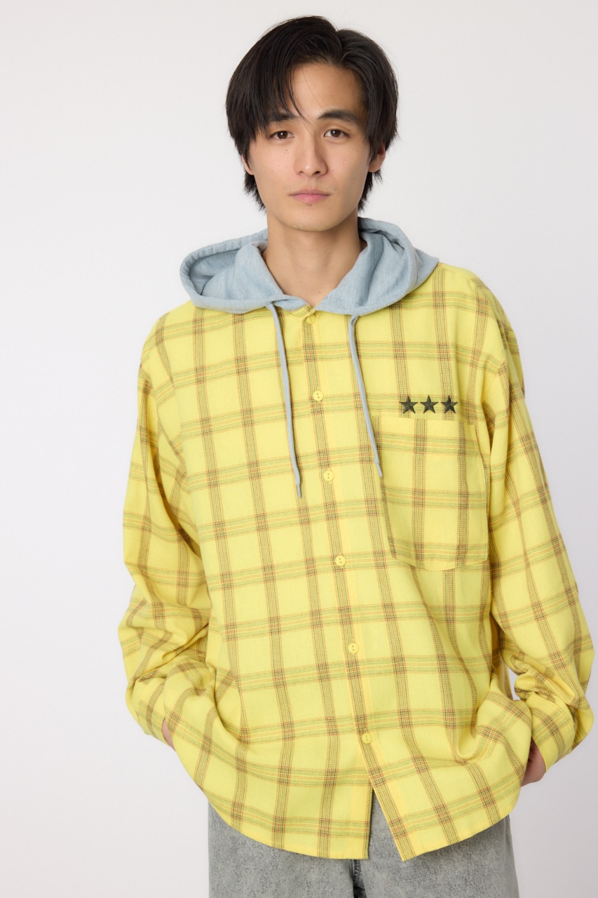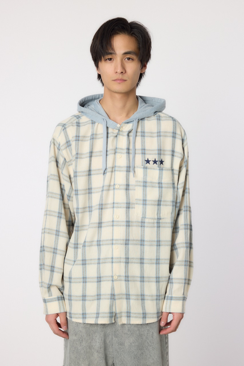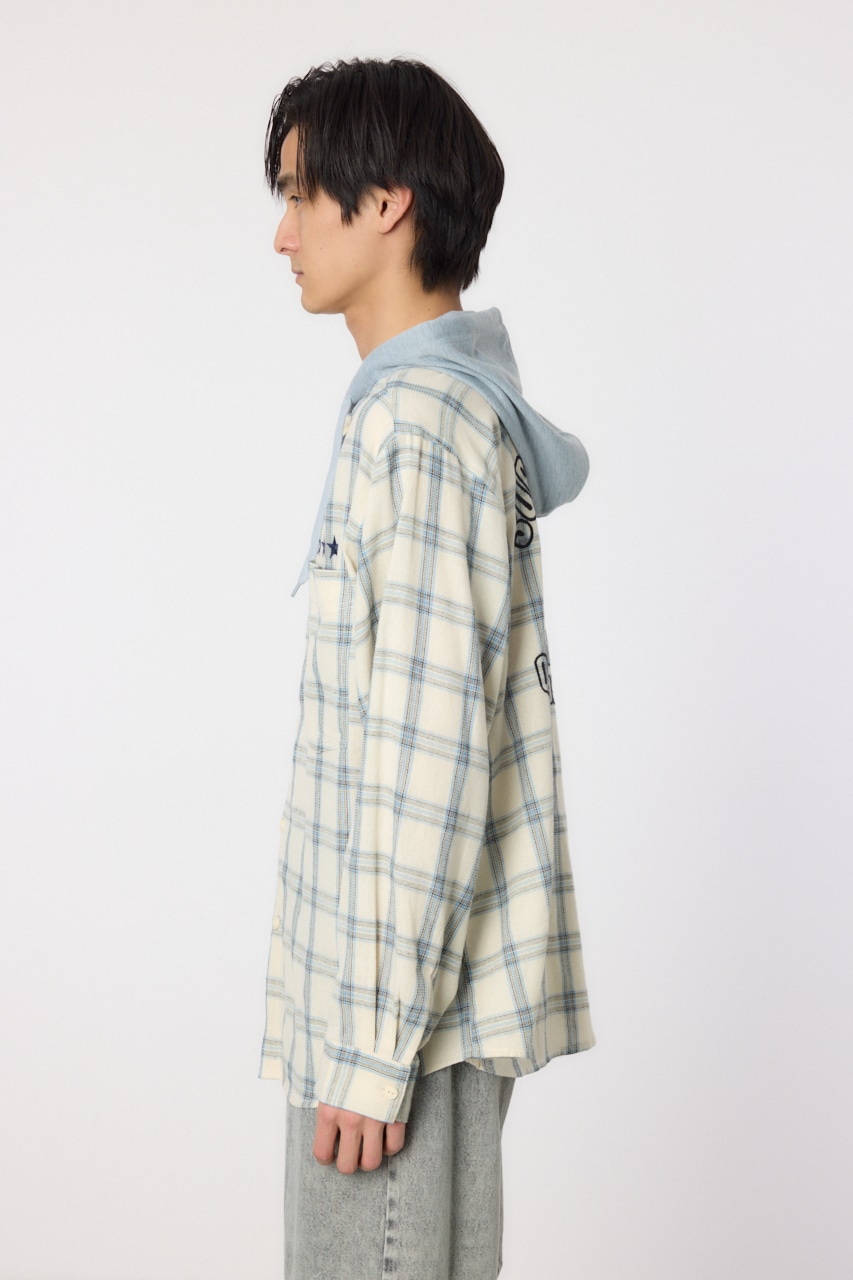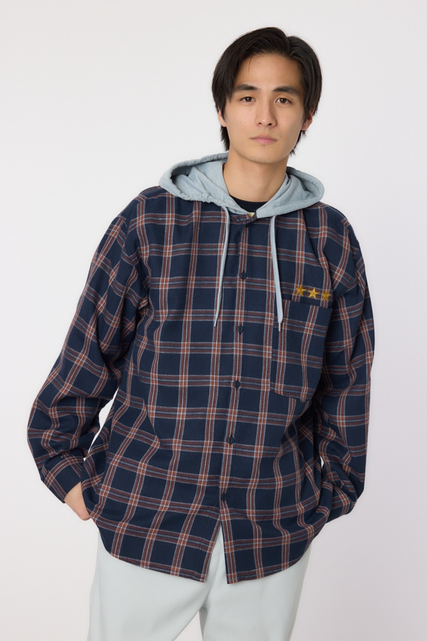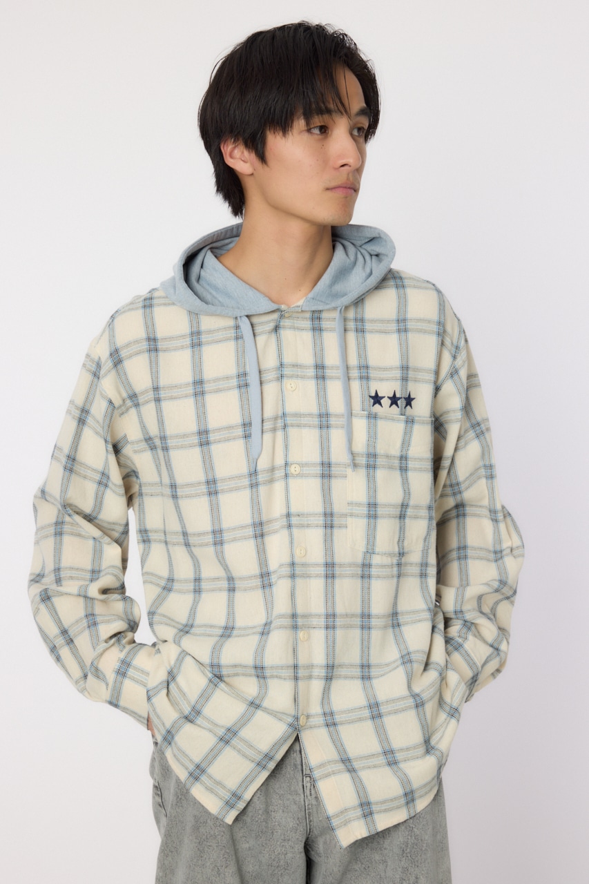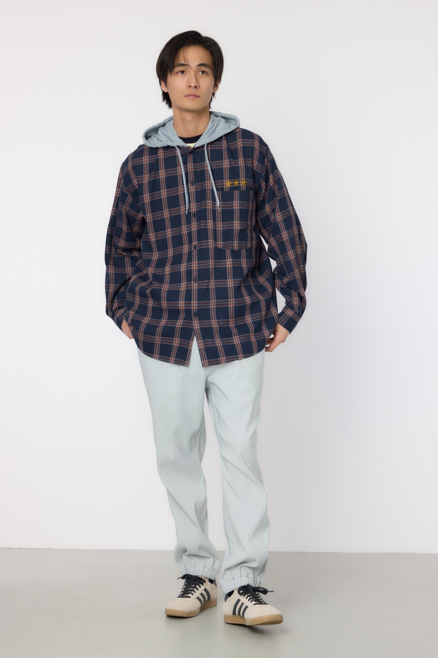 異素材フード付きで、レイヤード風の着こなしが可能です。