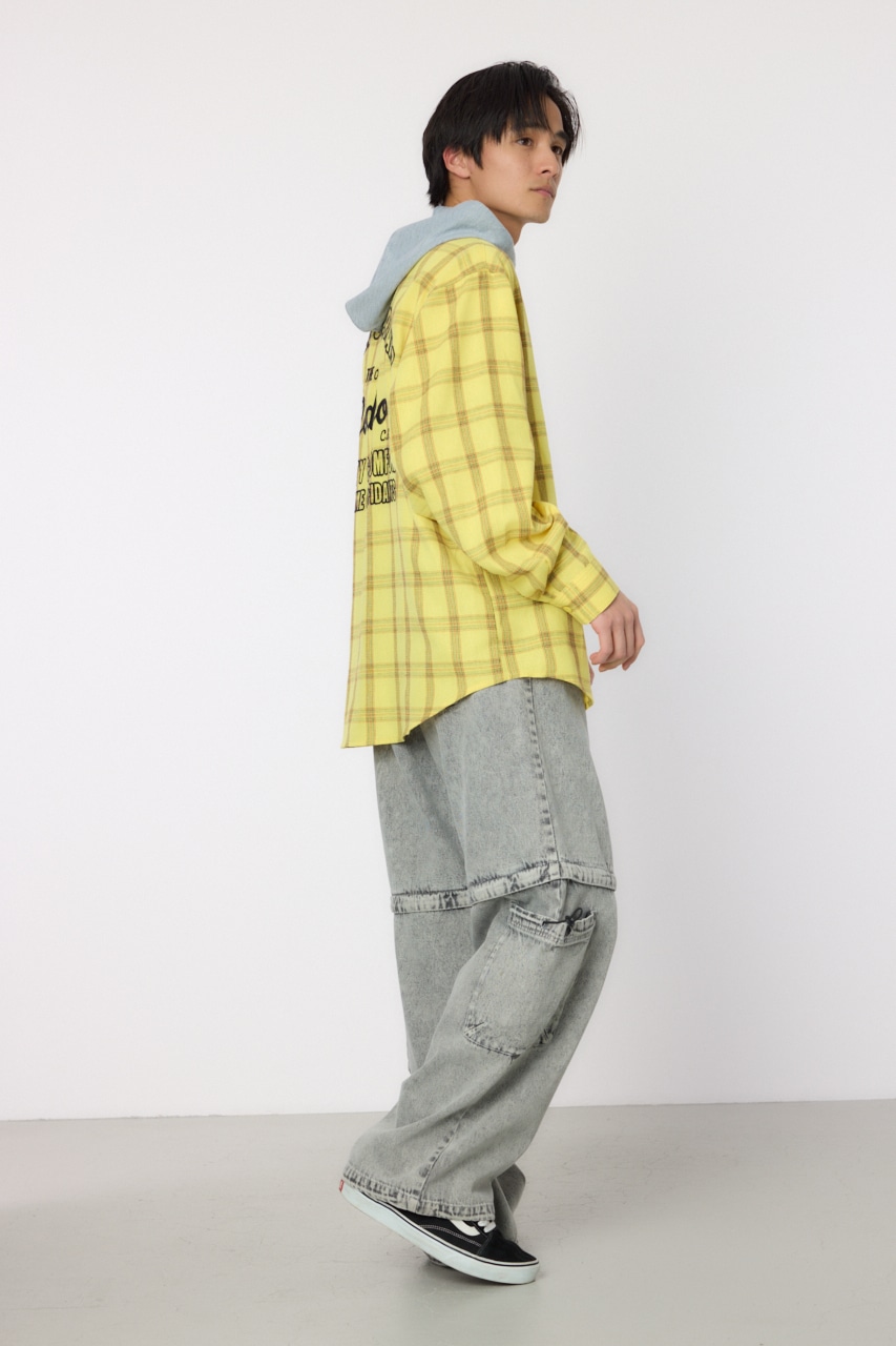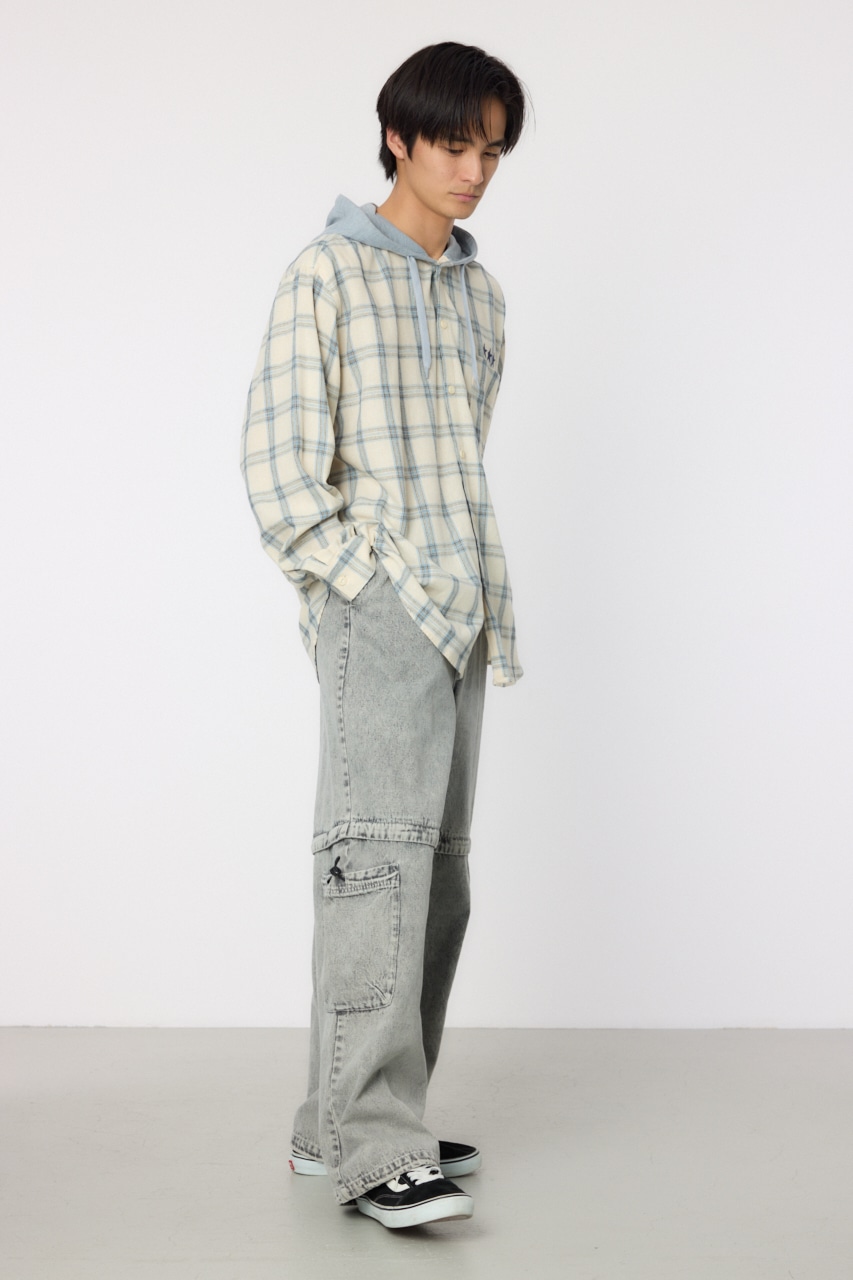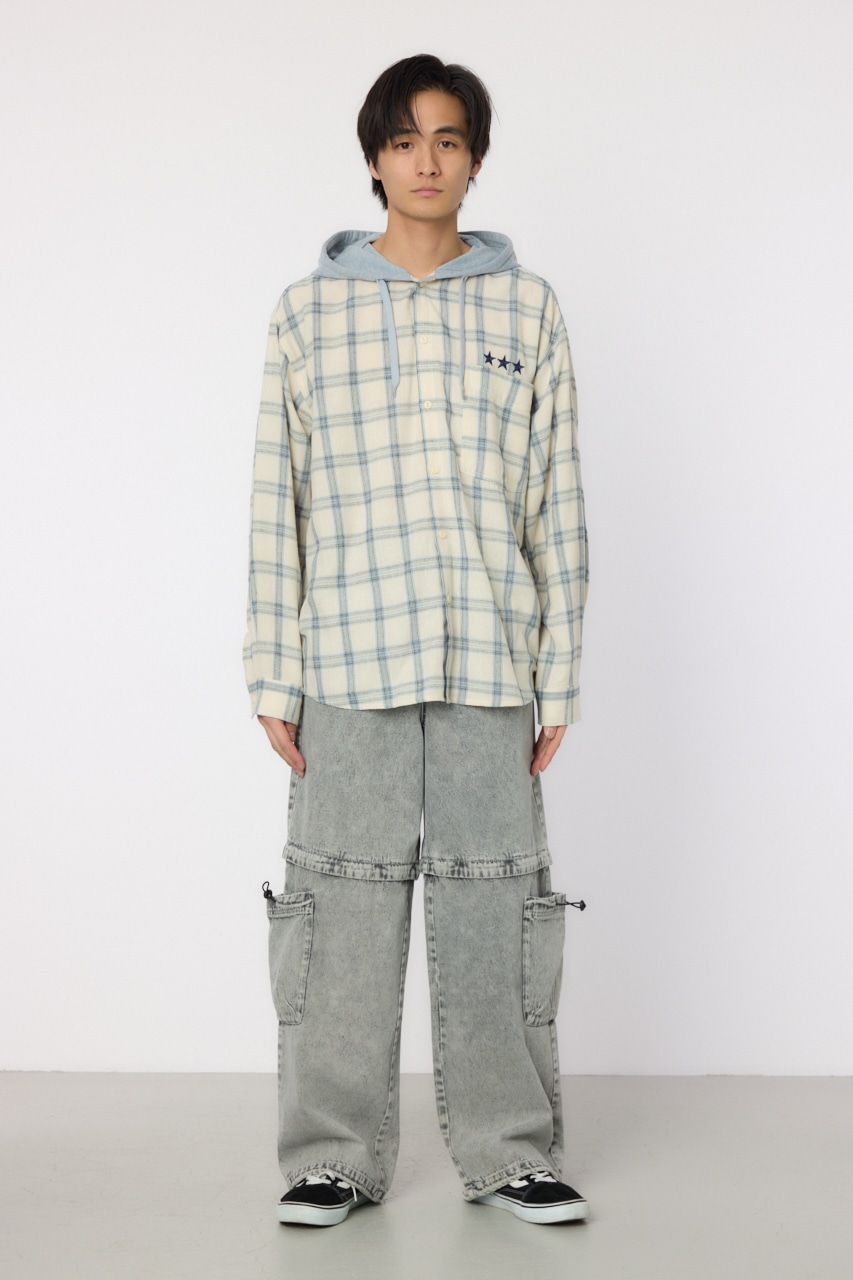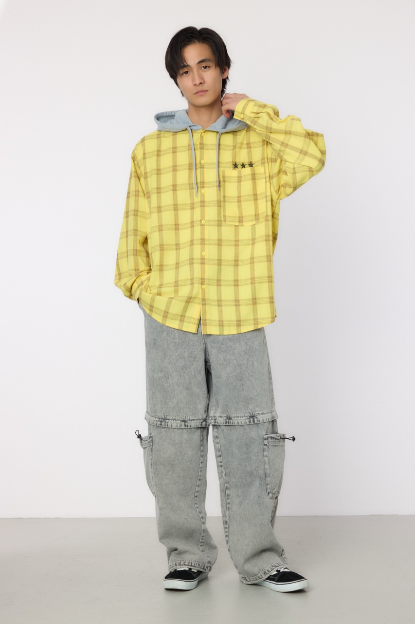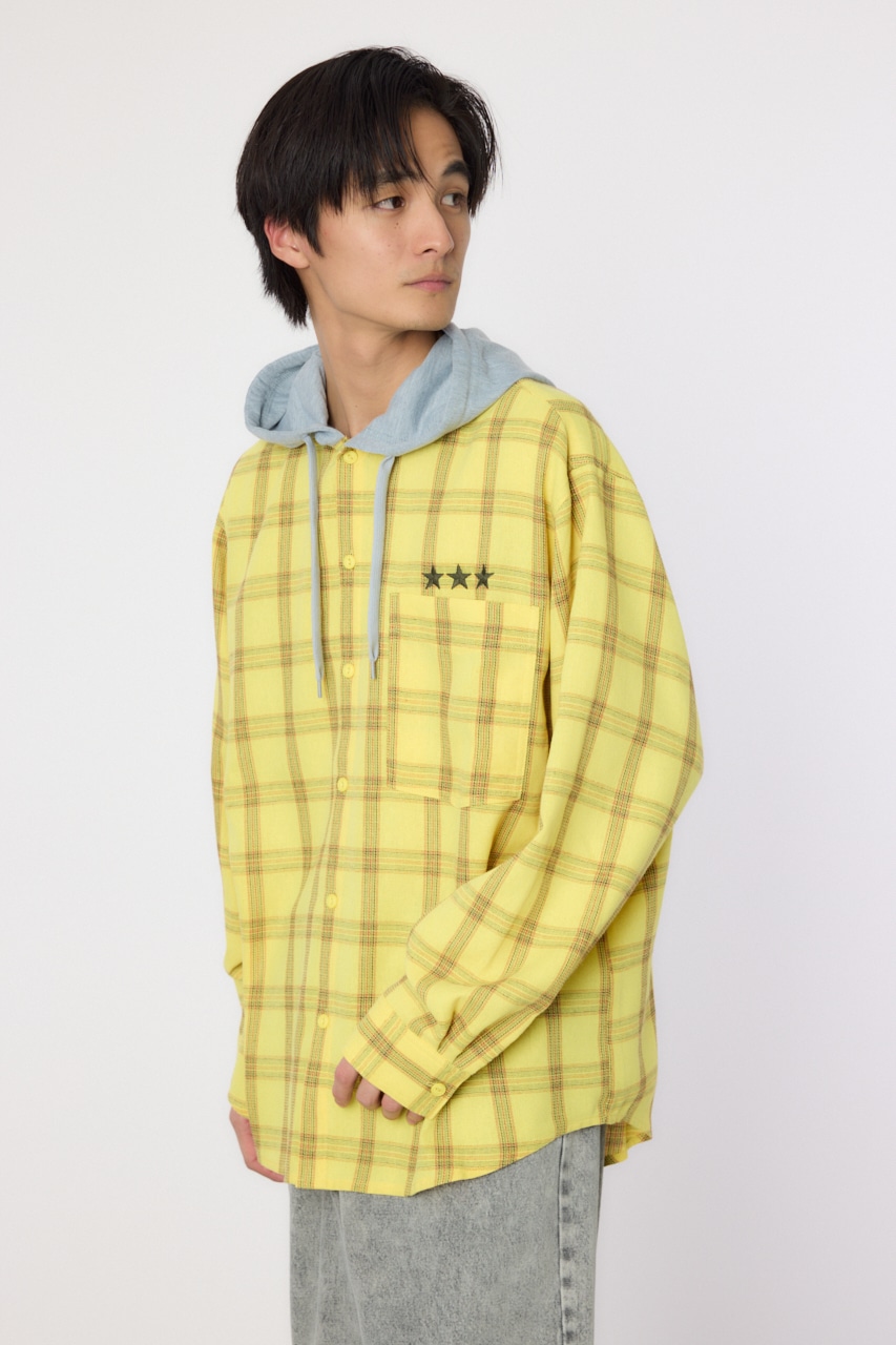 異素材フード付きで、レイヤード風の着こなしが可能です。