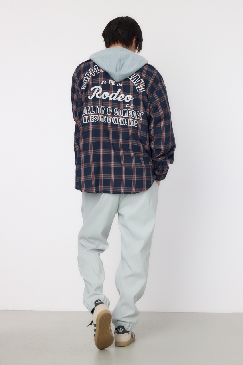 RODEO CROWNSらしいバックに入った大胆なロゴ刺繍が特徴的で、初夏まで活躍できるサラッとした着心地のカジュアルアイテムです。