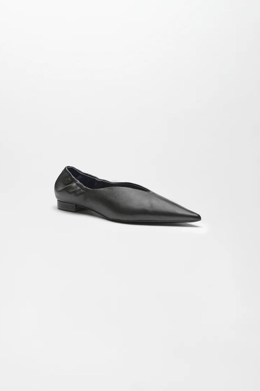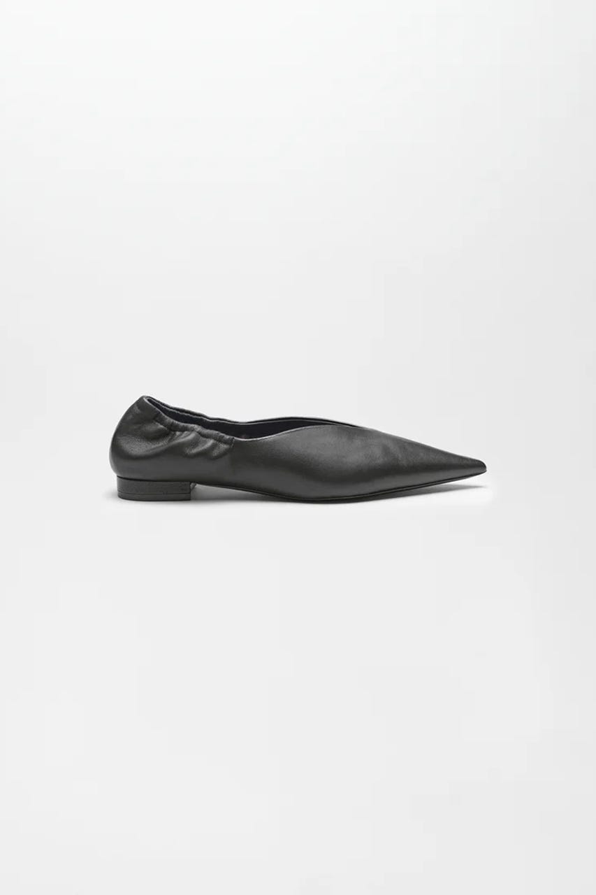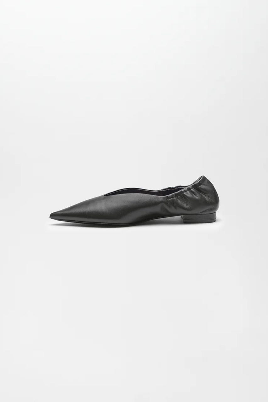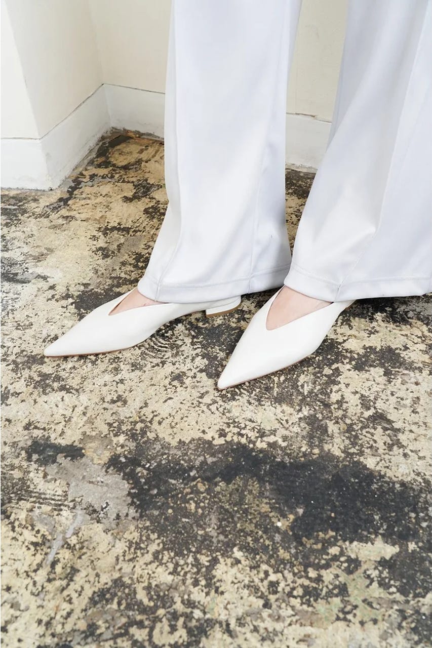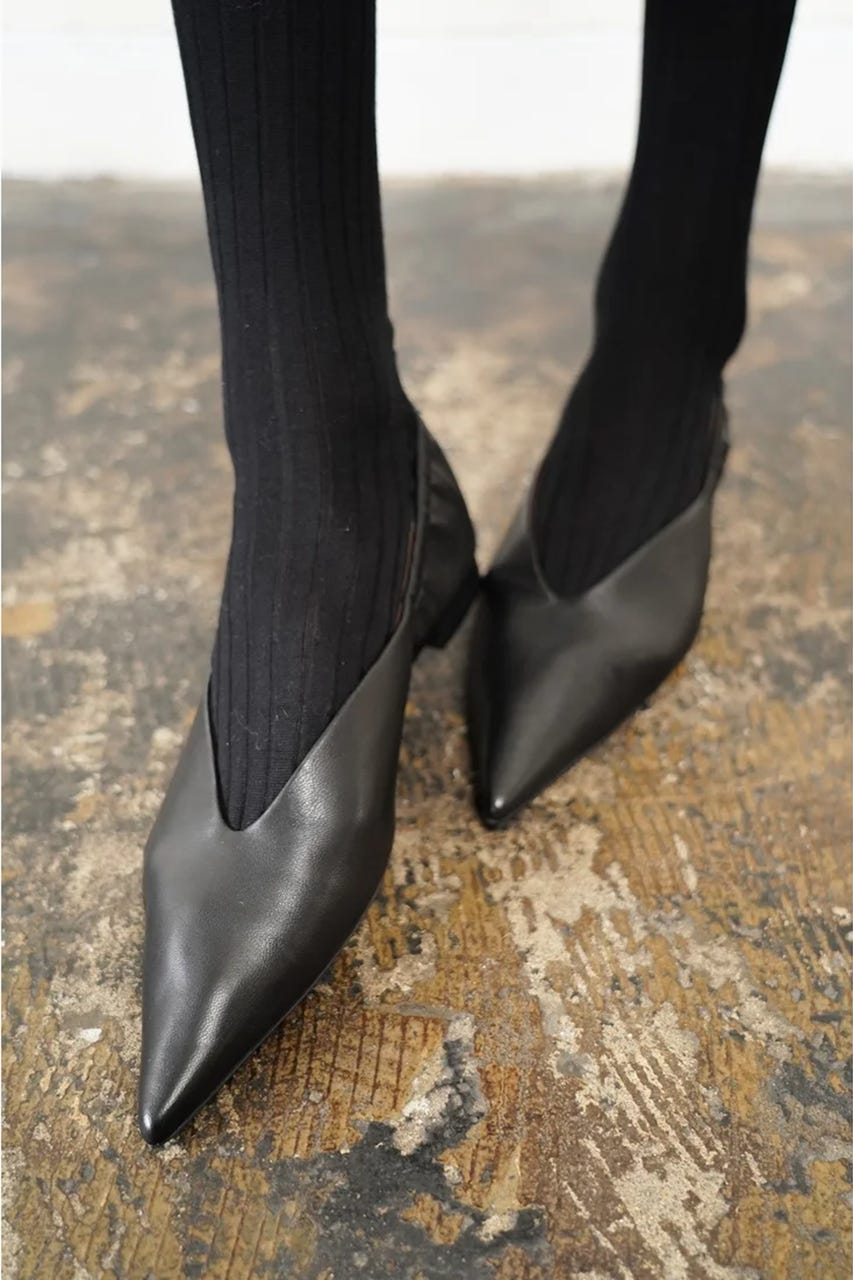 シャープなシルエットのポインテッドトゥパンプス。