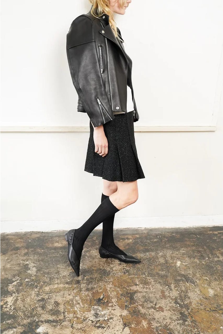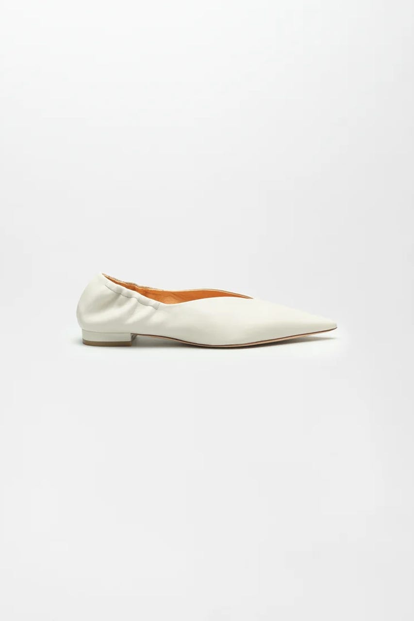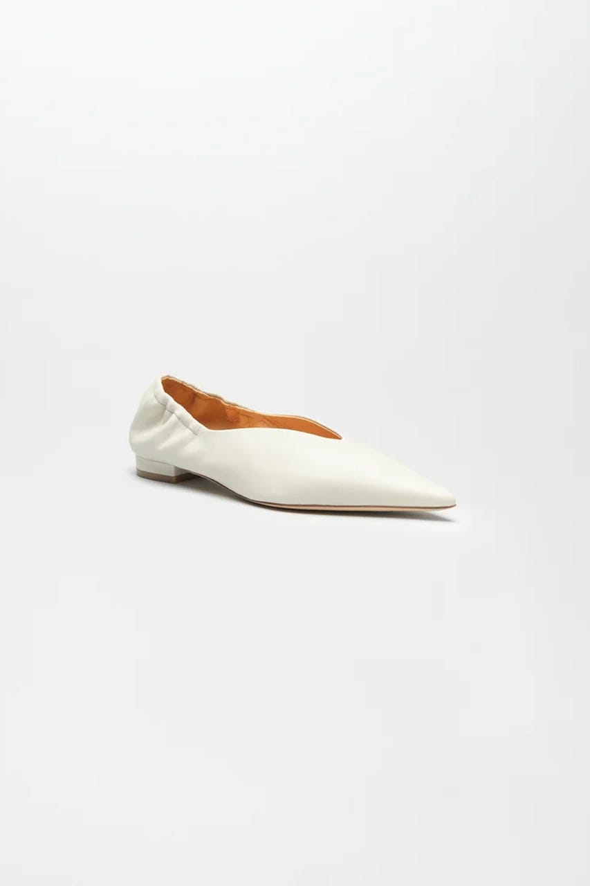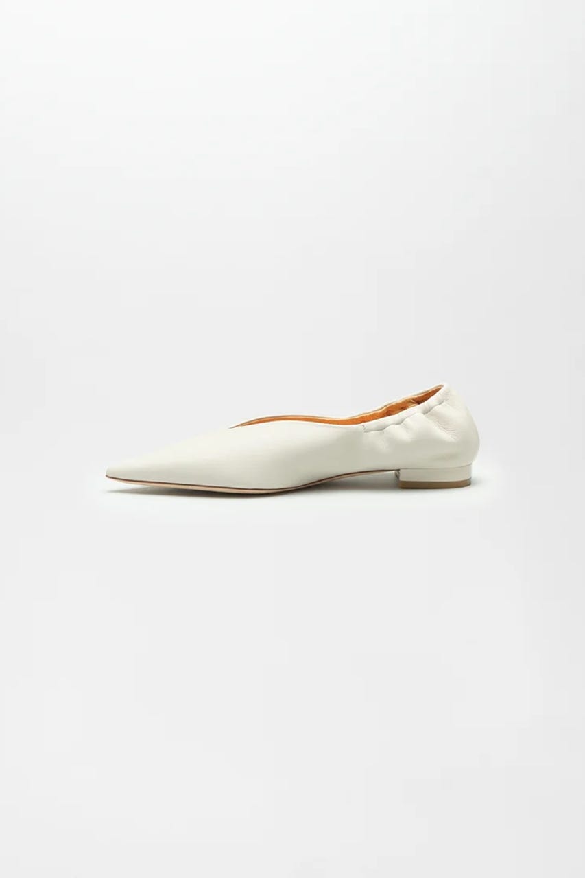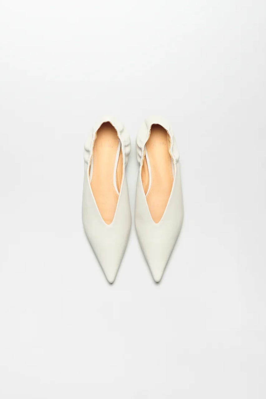 シャープなシルエットのポインテッドトゥパンプス。
