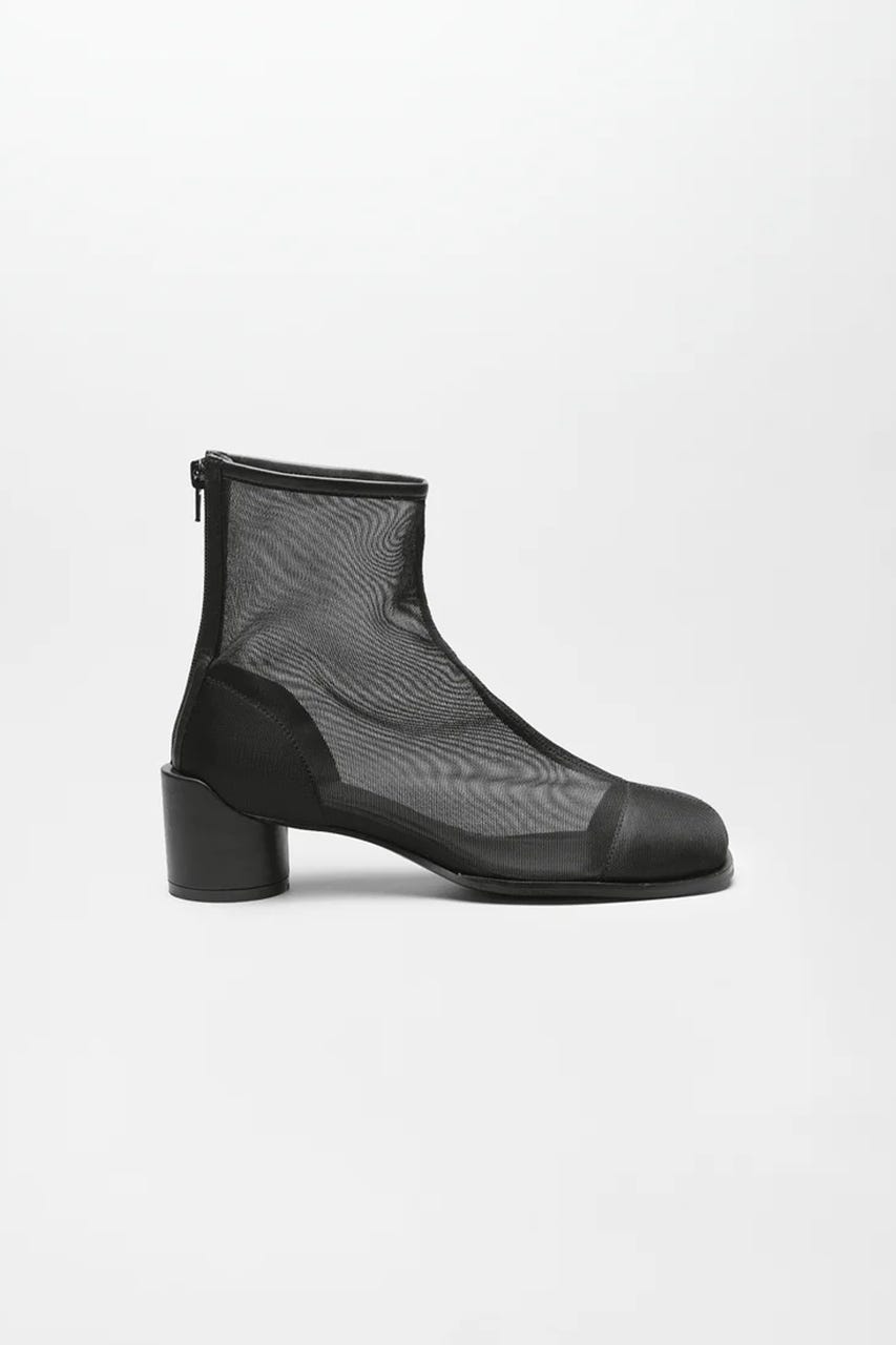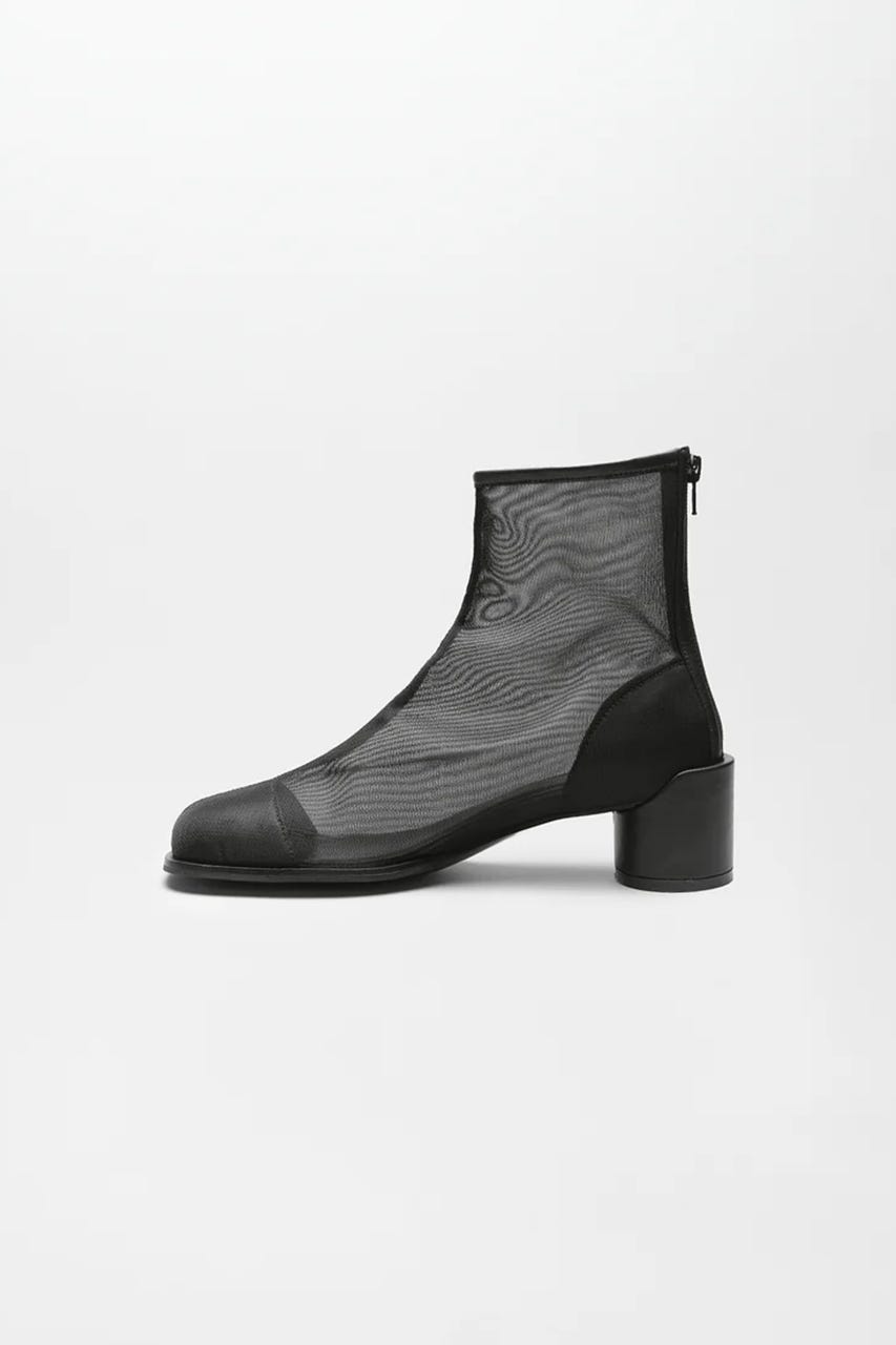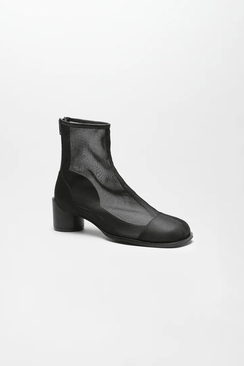 春のコーディネートに抜け感をもたらすチュールブーツ。