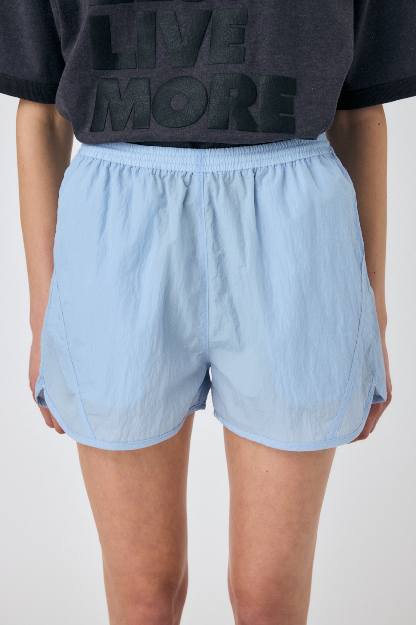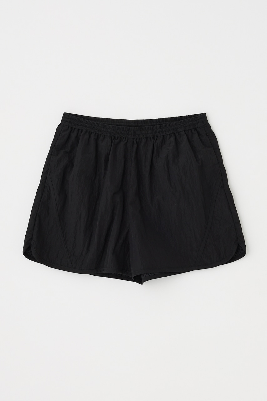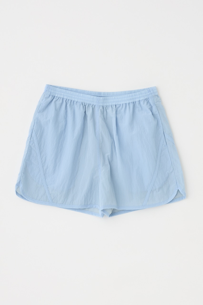 軽やかなナイロン素材と、肌あたりの良いメッシュ素材を裏地に使用し、ウエストはゴム仕様に。