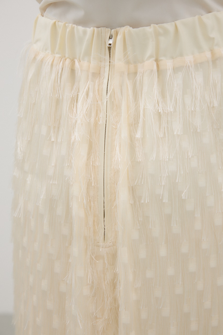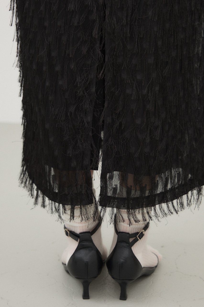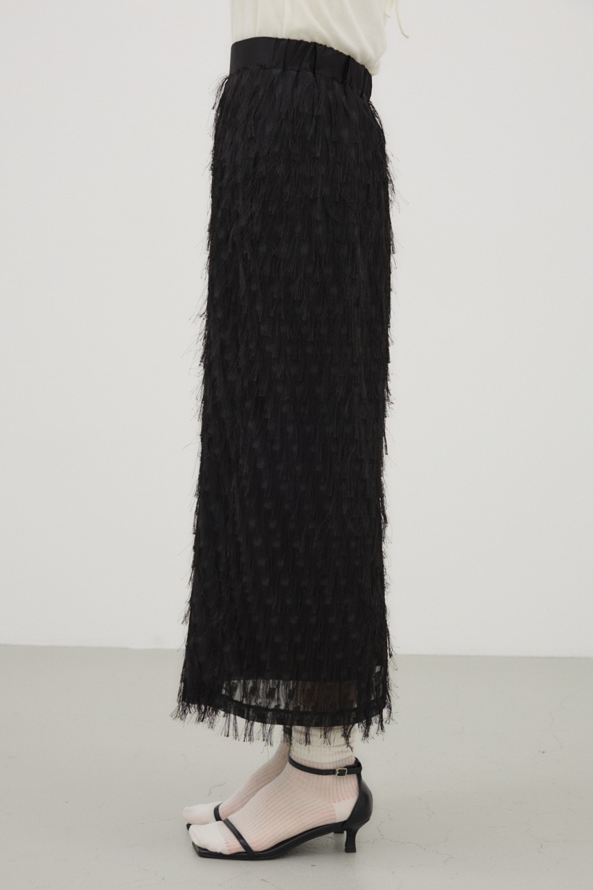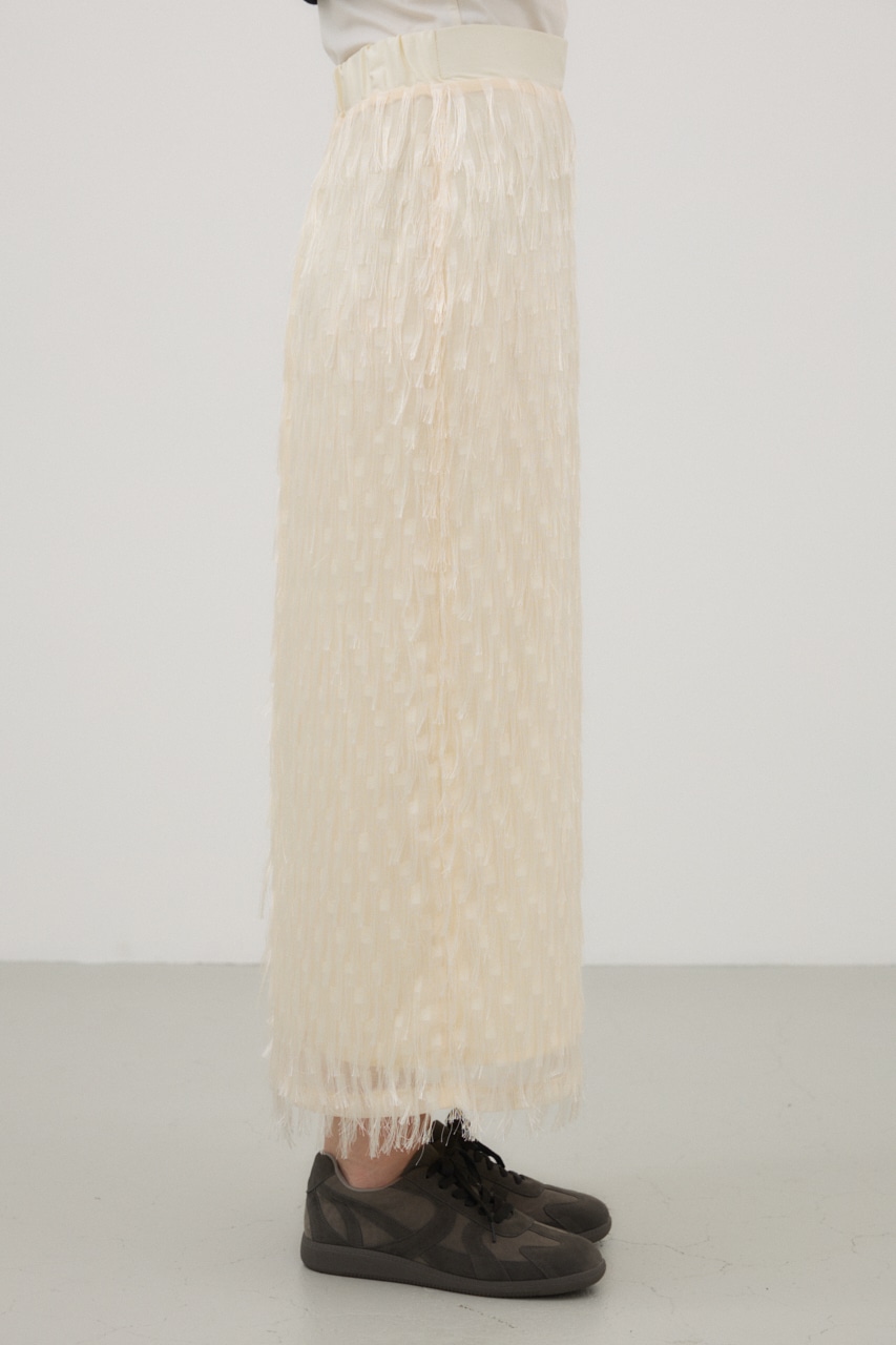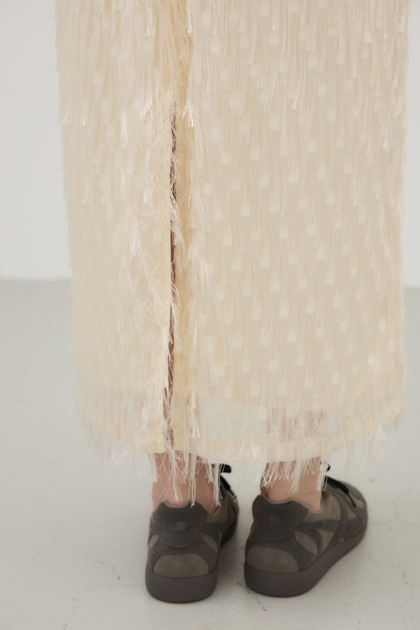 インパクトのあるフリンジのカットジャカード素材がポイント。
