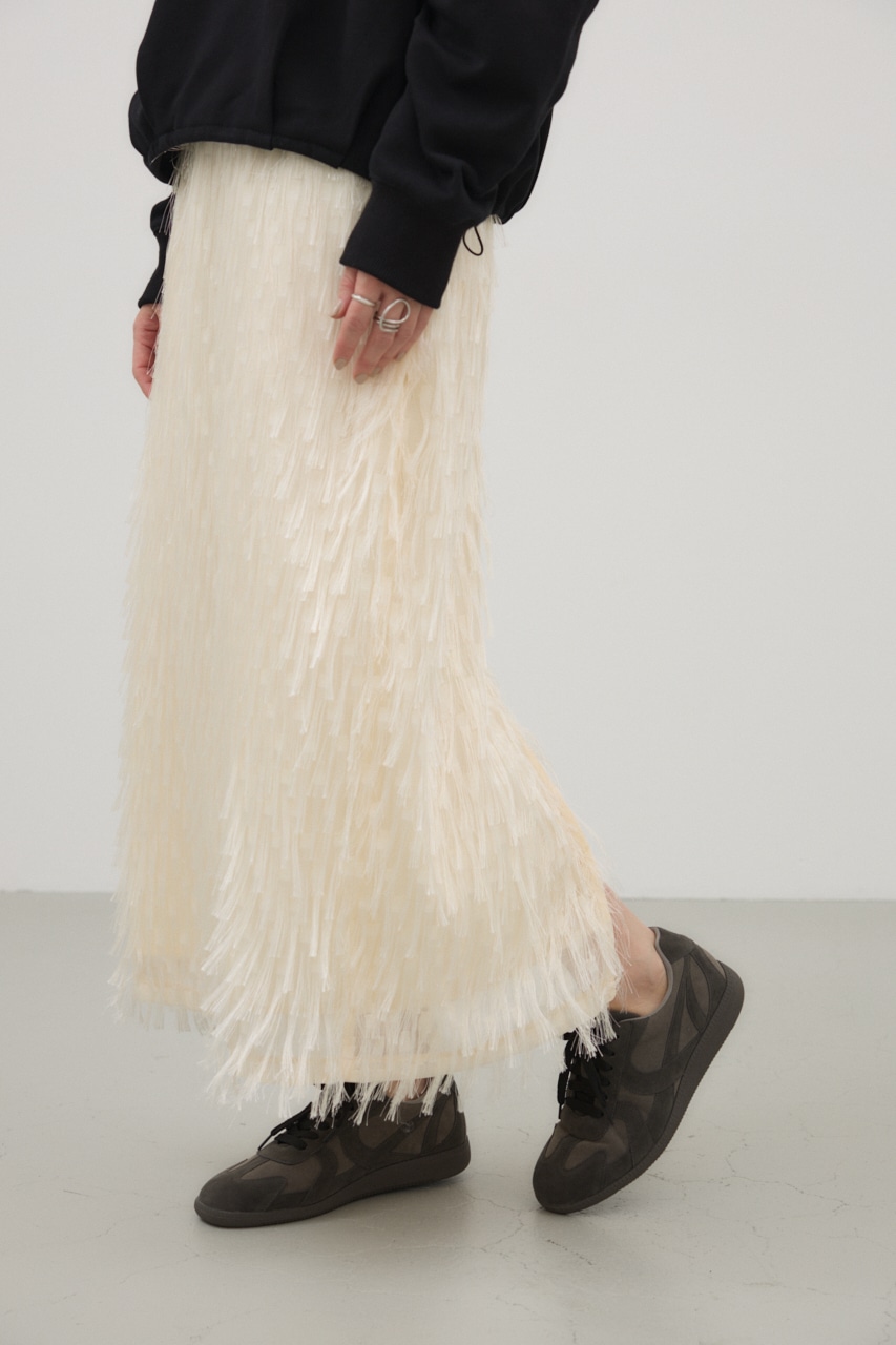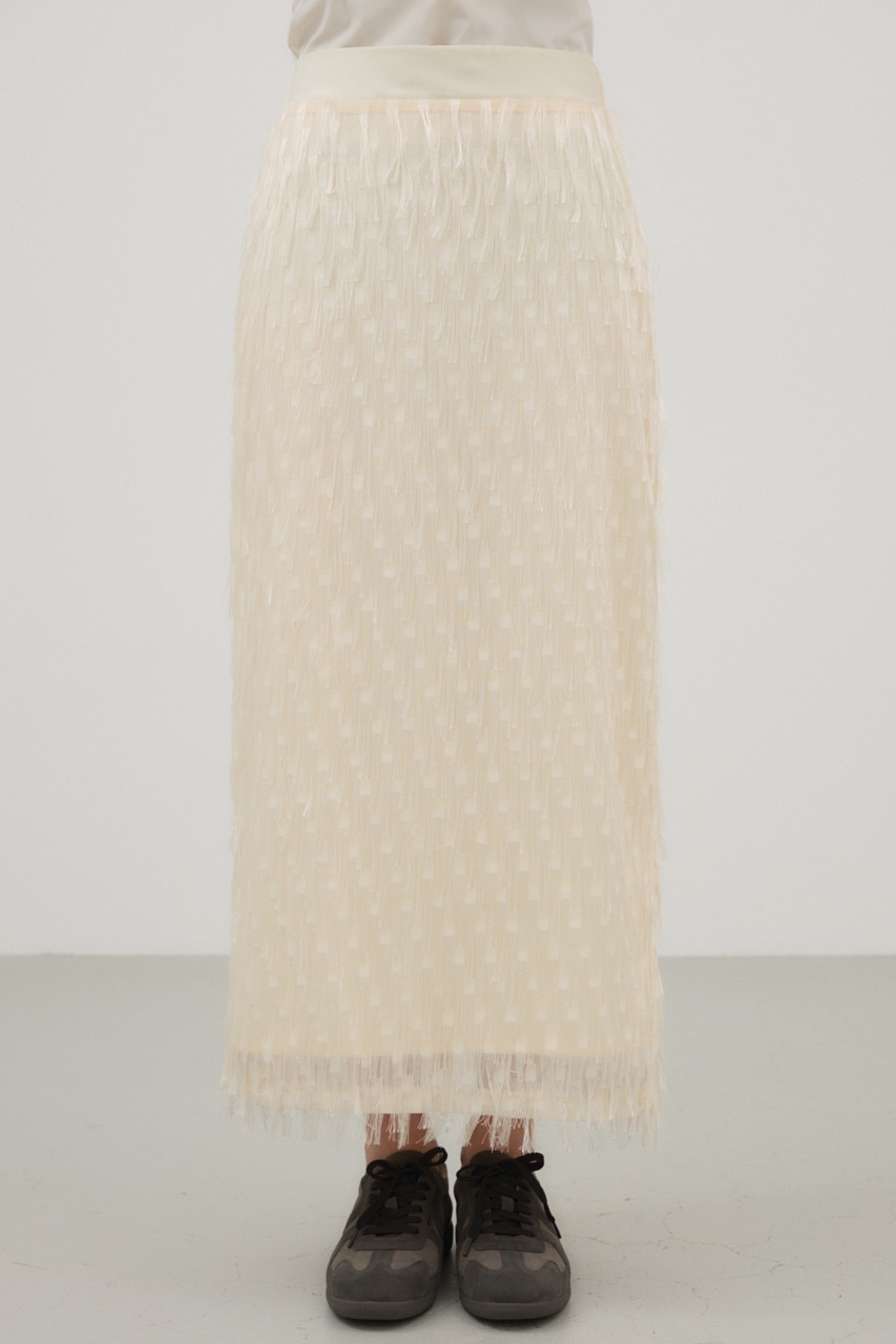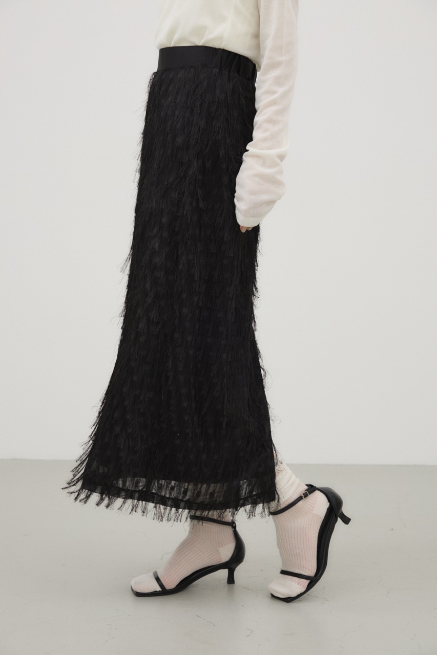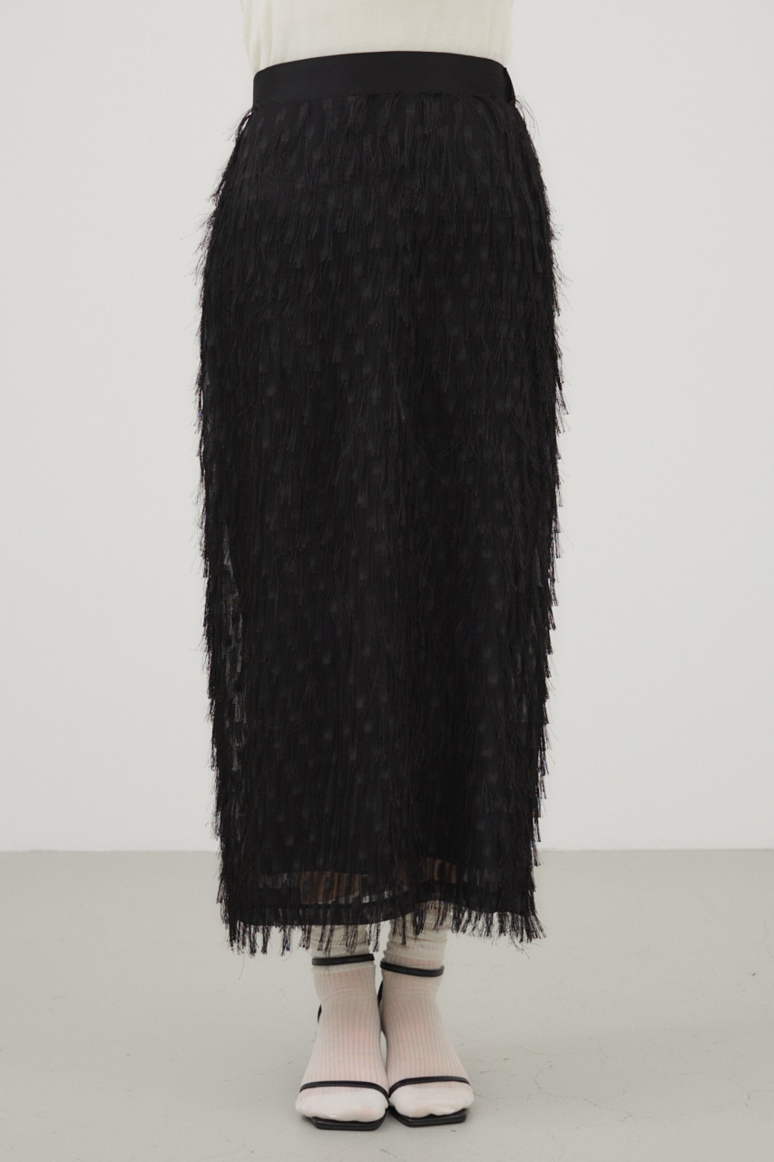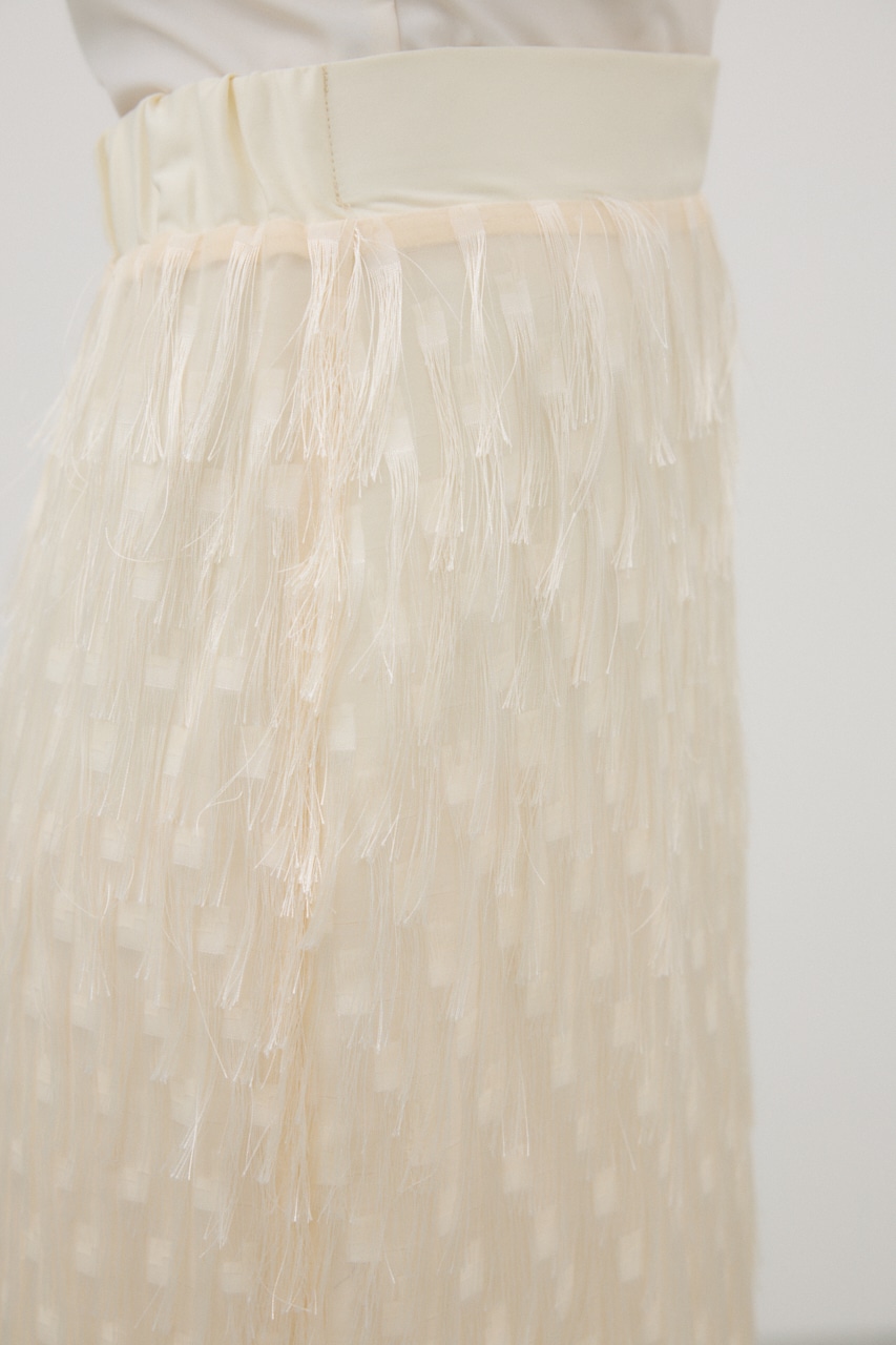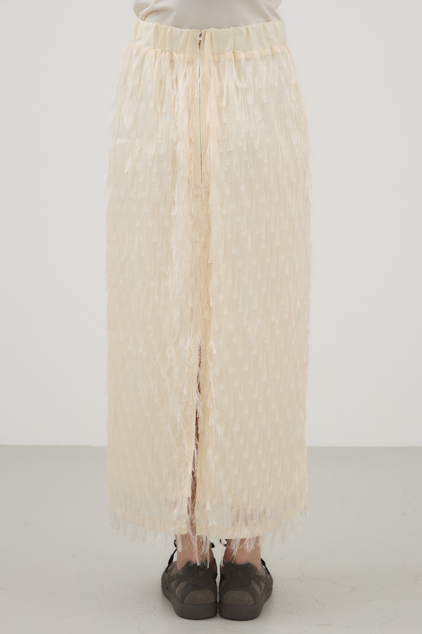 インパクトのあるフリンジのカットジャカード素材がポイント。