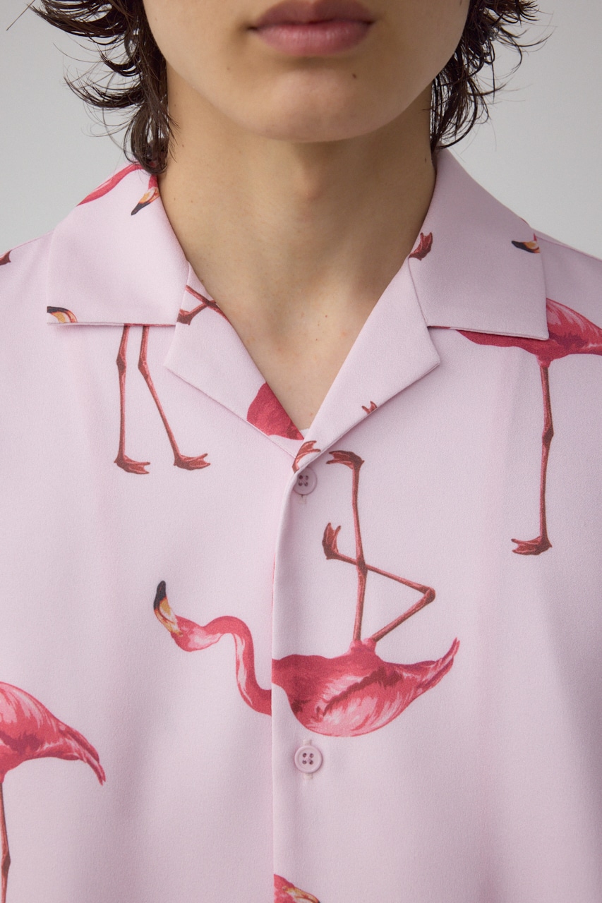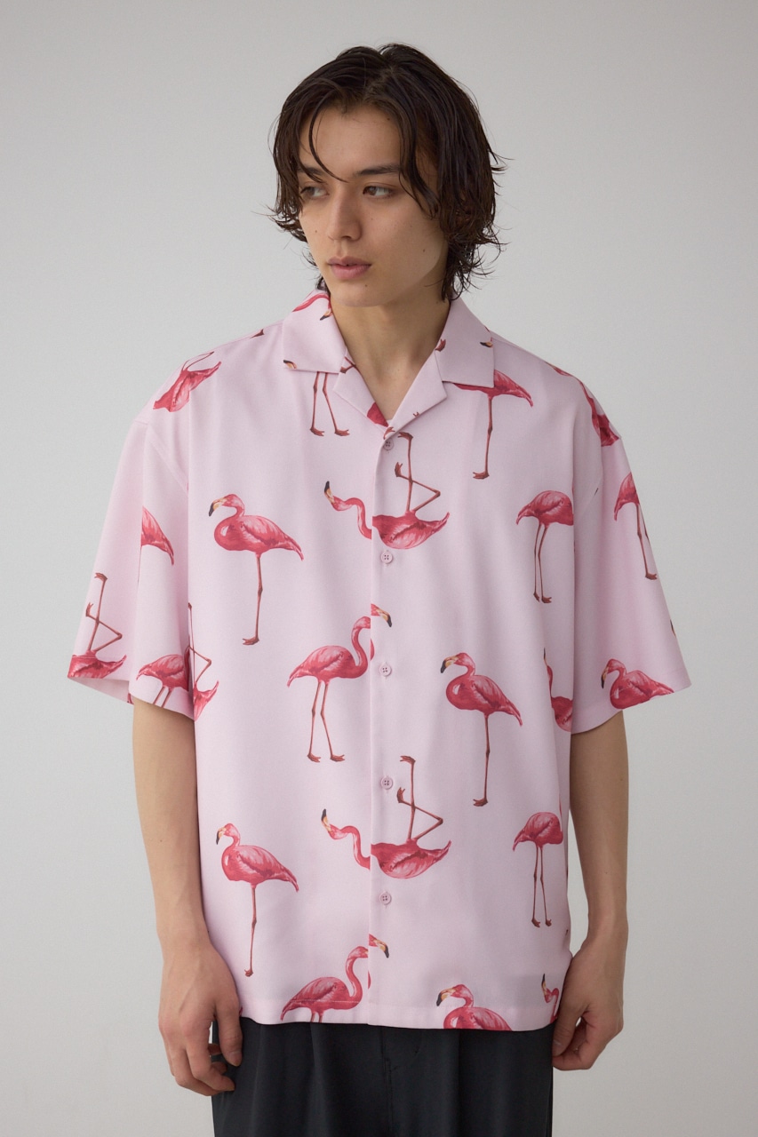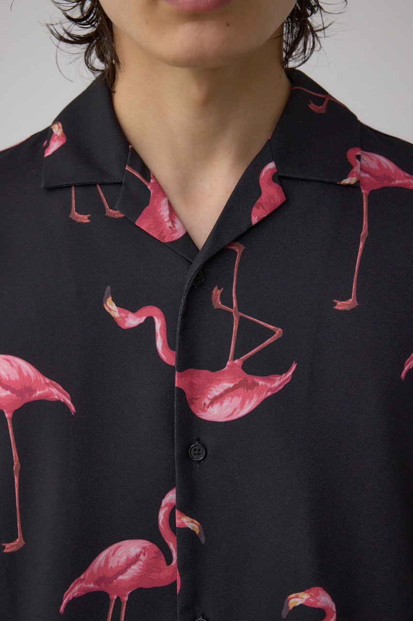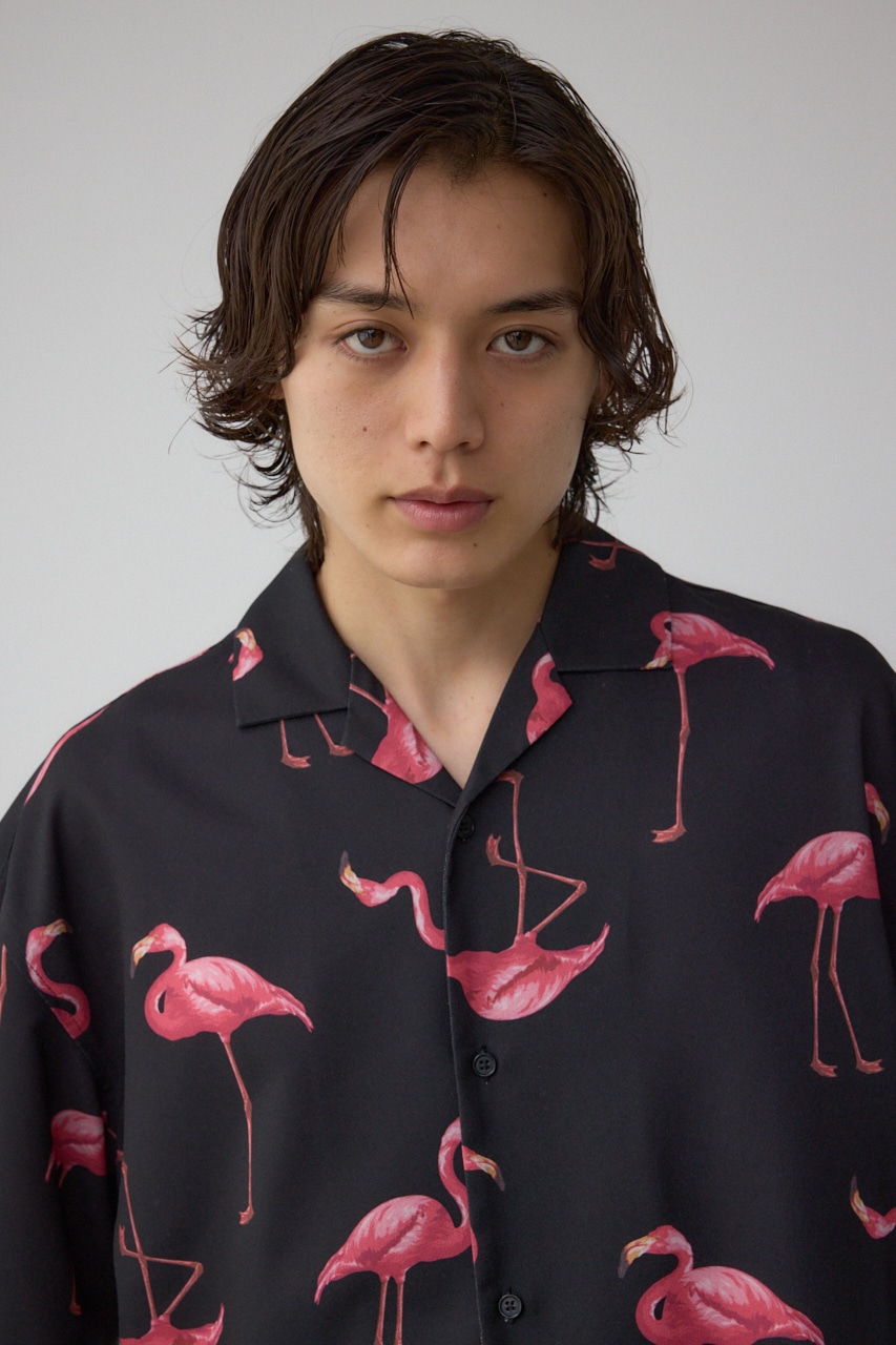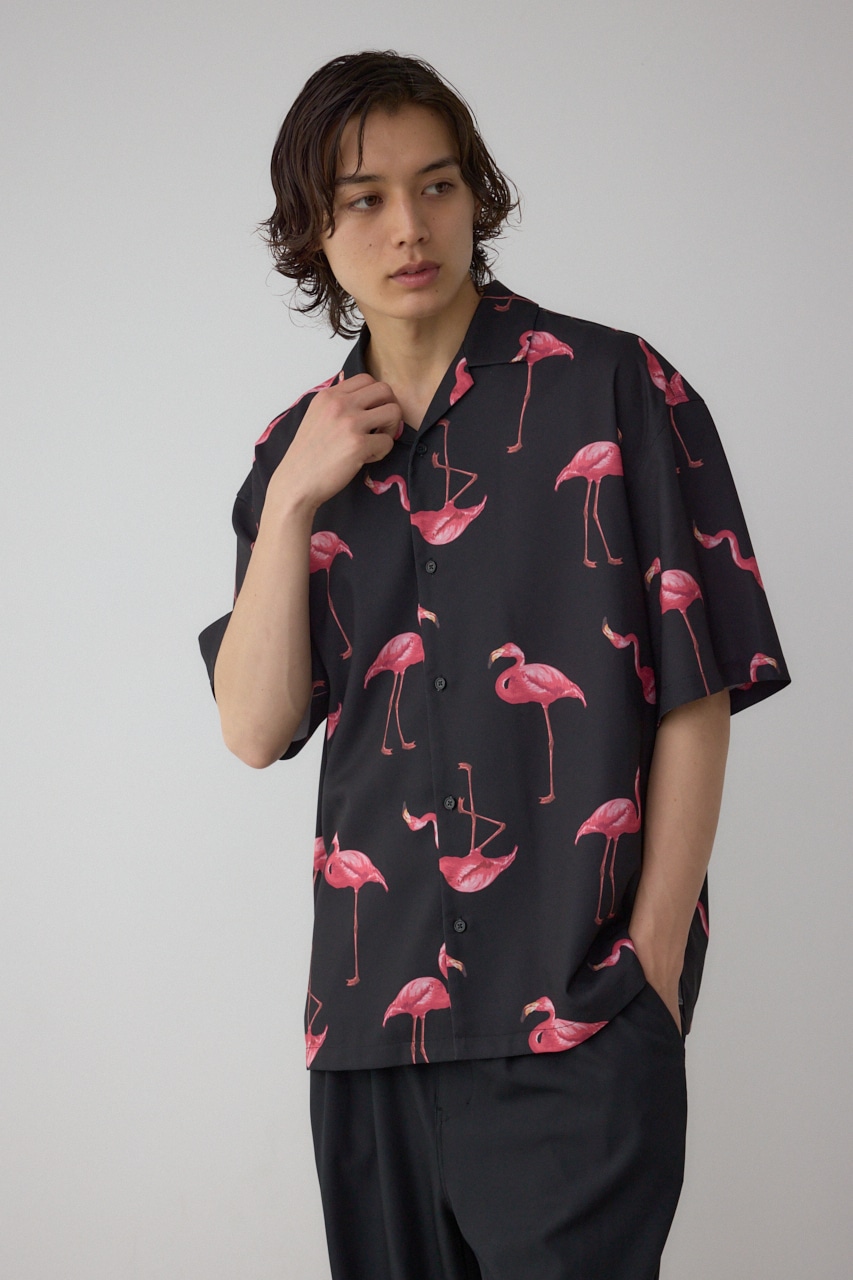 フラミンゴ柄がかっこいい開襟アロハシャツになります。