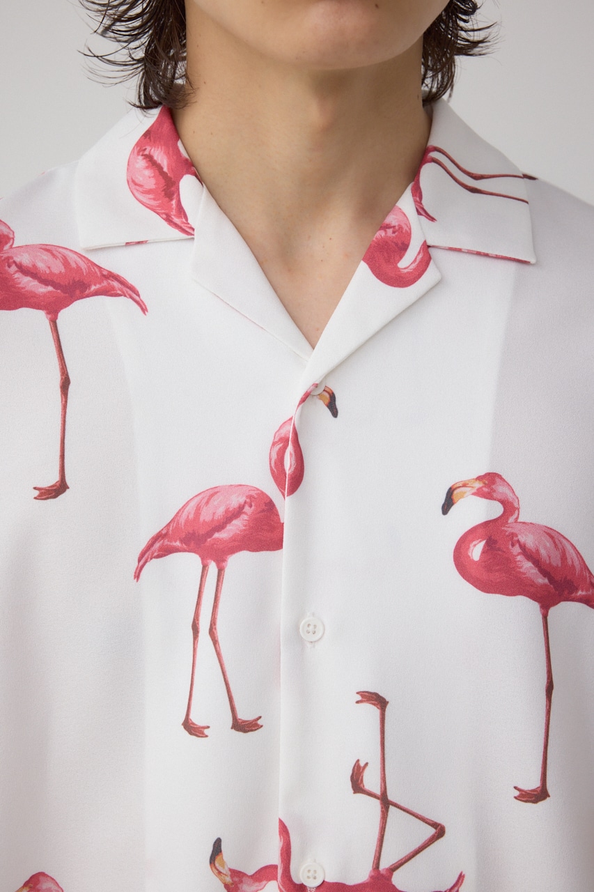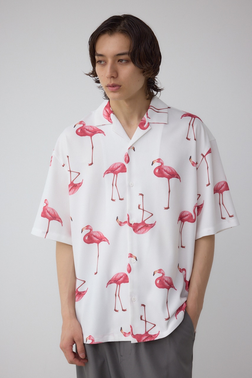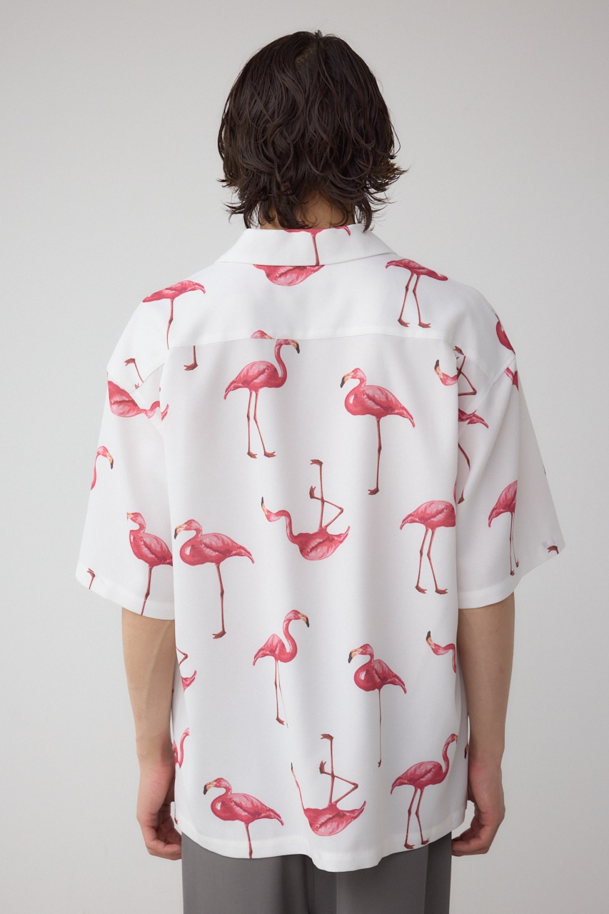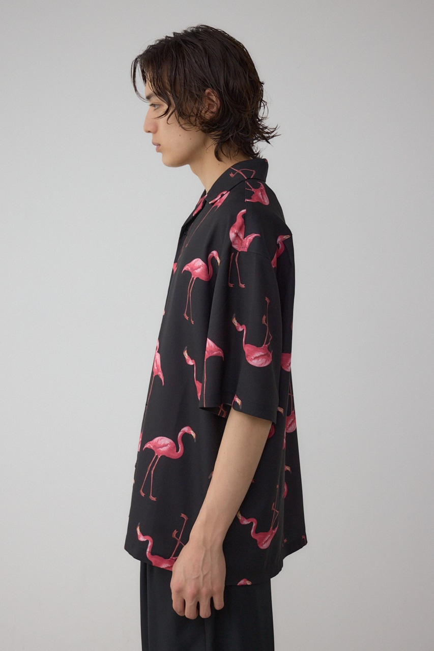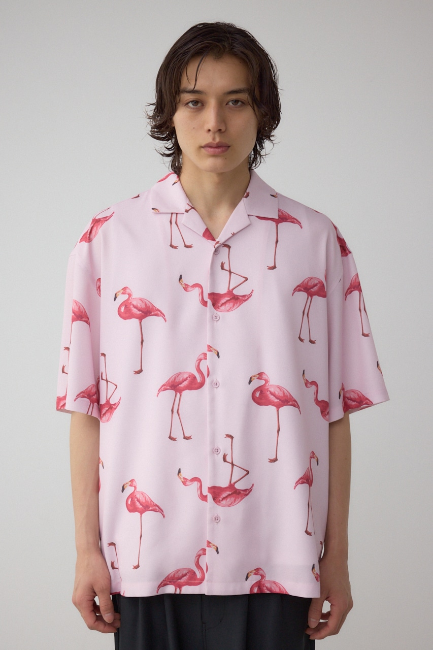 フラミンゴ柄がかっこいい開襟アロハシャツになります。