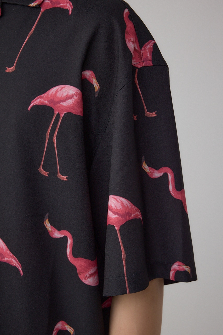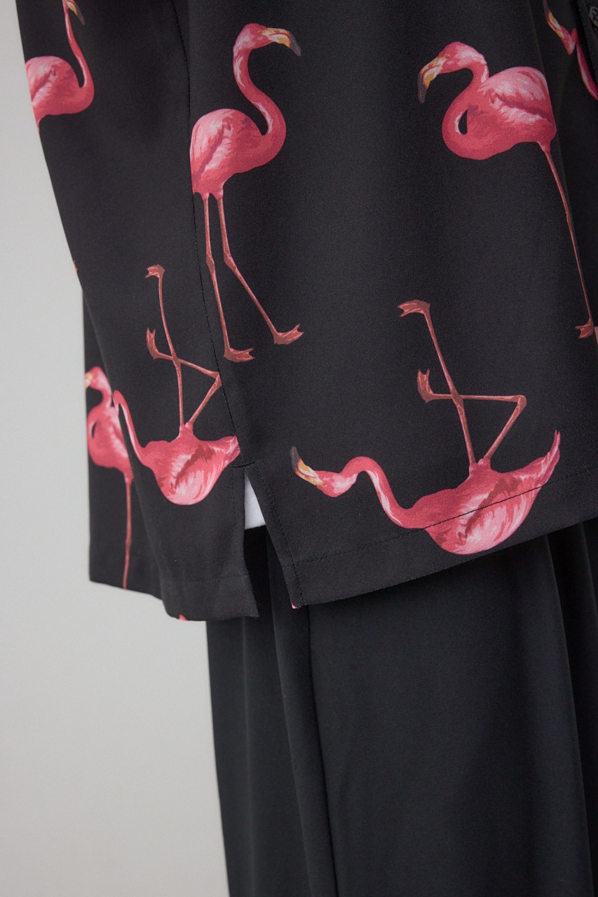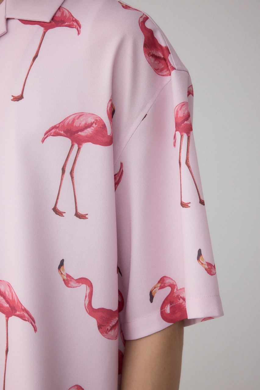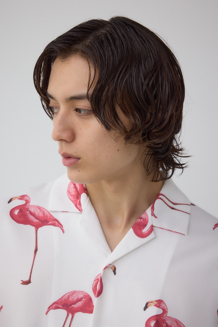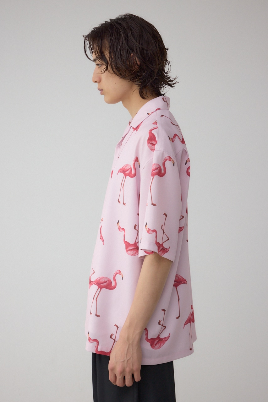 フラミンゴ柄がかっこいい開襟アロハシャツになります。