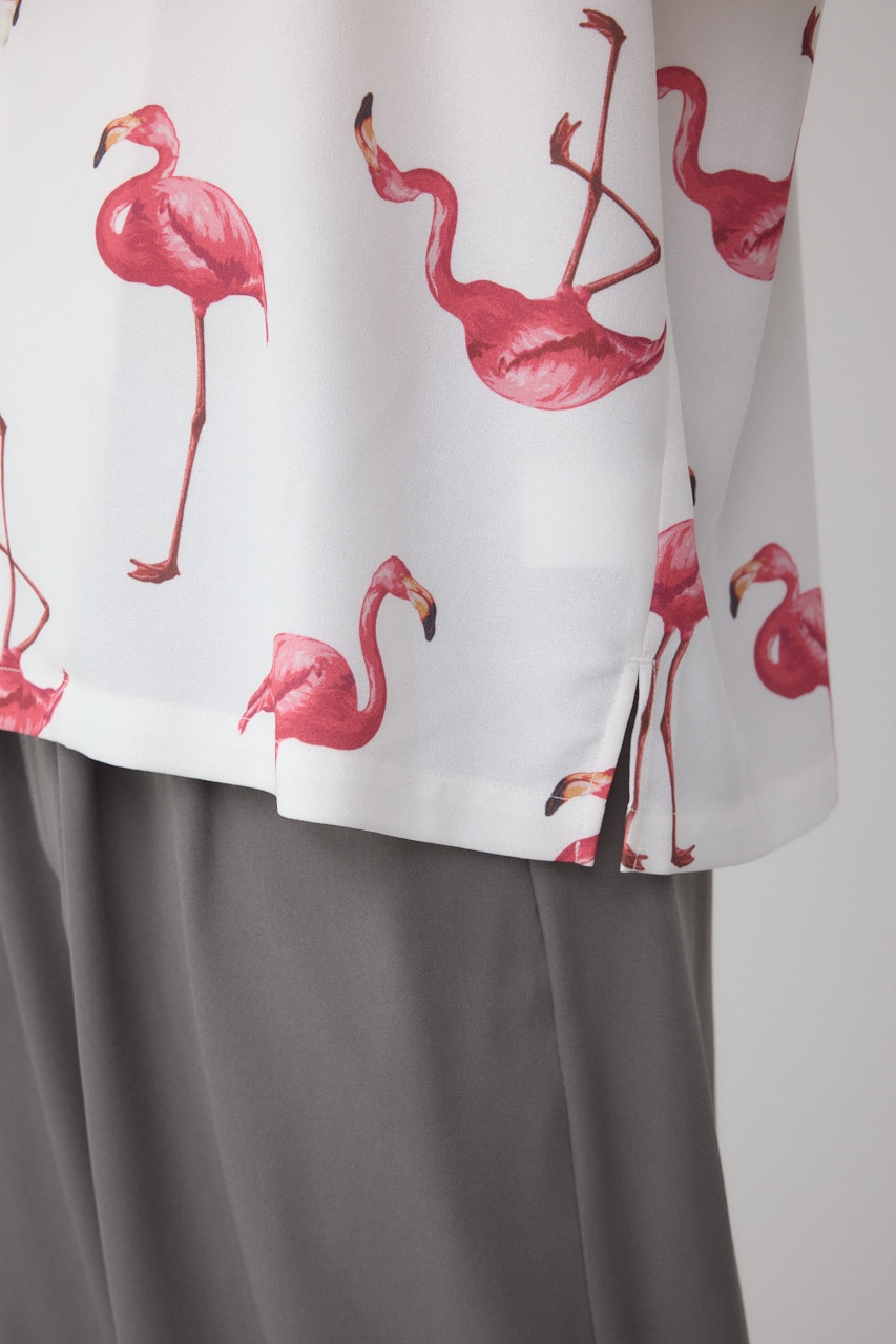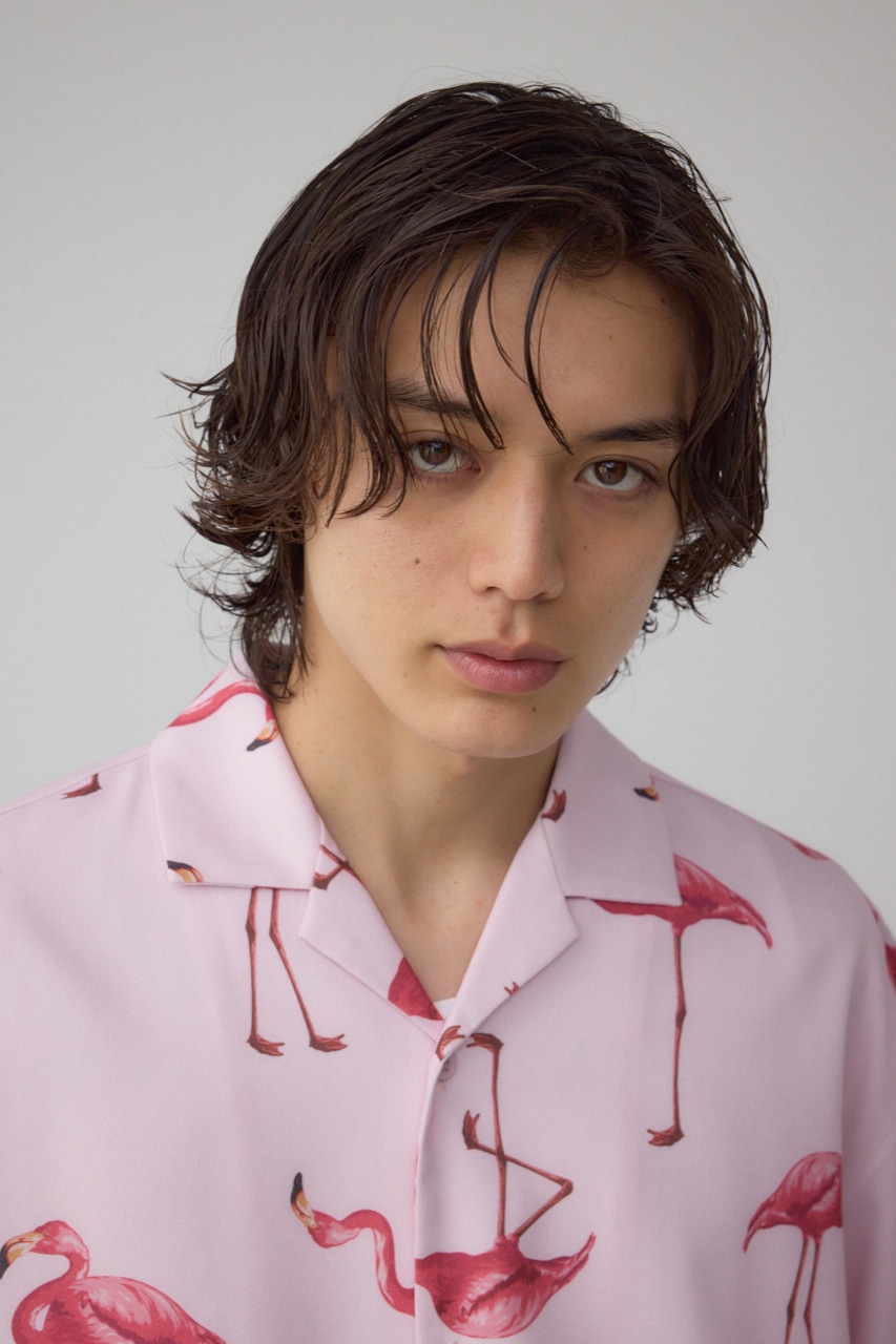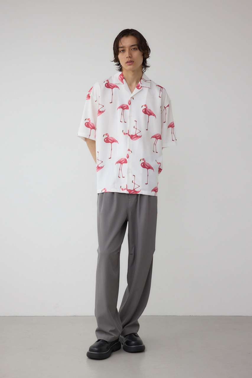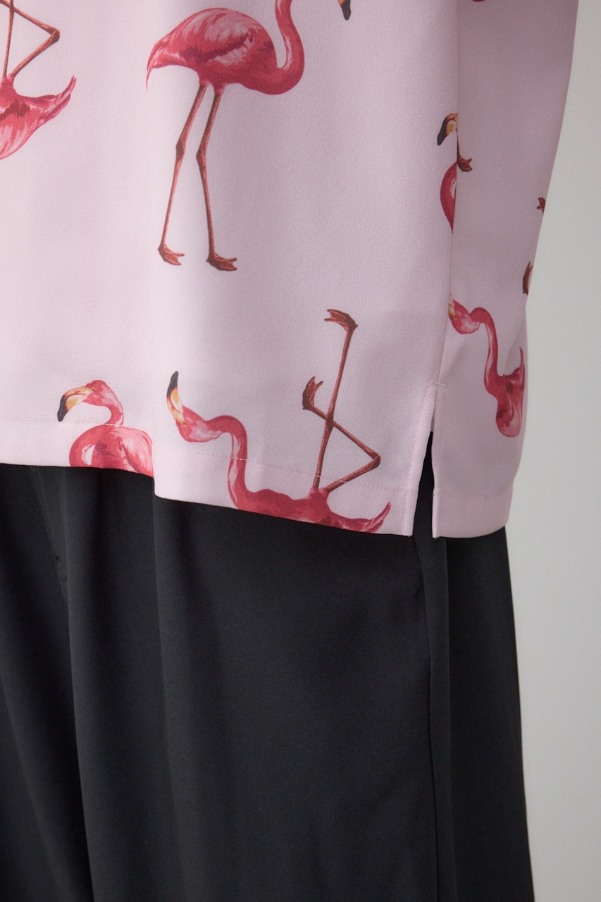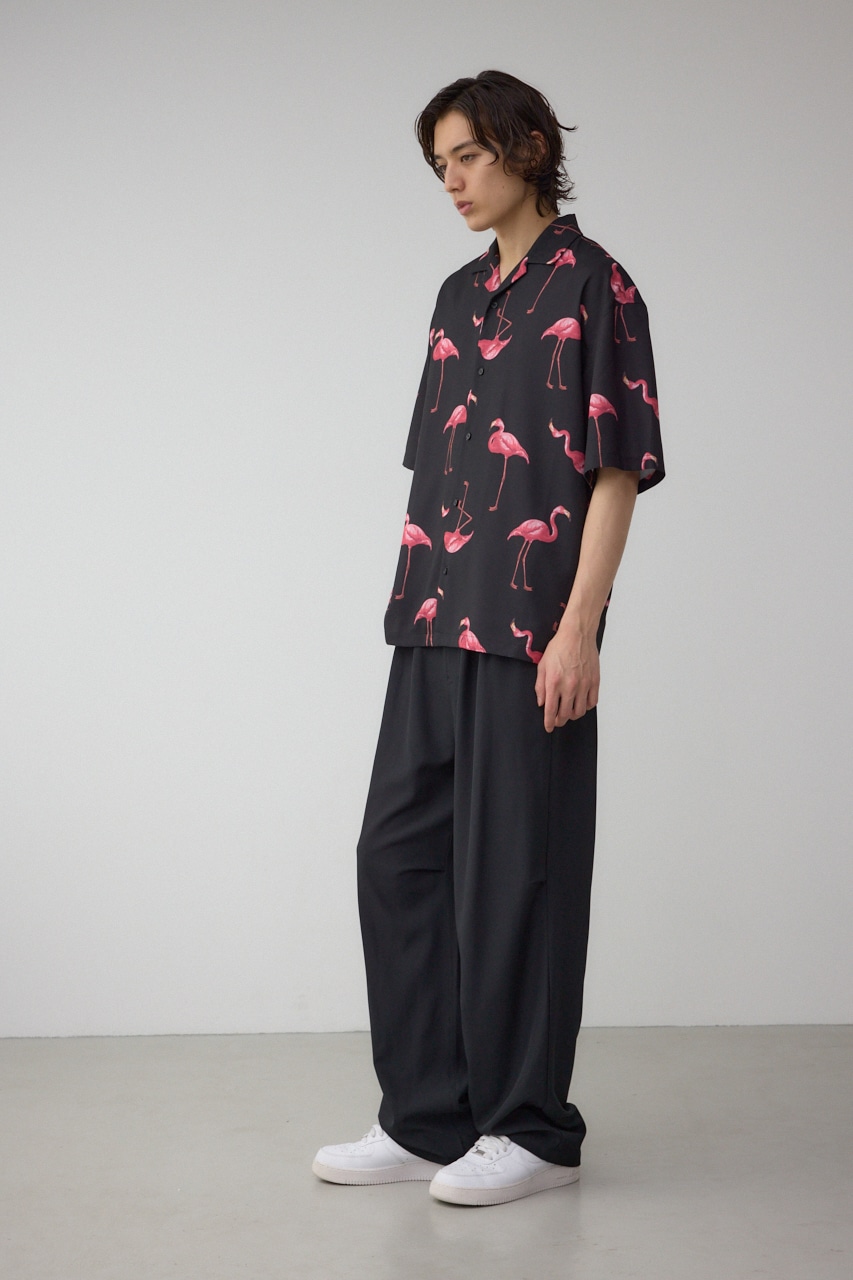 フラミンゴ柄がかっこいい開襟アロハシャツになります。