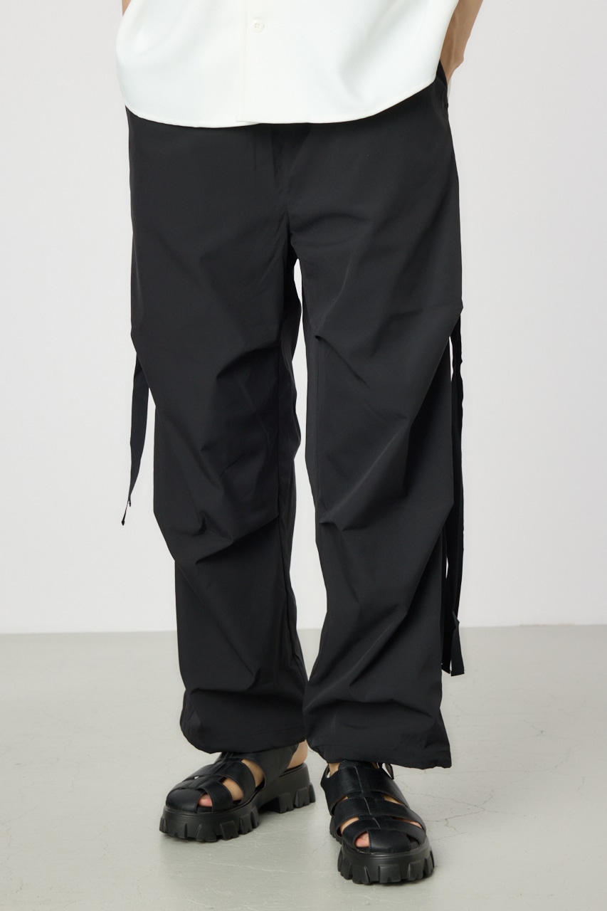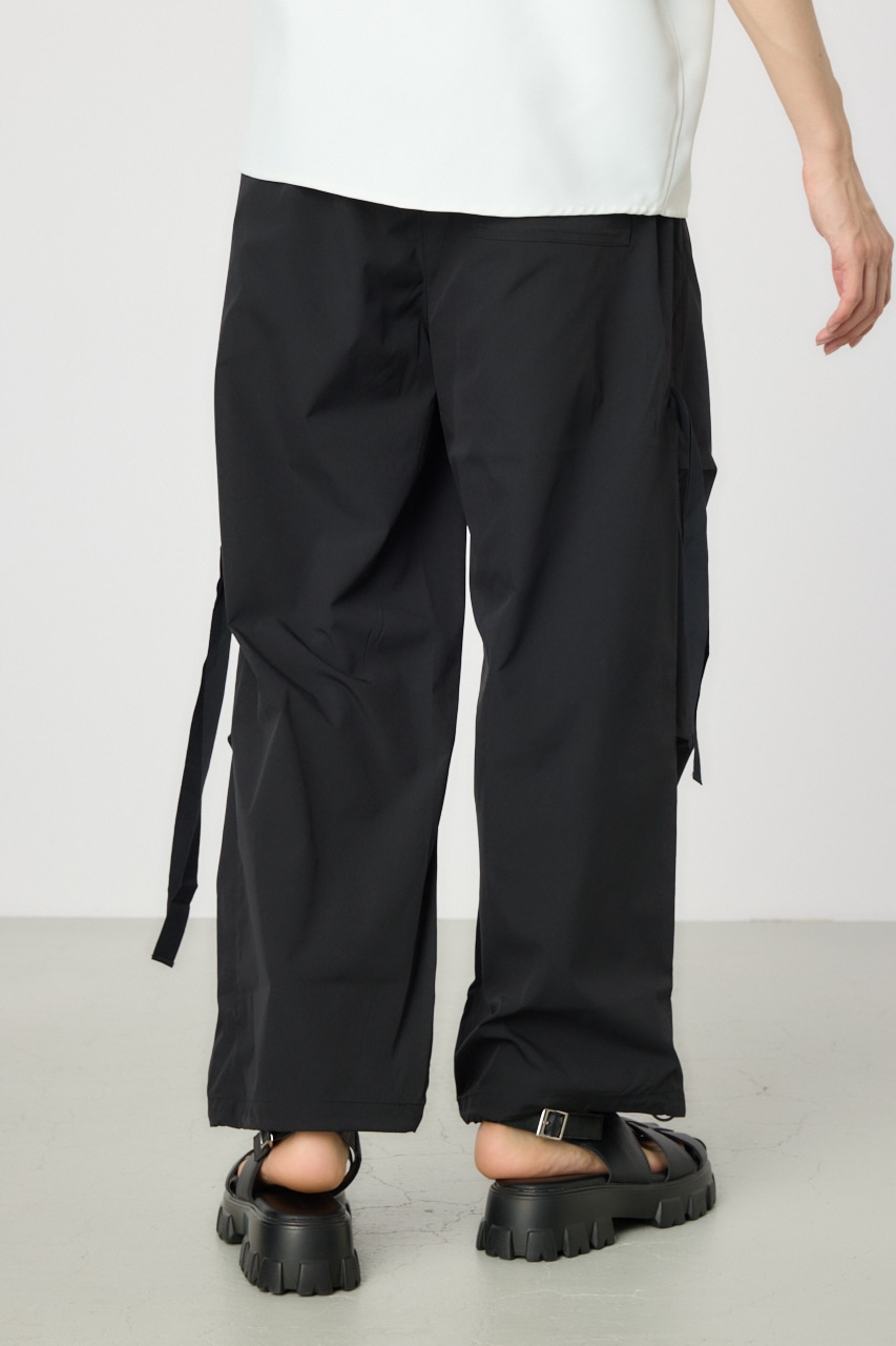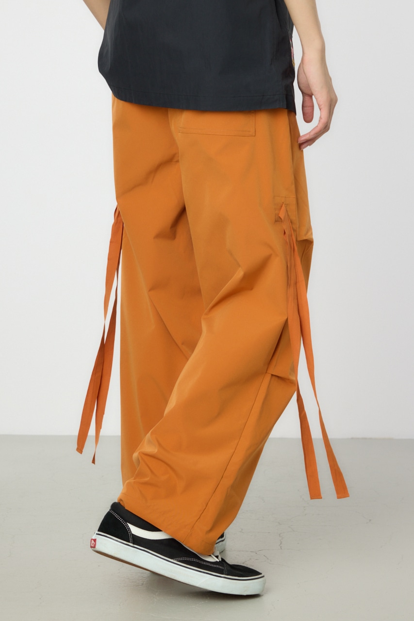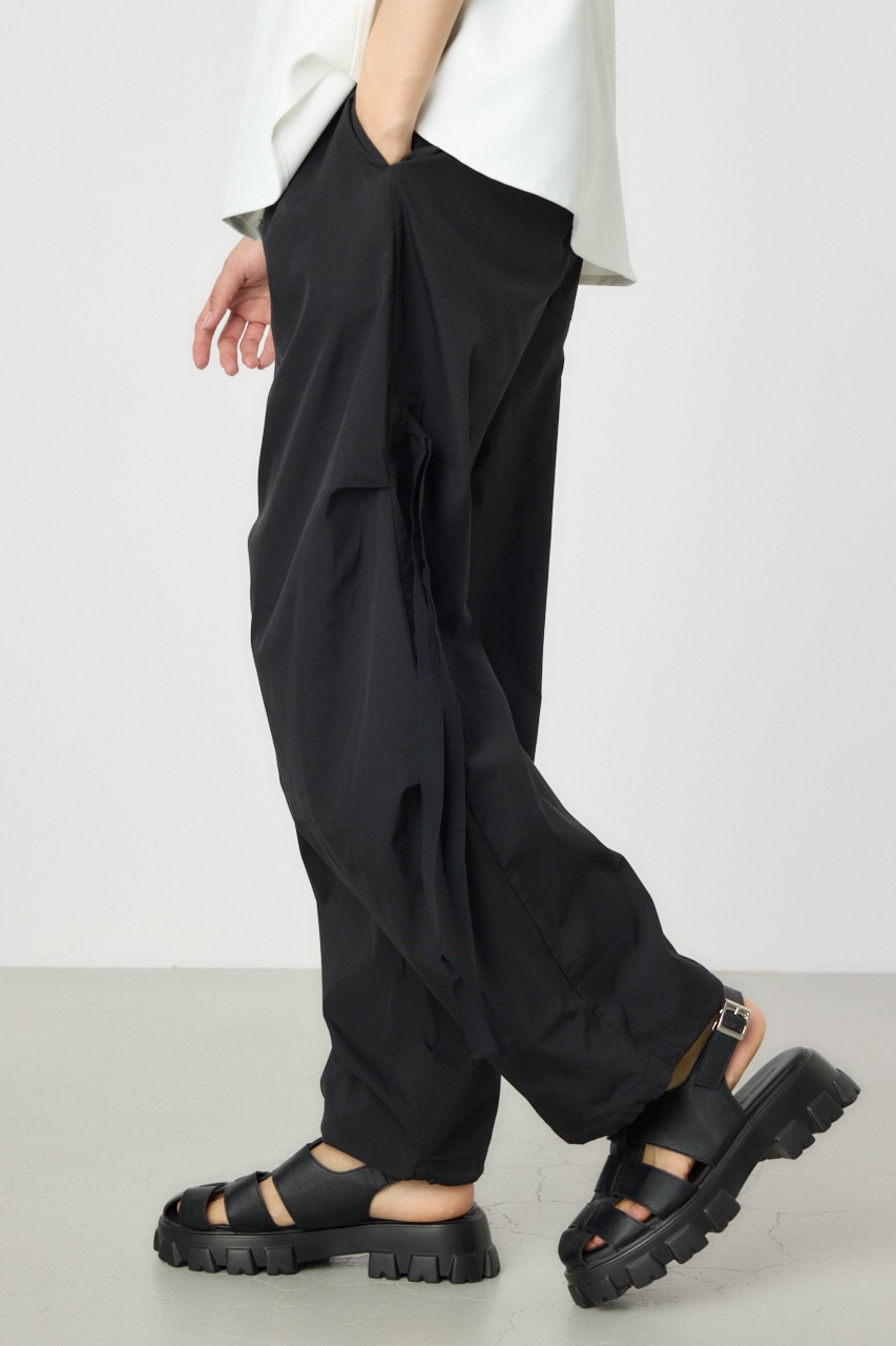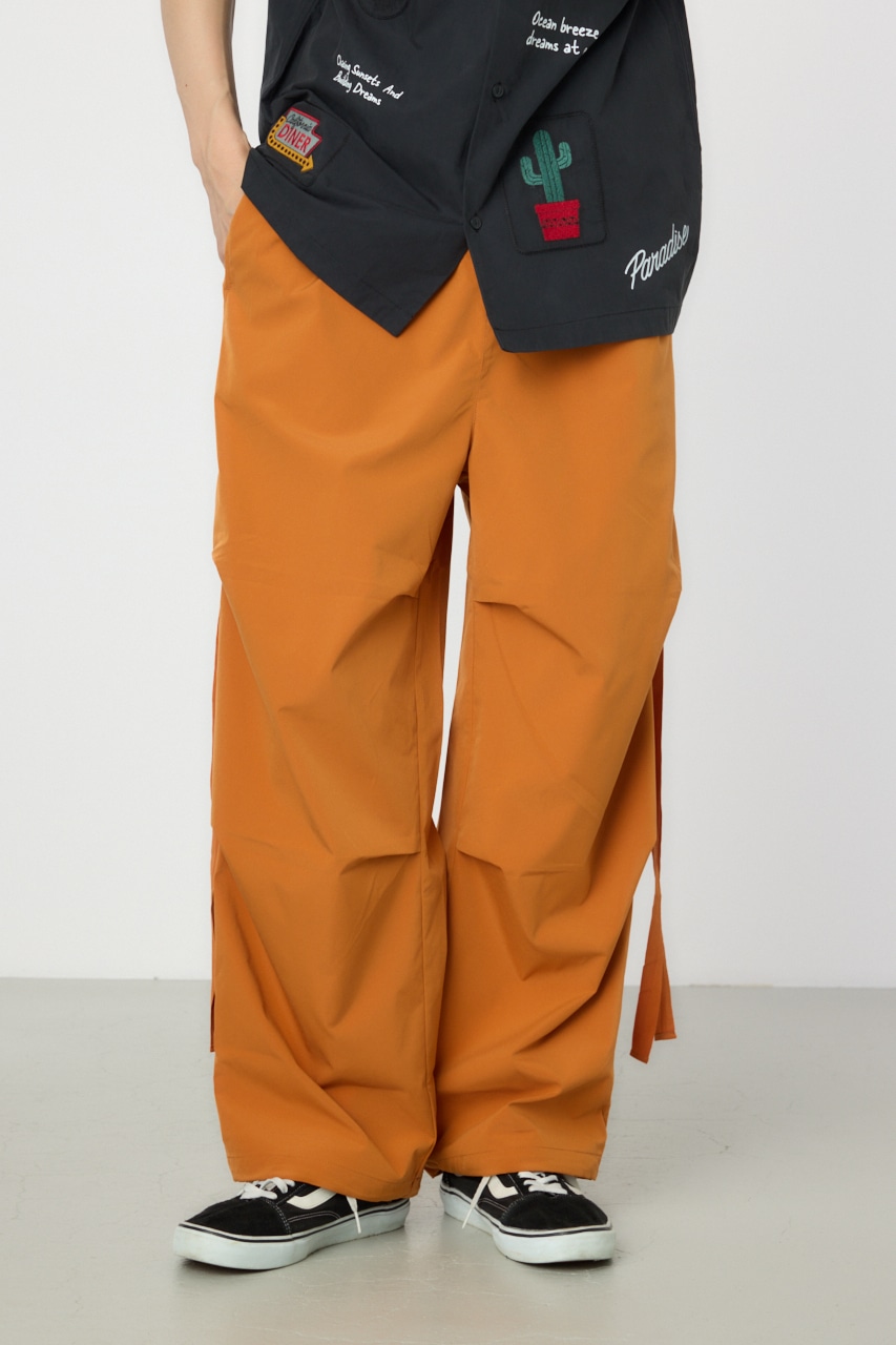 ミリタリーテイストのパラシュートパンツを、シンプルながらデザイン性のある1本に仕上げました。