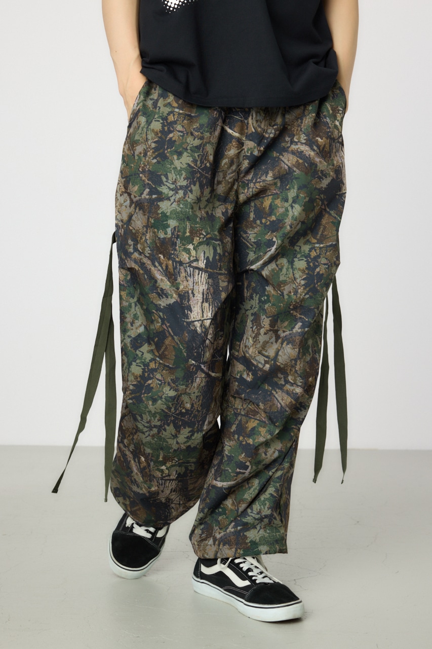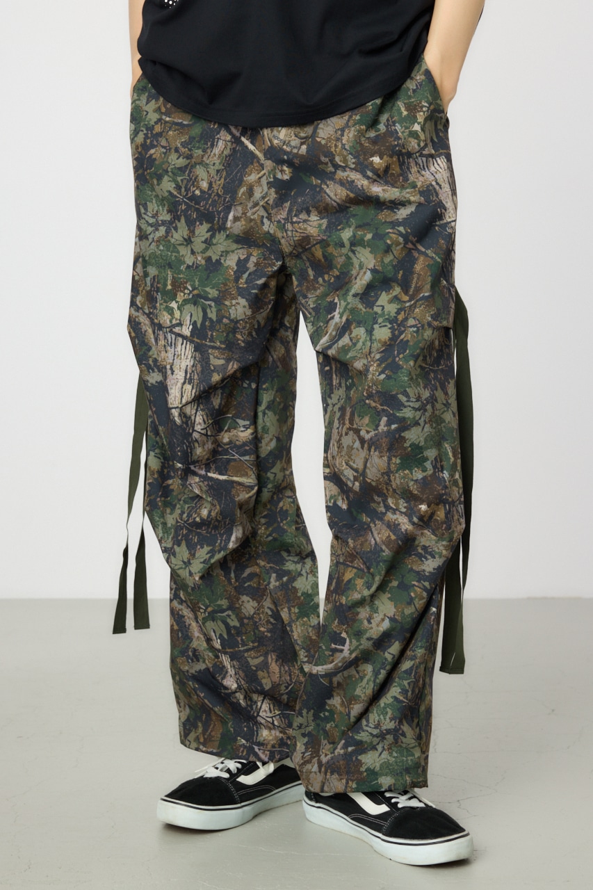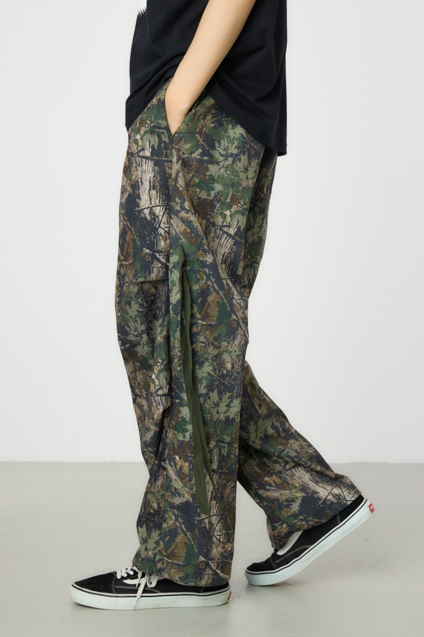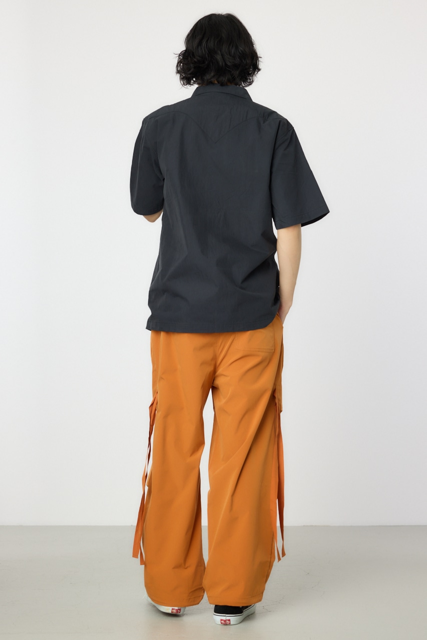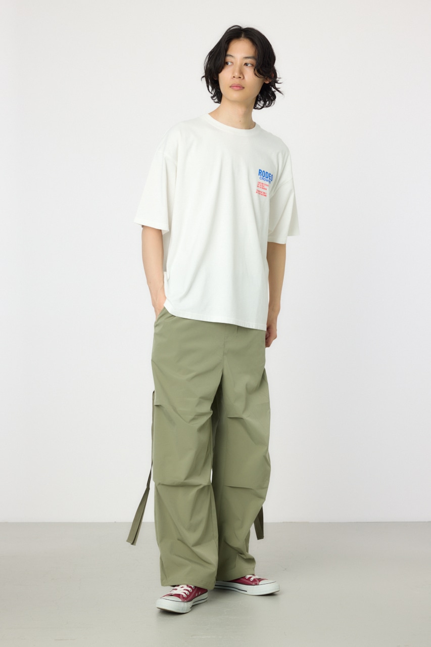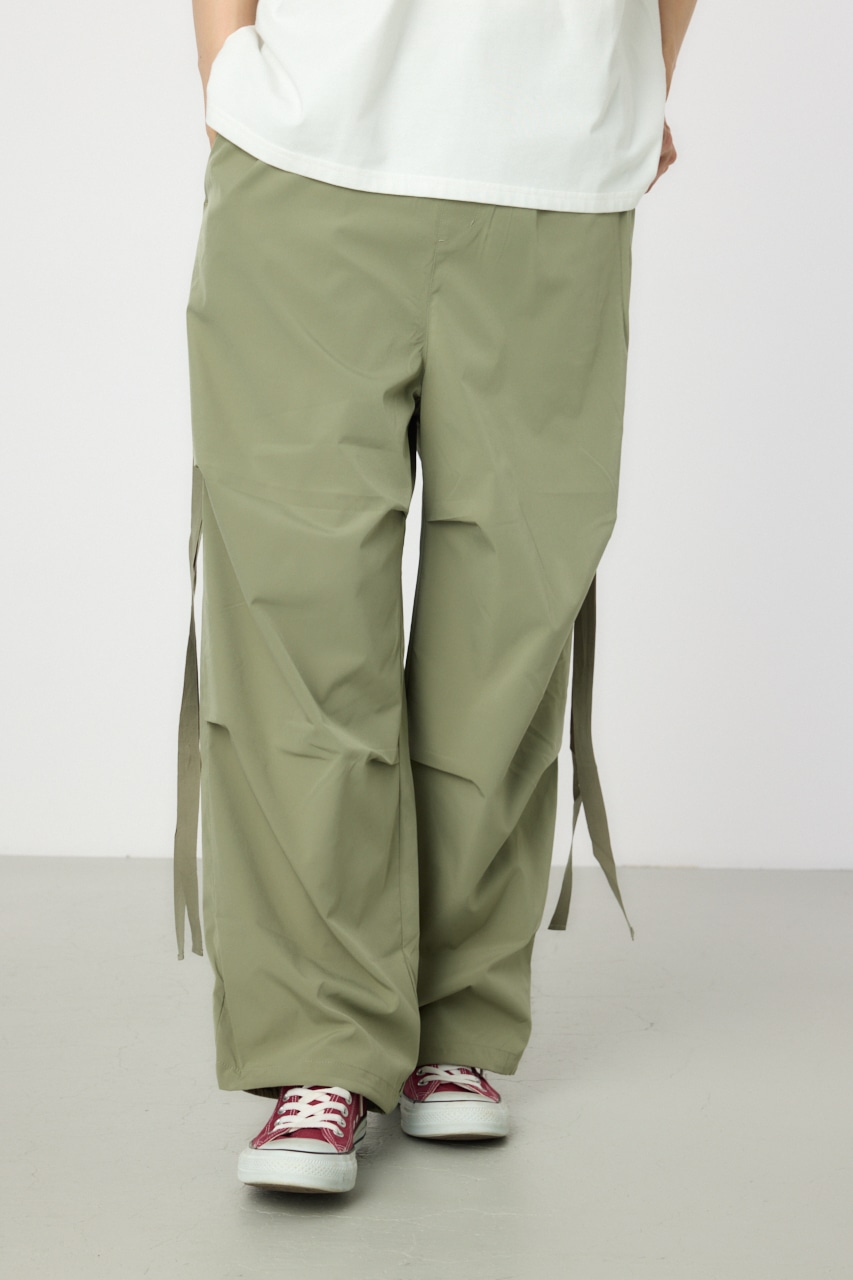 ミリタリーテイストのパラシュートパンツを、シンプルながらデザイン性のある1本に仕上げました。
