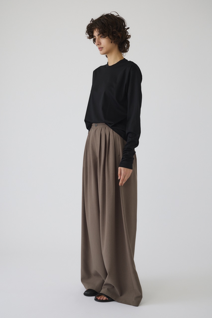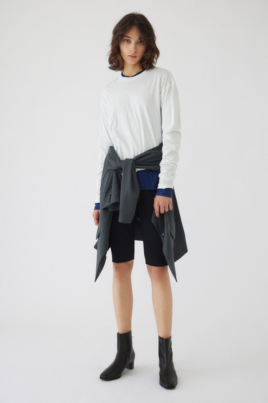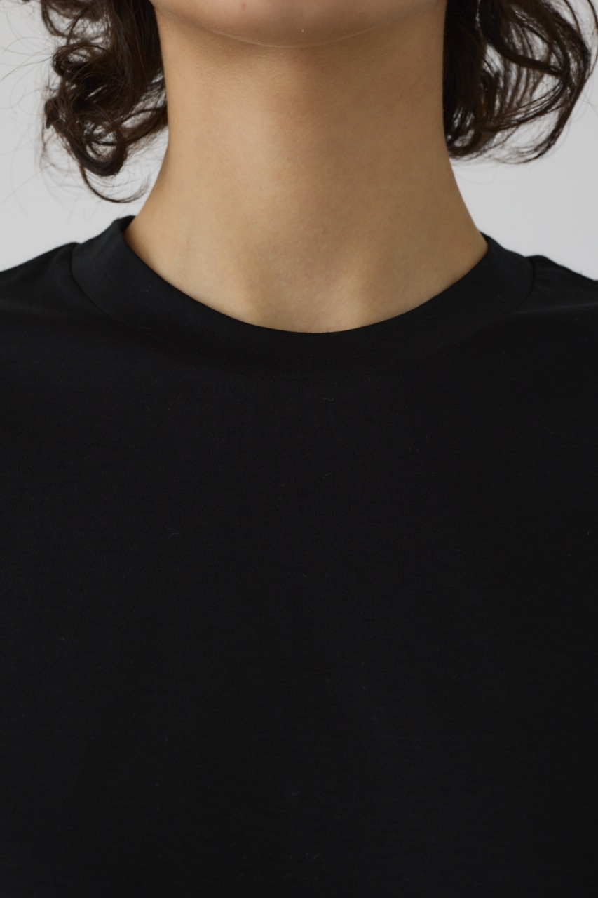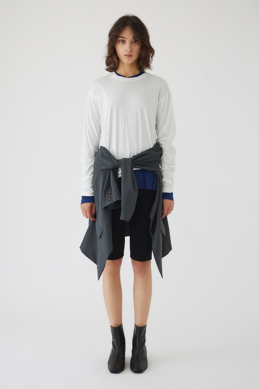 独特の滑らかな質感を持った高級超長綿ギザとリヨセルを混紡することで実現した、しっとりとした風合いと柔らかな肌触りが快適なスムースを使用。程良い光沢と艶が美しく一枚でサマになるのはもちろん、袖を長めに設定し、ニットやスウェットとレイヤードしてもこなれたスタイルが完成するように製作しています。