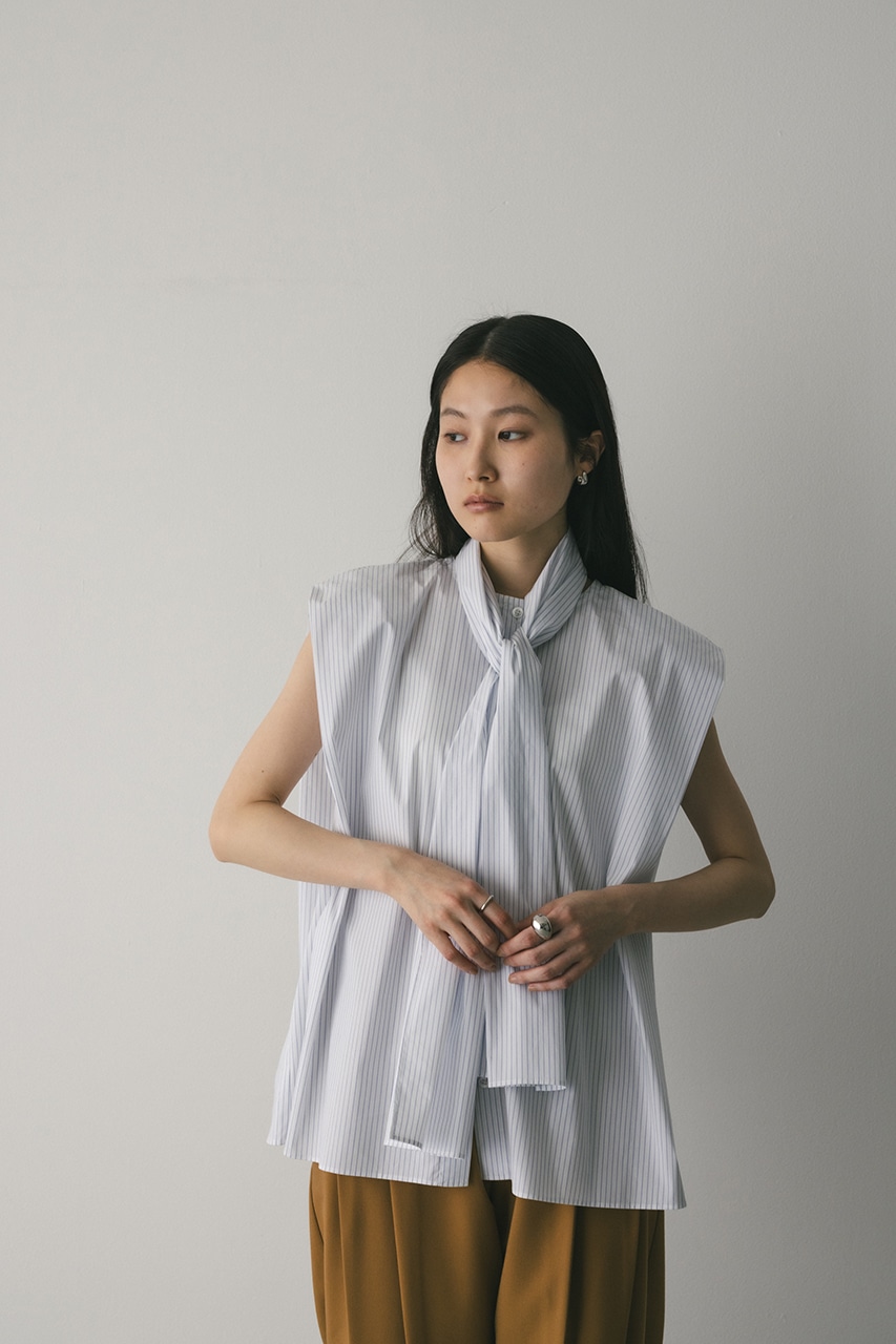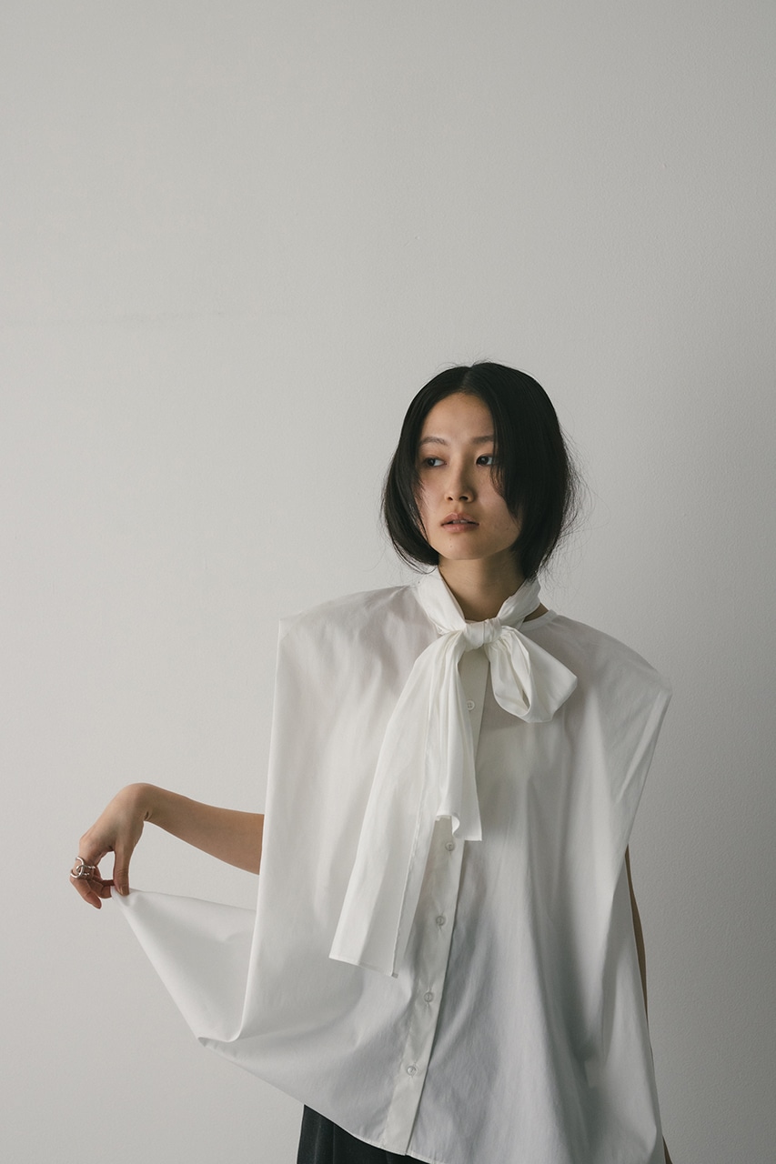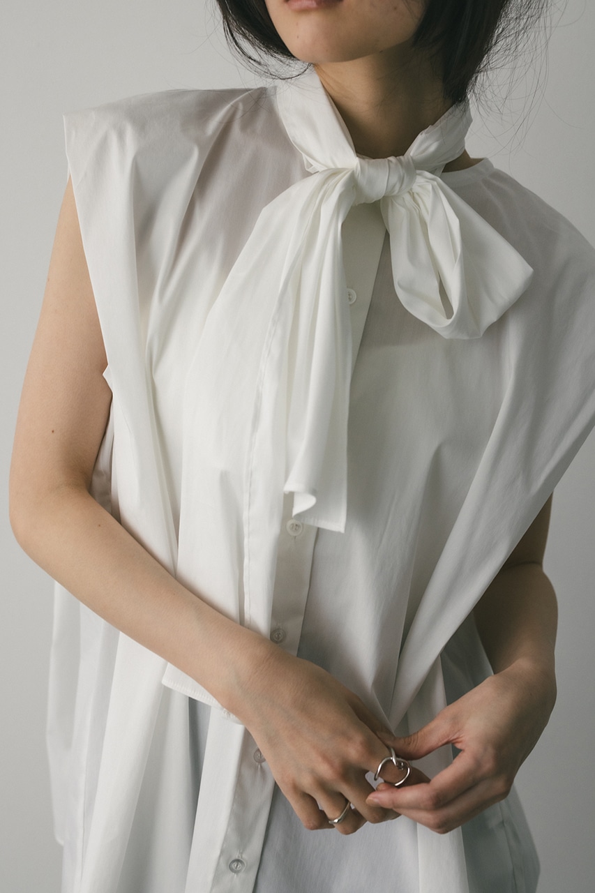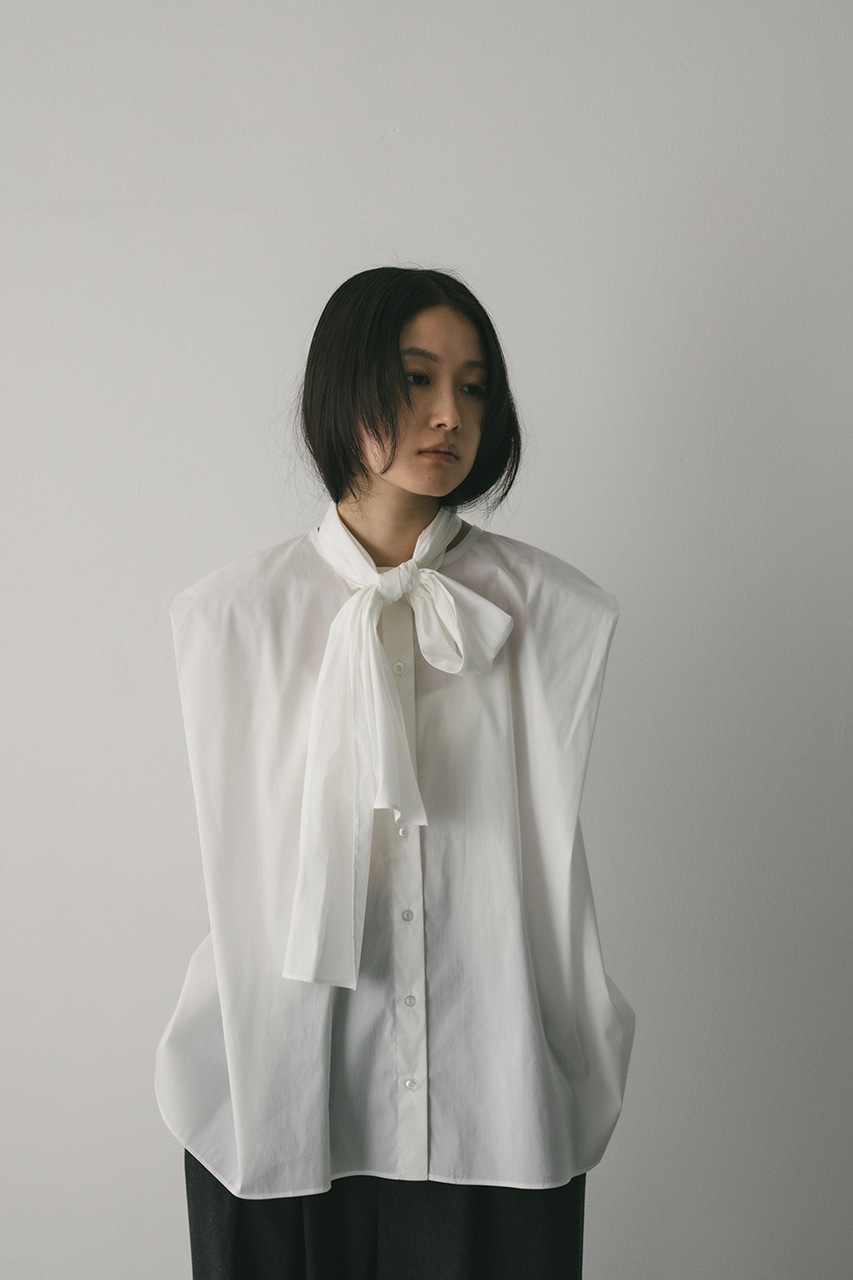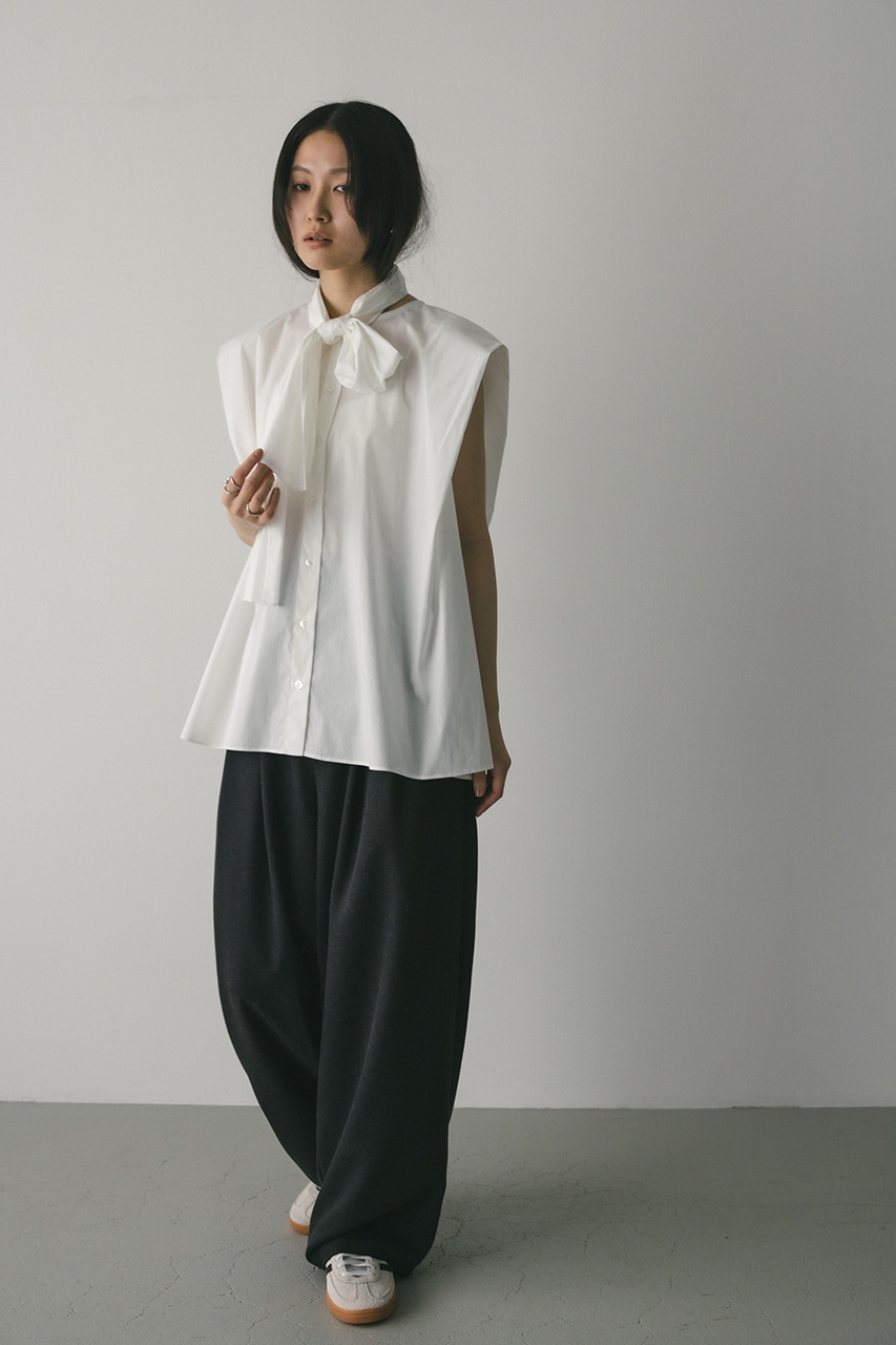 存在感のあるタイデザインがポイントのフレアブラウス。