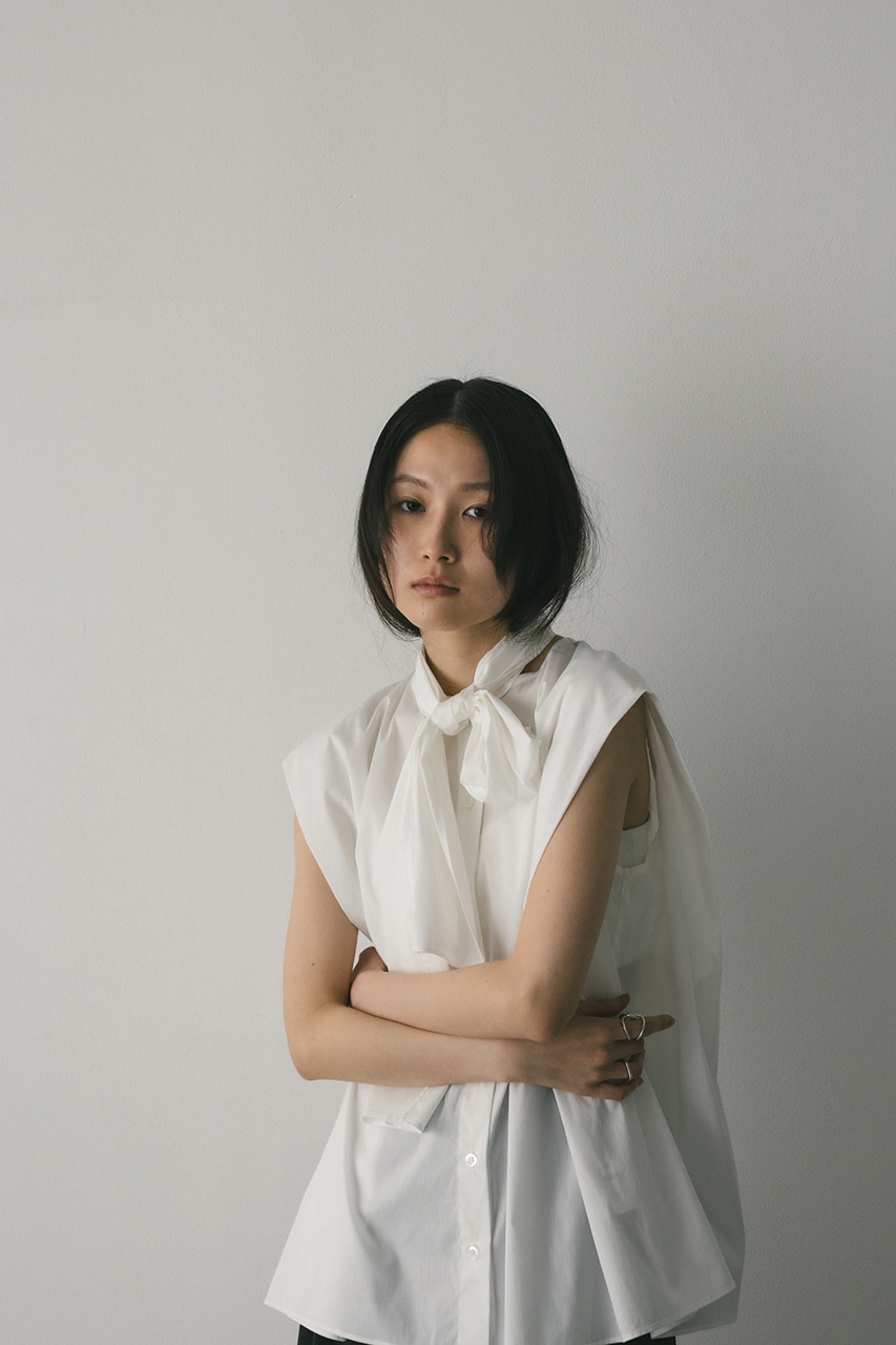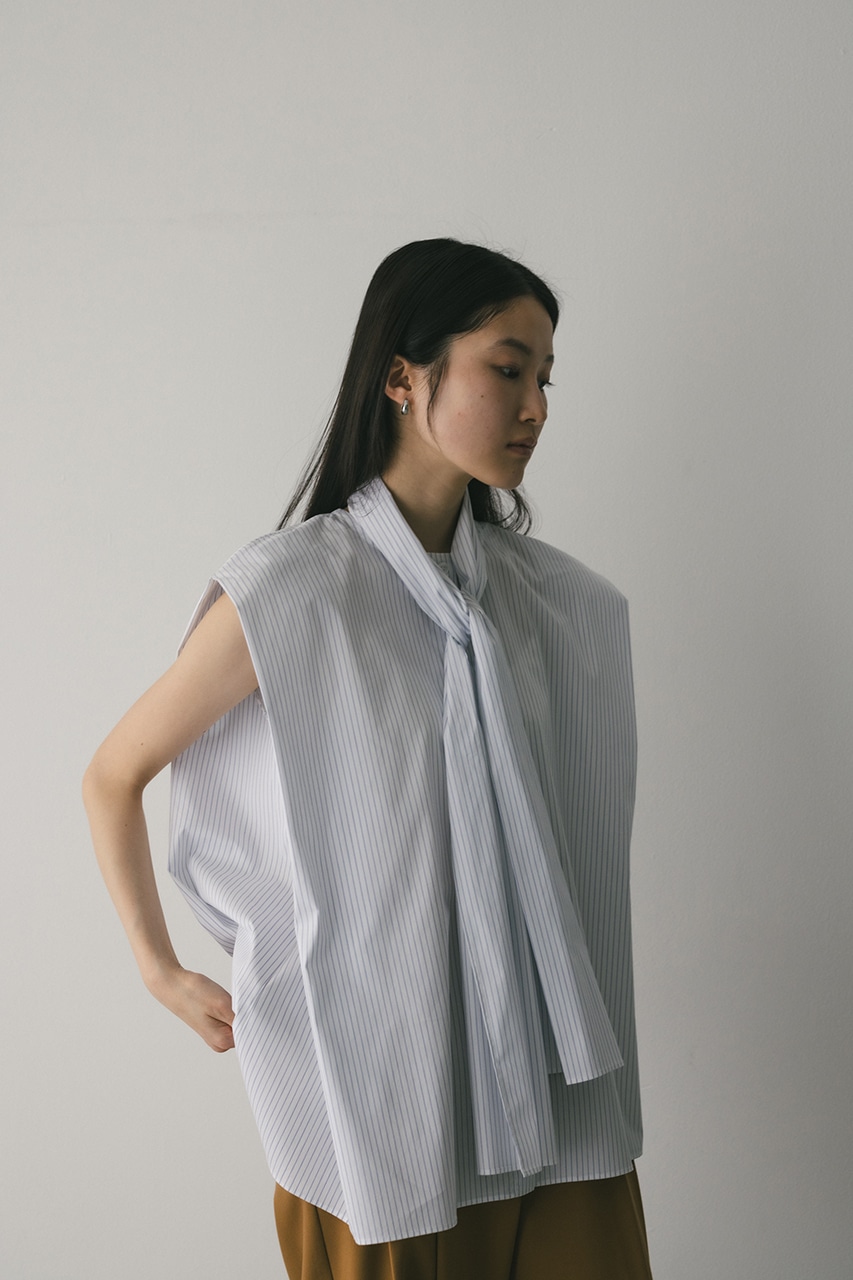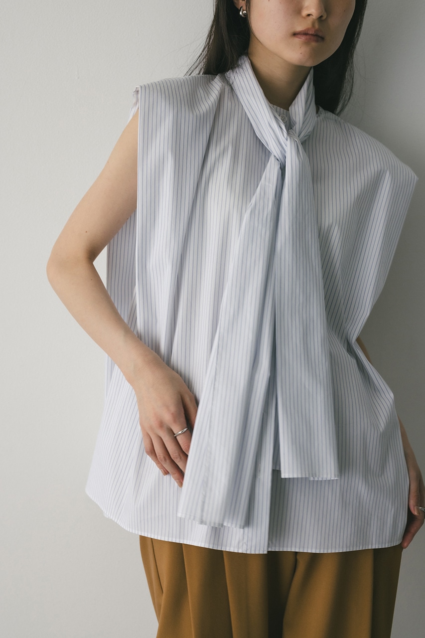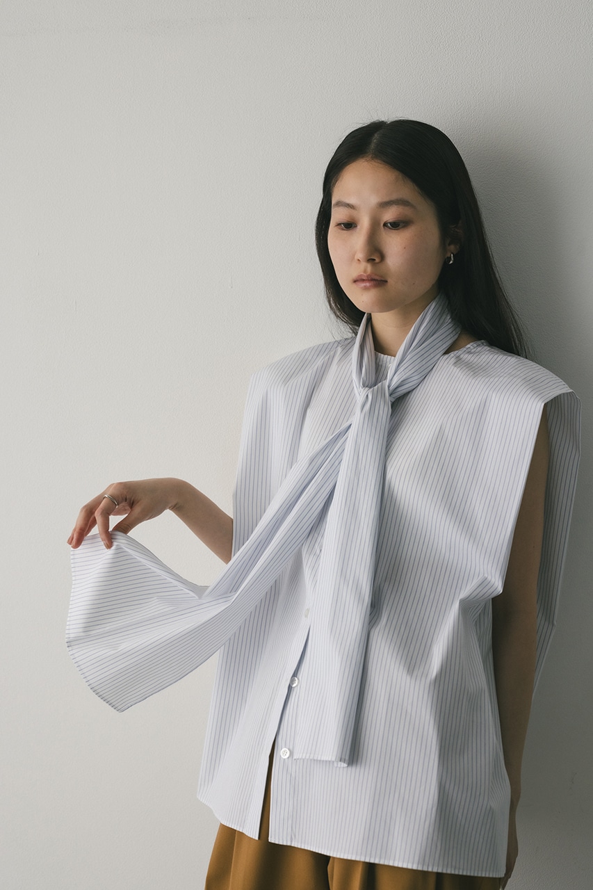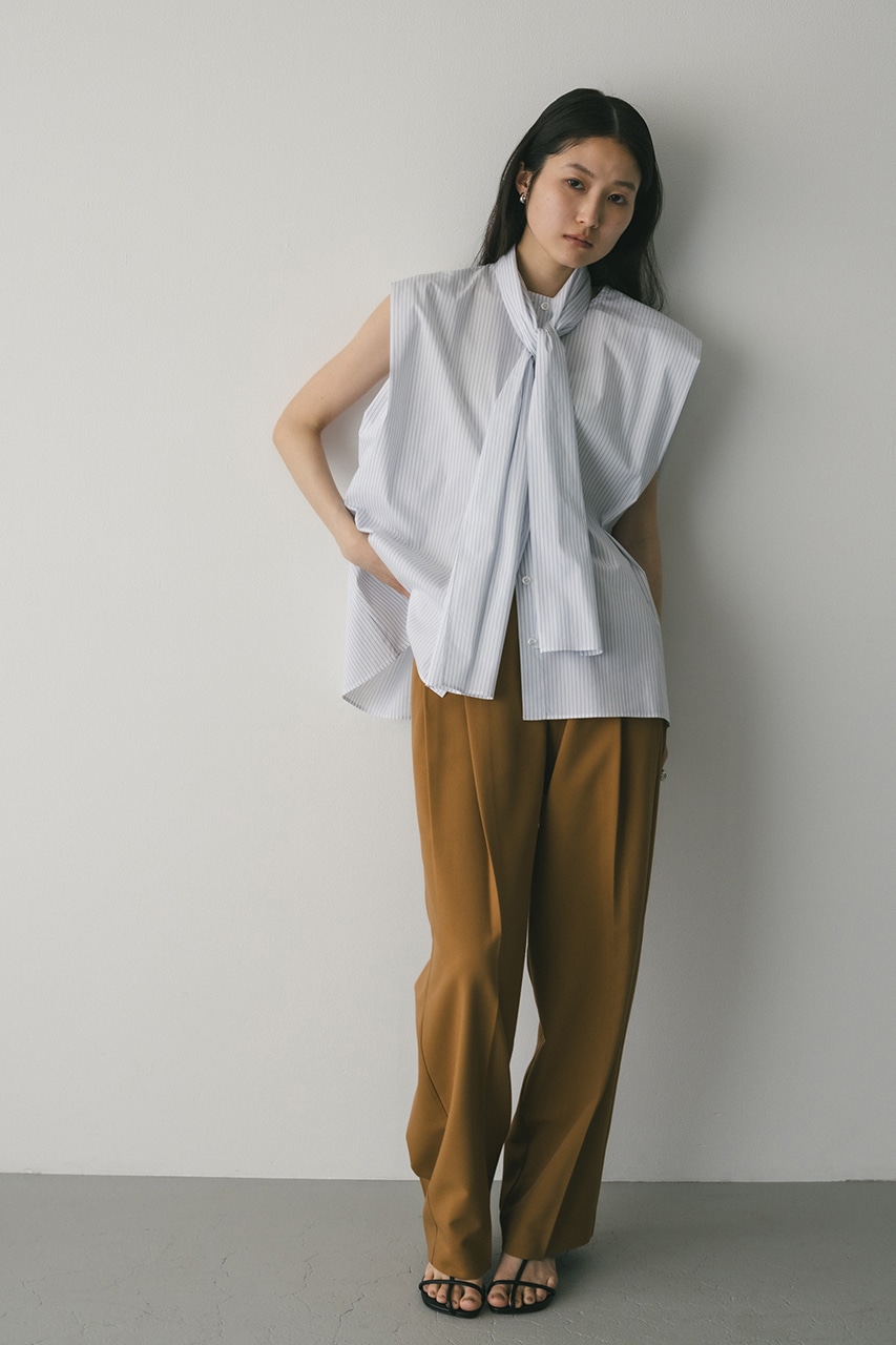 存在感のあるタイデザインがポイントのフレアブラウス。