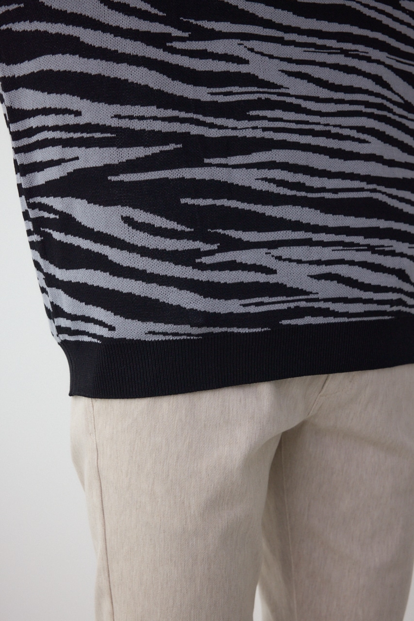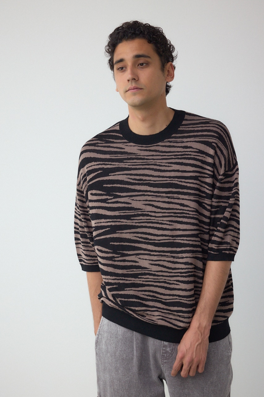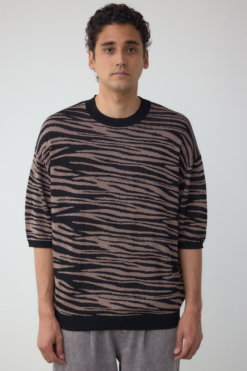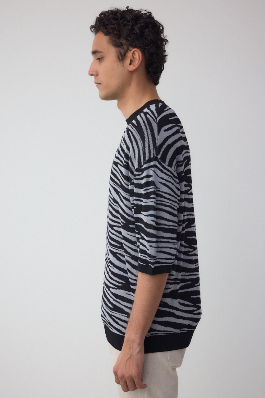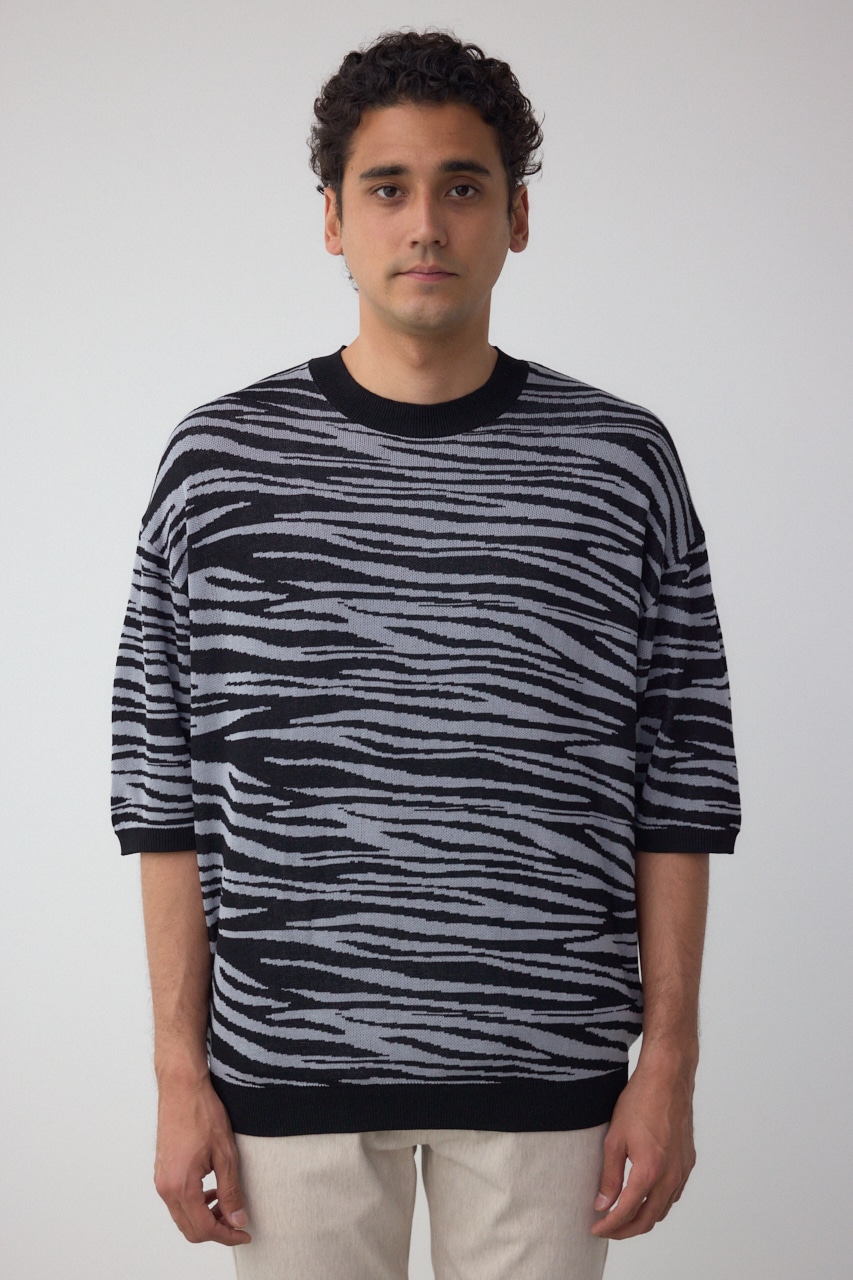 ゼブラの総柄デザインがかっこいい半袖ニットになります。